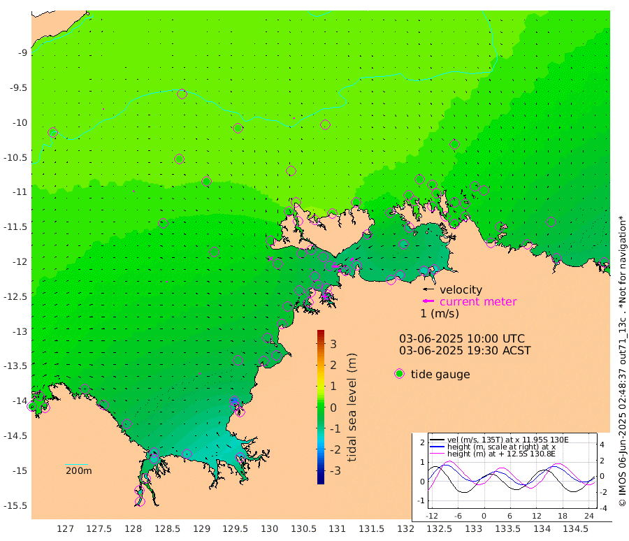 27cm/s -103T +4cm/s rms + 6cm/s 51T. Darwin_C1 52m 10cm/s -81T +4cm/s rms + 7cm/s -161T. Darwin_CW1 22m 23cm/s -107T +4cm/s rms + 8cm/s 61T. Darwin_CW2 34m 32cm/s -140T +3cm/s rms + 9cm/s 98T. Darwin_CW3 22m 42cm/s -90T +5cm/s rms + 7cm/s 88T. Darwin_C3 56m 10cm/s -113T +2cm/s rms + 9cm/s -126T. Darwin_CTbW 22m 9cm/s 145T +9cm/s rms + 2cm/s -110T. NWSLYN 196m 8cm/s 116T +1cm/s rms + 1cm/s -47T. DARBGF 30m 7cm/s 42T +7cm/s rms + 2cm/s -137T. ITFTIS 464m 8cm/s 48T +9cm/s rms + 1cm/s 74T. ITFMHB 146m 9cm/s 97T +4cm/s rms + 1cm/s -134T. ITFJBG 61m 11cm/s 94T +6cm/s rms + 4cm/s 121T. ITFFTB 108m 11cm/s 140T +4cm/s rms + 3cm/s 80T. NRSDAR 19m -12cm Carronade Island -7cm Guy Point -7cm Napier Broome Bay -37cm Lesueur Island -75cm Reveley Island -64cm Rocky Island -119cm Cape Domett -111cm Lacrosse Island -142cm Adolphus Island -128cm Pender Point -140cm Wyndham 12cm The Boxers 23cm Unnamed Shoal 42cm Loxton Shoal -119cm Pelican Island 21cm Calder Shoal 33cm Evans Shoal -167cm Quoin Island -93cm Port Keats -97cm Jones Point -215cm Catfish Island -51cm Cape Scott Offshore -36cm Cape Ford -50cm Anson Bay 34cm Goodrich Bank -51cm Peron Island North -46cm Point Jenny -42cm Native Point -60cm Fish Reef -49cm Tapa Bay -3cm Point Fawcett (Offshore) -66cm Burge Point -40cm Munkunuwa -45cm Beagle A -58cm Parsons Bank -70cm Fenton Patches 34cm Lynedoch Bank -62cm Hancox Shoal Area -67cm Nightcliff -68cm Darwin -50cm Charles Point Patches -76cm Glyde Point -104cm Chambers Bay -109cm Point Stuart -80cm Cape Hotham -91cm Christine Reef -123cm West Alligator Head -135cm East Field Island -81cm Two Hills Bay -22cm Newby Shoal -67cm Camp Point -48cm Medina Inlet South 12cm South Barlow Point 19cm St. Asaph Bay 35cm Cape Van Dieman 37cm Snake Bay 24cm Cache Point 33cm Echo Shoal 12cm Point Jahleel (Off) -18cm Cape Don 13cm Port Essington 10cm Smith Point - West 13cm NW Peacock Island 21cm North Of Jones Shoal 7cm Peacock Island 10cm Point David 11cm D'urville Point 19cm Money Shoal 6cm Copeland Island -2cm Cape Cockburn 7cm One Tree Point 4cm Hogmany Shoal 6cm New Year Island - West 5cm Grant Island -13cm Aurari Bay -27cm Cuthbert Point -10cm North Goulburn Island -20cm Paxie Shoal -49cm Entrance Island -67cm Yabooma Island