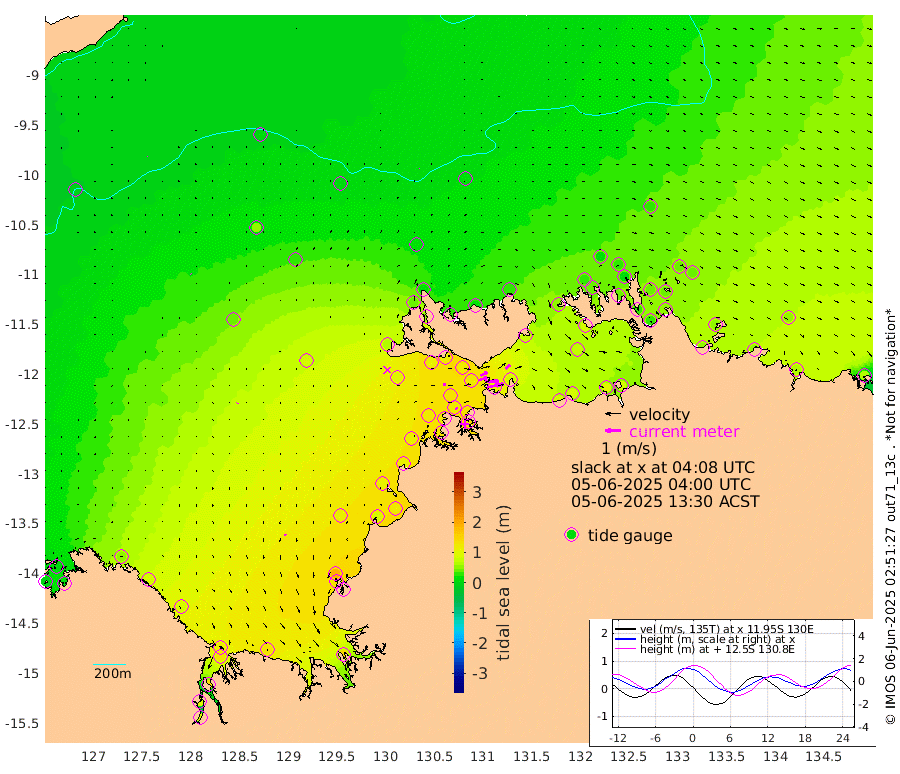 83cm/s 78T +4cm/s rms + 6cm/s 51T. Darwin_C1 52m 56cm/s 90T +4cm/s rms + 7cm/s -161T. Darwin_CW1 22m 57cm/s 73T +4cm/s rms + 8cm/s 61T. Darwin_CW2 34m 41cm/s 50T +3cm/s rms + 9cm/s 98T. Darwin_CW3 22m 87cm/s 89T +5cm/s rms + 7cm/s 88T. Darwin_C3 56m 49cm/s 65T +2cm/s rms + 9cm/s -126T. Darwin_CTbW 22m 2cm/s -12T +9cm/s rms + 2cm/s -110T. NWSLYN 196m 18cm/s 79T +1cm/s rms + 1cm/s -47T. DARBGF 30m 3cm/s -28T +7cm/s rms + 2cm/s -137T. ITFTIS 464m 2cm/s -46T +9cm/s rms + 1cm/s 74T. ITFMHB 146m 8cm/s -175T +4cm/s rms + 1cm/s -134T. ITFJBG 61m 2cm/s -151T +6cm/s rms + 4cm/s 121T. ITFFTB 108m 11cm/s 98T +4cm/s rms + 3cm/s 80T. NRSDAR 19m 2cm Carronade Island -7cm Guy Point 10cm Napier Broome Bay 52cm Lesueur Island 84cm Reveley Island 89cm Rocky Island 127cm Cape Domett 116cm Lacrosse Island 125cm Adolphus Island 93cm Pender Point 88cm Wyndham 44cm The Boxers 54cm Unnamed Shoal 0cm Loxton Shoal 132cm Pelican Island 27cm Calder Shoal 5cm Evans Shoal 145cm Quoin Island 137cm Port Keats 132cm Jones Point 183cm Catfish Island 107cm Cape Scott Offshore 88cm Cape Ford 119cm Anson Bay 15cm Goodrich Bank 108cm Peron Island North 107cm Point Jenny 107cm Native Point 120cm Fish Reef 115cm Tapa Bay 66cm Point Fawcett (Offshore) 125cm Burge Point 105cm Munkunuwa 101cm Beagle A 119cm Parsons Bank 125cm Fenton Patches 12cm Lynedoch Bank 114cm Hancox Shoal Area 124cm Nightcliff 135cm Darwin 124cm Charles Point Patches 105cm Glyde Point 88cm Chambers Bay 85cm Point Stuart 89cm Cape Hotham 77cm Christine Reef 90cm West Alligator Head 84cm East Field Island 80cm Two Hills Bay 84cm Newby Shoal 74cm Camp Point 118cm Medina Inlet South 55cm South Barlow Point 38cm St. Asaph Bay 17cm Cape Van Dieman 23cm Snake Bay 22cm Cache Point -11cm Echo Shoal 29cm Point Jahleel (Off) 56cm Cape Don 34cm Port Essington 34cm Smith Point - West 30cm NW Peacock Island 22cm North Of Jones Shoal 9cm Peacock Island 33cm Point David 34cm D'urville Point 25cm Money Shoal 32cm Copeland Island 48cm Cape Cockburn 36cm One Tree Point 37cm Hogmany Shoal 39cm New Year Island - West 38cm Grant Island 47cm Aurari Bay 55cm Cuthbert Point 47cm North Goulburn Island 50cm Paxie Shoal 59cm Entrance Island 57cm Yabooma Island