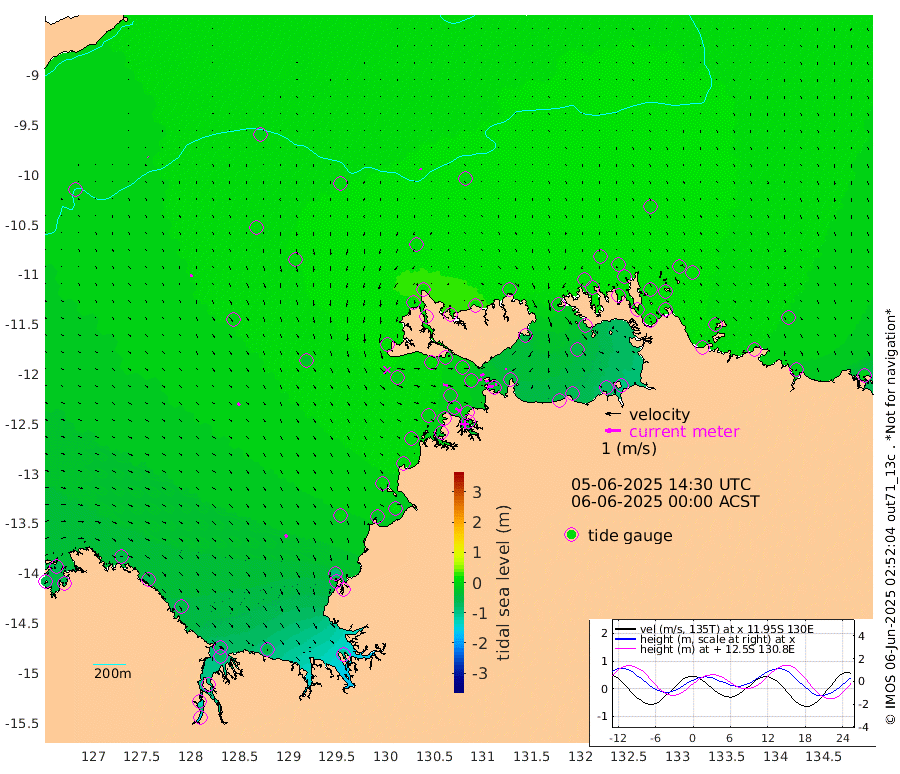 35cm/s 78T +4cm/s rms + 6cm/s 51T. Darwin_C1 52m 9cm/s 93T +4cm/s rms + 7cm/s -161T. Darwin_CW1 22m 20cm/s 74T +4cm/s rms + 8cm/s 61T. Darwin_CW2 34m 6cm/s 81T +3cm/s rms + 9cm/s 98T. Darwin_CW3 22m 20cm/s 84T +5cm/s rms + 7cm/s 88T. Darwin_C3 56m 25cm/s 65T +2cm/s rms + 9cm/s -126T. Darwin_CTbW 22m 7cm/s 155T +9cm/s rms + 2cm/s -110T. NWSLYN 196m 30cm/s 96T +1cm/s rms + 1cm/s -47T. DARBGF 30m 4cm/s 156T +7cm/s rms + 2cm/s -137T. ITFTIS 464m 12cm/s 174T +9cm/s rms + 1cm/s 74T. ITFMHB 146m 20cm/s 150T +4cm/s rms + 1cm/s -134T. ITFJBG 61m 21cm/s 142T +6cm/s rms + 4cm/s 121T. ITFFTB 108m 32cm/s 122T +4cm/s rms + 3cm/s 80T. NRSDAR 19m -61cm Carronade Island -57cm Guy Point -65cm Napier Broome Bay -55cm Lesueur Island -50cm Reveley Island -60cm Rocky Island -76cm Cape Domett -68cm Lacrosse Island -101cm Adolphus Island -132cm Pender Point -150cm Wyndham -8cm The Boxers 7cm Unnamed Shoal -5cm Loxton Shoal -50cm Pelican Island 1cm Calder Shoal 7cm Evans Shoal -112cm Quoin Island -38cm Port Keats -35cm Jones Point -84cm Catfish Island 7cm Cape Scott Offshore -33cm Cape Ford 16cm Anson Bay 11cm Goodrich Bank 8cm Peron Island North 7cm Point Jenny 6cm Native Point 0cm Fish Reef 9cm Tapa Bay 22cm Point Fawcett (Offshore) -17cm Burge Point 14cm Munkunuwa -5cm Beagle A 2cm Parsons Bank -17cm Fenton Patches 5cm Lynedoch Bank 1cm Hancox Shoal Area 2cm Nightcliff -10cm Darwin -2cm Charles Point Patches -31cm Glyde Point -48cm Chambers Bay -64cm Point Stuart -35cm Cape Hotham -54cm Christine Reef -73cm West Alligator Head -95cm East Field Island -39cm Two Hills Bay -24cm Newby Shoal -46cm Camp Point 4cm Medina Inlet South 19cm South Barlow Point 19cm St. Asaph Bay 15cm Cape Van Dieman 17cm Snake Bay 11cm Cache Point -10cm Echo Shoal 8cm Point Jahleel (Off) -2cm Cape Don 12cm Port Essington 16cm Smith Point - West 15cm NW Peacock Island 18cm North Of Jones Shoal 7cm Peacock Island 19cm Point David 18cm D'urville Point 11cm Money Shoal 19cm Copeland Island 16cm Cape Cockburn 16cm One Tree Point 16cm Hogmany Shoal 11cm New Year Island - West 13cm Grant Island 14cm Aurari Bay 4cm Cuthbert Point 15cm North Goulburn Island 4cm Paxie Shoal -3cm Entrance Island -7cm Yabooma Island
