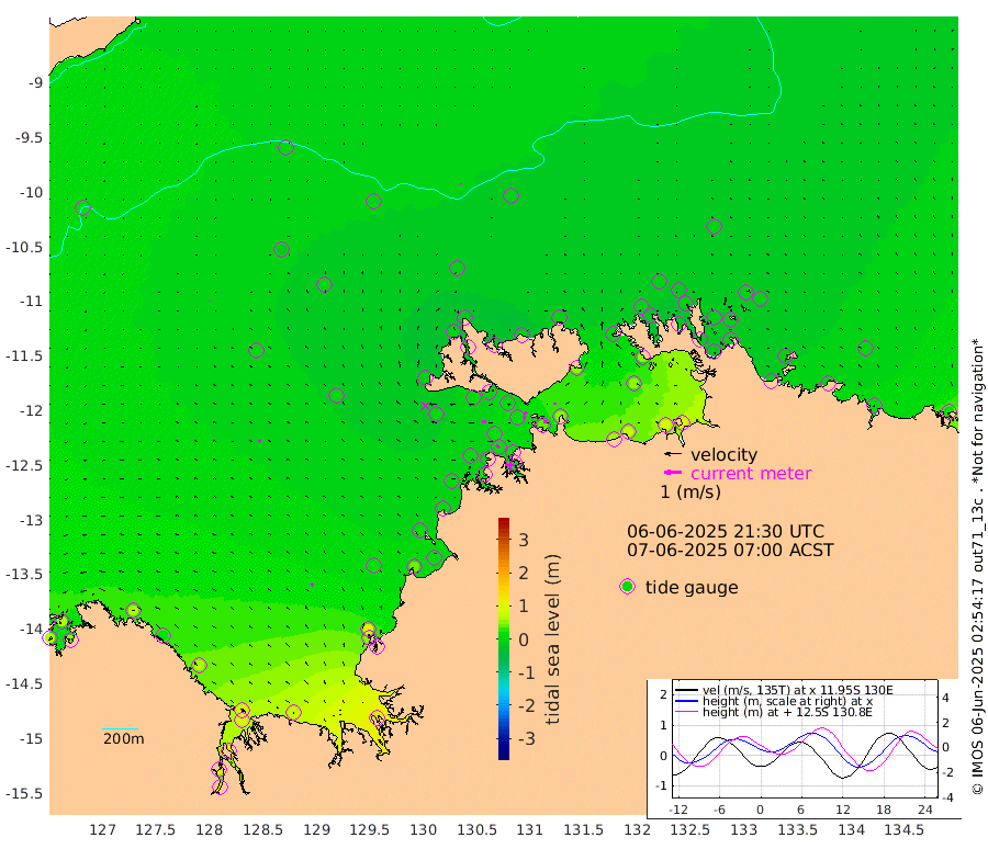 10cm/s -109T +4cm/s rms + 6cm/s 51T. Darwin_C1 52m 16cm/s 88T +4cm/s rms + 7cm/s -161T. Darwin_CW1 22m 13cm/s -109T +4cm/s rms + 8cm/s 61T. Darwin_CW2 34m 9cm/s 14T +3cm/s rms + 9cm/s 98T. Darwin_CW3 22m 3cm/s -143T +5cm/s rms + 7cm/s 88T. Darwin_C3 56m 16cm/s -117T +2cm/s rms + 9cm/s -126T. Darwin_CTbW 22m 5cm/s -13T +9cm/s rms + 2cm/s -110T. NWSLYN 196m 23cm/s -83T +1cm/s rms + 1cm/s -47T. DARBGF 30m 2cm/s -105T +7cm/s rms + 2cm/s -137T. ITFTIS 464m 3cm/s -41T +9cm/s rms + 1cm/s 74T. ITFMHB 146m 17cm/s -33T +4cm/s rms + 1cm/s -134T. ITFJBG 61m 16cm/s -47T +6cm/s rms + 4cm/s 121T. ITFFTB 108m 26cm/s -57T +4cm/s rms + 3cm/s 80T. NRSDAR 19m 56cm Carronade Island 60cm Guy Point 51cm Napier Broome Bay 58cm Lesueur Island 65cm Reveley Island 19cm Rocky Island 84cm Cape Domett 84cm Lacrosse Island 104cm Adolphus Island 126cm Pender Point 141cm Wyndham 1cm The Boxers -16cm Unnamed Shoal 4cm Loxton Shoal 69cm Pelican Island 3cm Calder Shoal -1cm Evans Shoal 128cm Quoin Island 45cm Port Keats 46cm Jones Point 110cm Catfish Island 15cm Cape Scott Offshore 43cm Cape Ford 5cm Anson Bay -11cm Goodrich Bank 14cm Peron Island North 3cm Point Jenny 1cm Native Point 11cm Fish Reef 5cm Tapa Bay -5cm Point Fawcett (Offshore) 21cm Burge Point 1cm Munkunuwa 7cm Beagle A 9cm Parsons Bank 18cm Fenton Patches -8cm Lynedoch Bank 15cm Hancox Shoal Area 14cm Nightcliff 19cm Darwin 12cm Charles Point Patches 35cm Glyde Point 57cm Chambers Bay 71cm Point Stuart 46cm Cape Hotham 56cm Christine Reef 81cm West Alligator Head 98cm East Field Island 48cm Two Hills Bay 11cm Newby Shoal 46cm Camp Point 7cm Medina Inlet South -15cm South Barlow Point -11cm St. Asaph Bay -14cm Cape Van Dieman -16cm Snake Bay -7cm Cache Point 14cm Echo Shoal -3cm Point Jahleel (Off) 5cm Cape Don -10cm Port Essington -12cm Smith Point - West -12cm NW Peacock Island -9cm North Of Jones Shoal -4cm Peacock Island -13cm Point David -15cm D'urville Point -11cm Money Shoal -12cm Copeland Island -8cm Cape Cockburn -10cm One Tree Point -5cm Hogmany Shoal -10cm New Year Island - West -10cm Grant Island -9cm Aurari Bay -4cm Cuthbert Point -8cm North Goulburn Island 3cm Paxie Shoal 7cm Entrance Island 19cm Yabooma Island