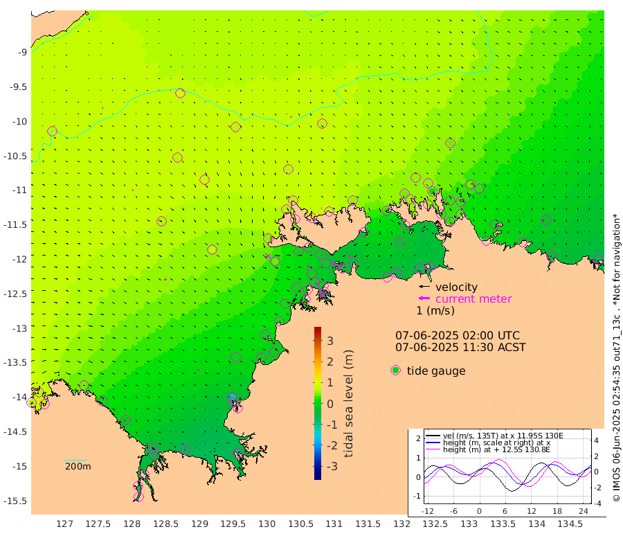 11cm/s -96T +4cm/s rms + 6cm/s 51T. Darwin_C1 52m 32cm/s -91T +4cm/s rms + 7cm/s -161T. Darwin_CW1 22m 5cm/s -102T +4cm/s rms + 8cm/s 61T. Darwin_CW2 34m 16cm/s -140T +3cm/s rms + 9cm/s 98T. Darwin_CW3 22m 24cm/s -91T +5cm/s rms + 7cm/s 88T. Darwin_C3 56m 6cm/s 62T +2cm/s rms + 9cm/s -126T. Darwin_CTbW 22m 4cm/s 139T +9cm/s rms + 2cm/s -110T. NWSLYN 196m 20cm/s 97T +1cm/s rms + 1cm/s -47T. DARBGF 30m 6cm/s 53T +7cm/s rms + 2cm/s -137T. ITFTIS 464m 7cm/s 107T +9cm/s rms + 1cm/s 74T. ITFMHB 146m 11cm/s 124T +4cm/s rms + 1cm/s -134T. ITFJBG 61m 17cm/s 112T +6cm/s rms + 4cm/s 121T. ITFFTB 108m 21cm/s 128T +4cm/s rms + 3cm/s 80T. NRSDAR 19m 59cm Carronade Island 57cm Guy Point 62cm Napier Broome Bay 35cm Lesueur Island -15cm Reveley Island 15cm Rocky Island -48cm Cape Domett -38cm Lacrosse Island -57cm Adolphus Island -74cm Pender Point -73cm Wyndham 65cm The Boxers 60cm Unnamed Shoal 79cm Loxton Shoal -63cm Pelican Island 73cm Calder Shoal 67cm Evans Shoal -103cm Quoin Island -23cm Port Keats -47cm Jones Point -116cm Catfish Island 2cm Cape Scott Offshore 9cm Cape Ford -1cm Anson Bay 66cm Goodrich Bank 9cm Peron Island North 16cm Point Jenny 19cm Native Point 7cm Fish Reef 5cm Tapa Bay 46cm Point Fawcett (Offshore) 4cm Burge Point 5cm Munkunuwa 34cm Beagle A -3cm Parsons Bank 9cm Fenton Patches 64cm Lynedoch Bank -9cm Hancox Shoal Area 2cm Nightcliff -11cm Darwin 2cm Charles Point Patches -22cm Glyde Point -44cm Chambers Bay -57cm Point Stuart -28cm Cape Hotham -29cm Christine Reef -67cm West Alligator Head -75cm East Field Island -28cm Two Hills Bay 71cm Newby Shoal -24cm Camp Point 8cm Medina Inlet South 58cm South Barlow Point 60cm St. Asaph Bay 66cm Cape Van Dieman 69cm Snake Bay 63cm Cache Point 76cm Echo Shoal 51cm Point Jahleel (Off) 25cm Cape Don 44cm Port Essington 48cm Smith Point - West 48cm NW Peacock Island 55cm North Of Jones Shoal 18cm Peacock Island 27cm Point David 47cm D'urville Point 45cm Money Shoal 23cm Copeland Island 36cm Cape Cockburn 32cm One Tree Point 23cm Hogmany Shoal 34cm New Year Island - West 30cm Grant Island 11cm Aurari Bay -1cm Cuthbert Point 17cm North Goulburn Island -16cm Paxie Shoal -23cm Entrance Island -51cm Yabooma Island
