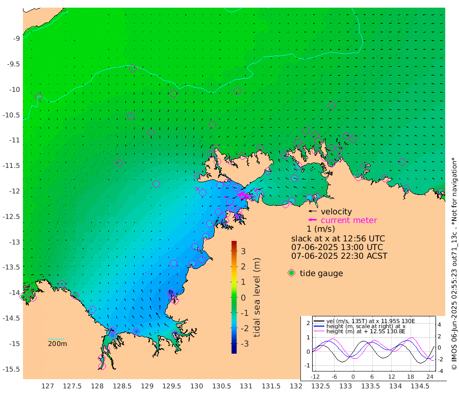 106cm/s -101T +4cm/s rms + 6cm/s 51T. Darwin_C1 52m 104cm/s -90T +4cm/s rms + 7cm/s -161T. Darwin_CW1 22m 69cm/s -106T +4cm/s rms + 8cm/s 61T. Darwin_CW2 34m 54cm/s -137T +3cm/s rms + 9cm/s 98T. Darwin_CW3 22m 120cm/s -90T +5cm/s rms + 7cm/s 88T. Darwin_C3 56m 59cm/s -115T +2cm/s rms + 9cm/s -126T. Darwin_CTbW 22m 6cm/s -172T +9cm/s rms + 2cm/s -110T. NWSLYN 196m 22cm/s -104T +1cm/s rms + 1cm/s -47T. DARBGF 30m 5cm/s 149T +7cm/s rms + 2cm/s -137T. ITFTIS 464m 4cm/s 154T +9cm/s rms + 1cm/s 74T. ITFMHB 146m 7cm/s 32T +4cm/s rms + 1cm/s -134T. ITFJBG 61m 5cm/s 122T +6cm/s rms + 4cm/s 121T. ITFFTB 108m 12cm/s -80T +4cm/s rms + 3cm/s 80T. NRSDAR 19m -20cm Carronade Island -14cm Guy Point -22cm Napier Broome Bay -100cm Lesueur Island -148cm Reveley Island -77cm Rocky Island -207cm Cape Domett -202cm Lacrosse Island -208cm Adolphus Island -163cm Pender Point -163cm Wyndham -57cm The Boxers -67cm Unnamed Shoal -2cm Loxton Shoal -212cm Pelican Island -44cm Calder Shoal -10cm Evans Shoal -254cm Quoin Island -210cm Port Keats -204cm Jones Point -266cm Catfish Island -167cm Cape Scott Offshore -160cm Cape Ford -182cm Anson Bay -20cm Goodrich Bank -168cm Peron Island North -157cm Point Jenny -154cm Native Point -177cm Fish Reef -172cm Tapa Bay -99cm Point Fawcett (Offshore) -192cm Burge Point -155cm Munkunuwa -148cm Beagle A -177cm Parsons Bank -187cm Fenton Patches -14cm Lynedoch Bank -176cm Hancox Shoal Area -194cm Nightcliff -205cm Darwin -188cm Charles Point Patches -162cm Glyde Point -139cm Chambers Bay -141cm Point Stuart -147cm Cape Hotham -126cm Christine Reef -150cm West Alligator Head -147cm East Field Island -128cm Two Hills Bay -120cm Newby Shoal -123cm Camp Point -176cm Medina Inlet South -77cm South Barlow Point -57cm St. Asaph Bay -22cm Cape Van Dieman -30cm Snake Bay -32cm Cache Point 4cm Echo Shoal -43cm Point Jahleel (Off) -80cm Cape Don -45cm Port Essington -44cm Smith Point - West -40cm NW Peacock Island -37cm North Of Jones Shoal -14cm Peacock Island -48cm Point David -43cm D'urville Point -37cm Money Shoal -49cm Copeland Island -75cm Cape Cockburn -54cm One Tree Point -59cm Hogmany Shoal -56cm New Year Island - West -54cm Grant Island -69cm Aurari Bay -74cm Cuthbert Point -66cm North Goulburn Island -81cm Paxie Shoal -87cm Entrance Island -100cm Yabooma Island