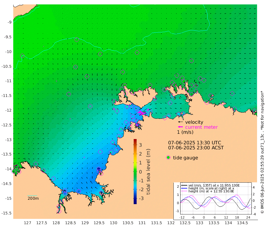 96cm/s -101T +4cm/s rms + 6cm/s 51T. Darwin_C1 52m 101cm/s -91T +4cm/s rms + 7cm/s -161T. Darwin_CW1 22m 57cm/s -105T +4cm/s rms + 8cm/s 61T. Darwin_CW2 34m 54cm/s -138T +3cm/s rms + 9cm/s 98T. Darwin_CW3 22m 108cm/s -90T +5cm/s rms + 7cm/s 88T. Darwin_C3 56m 49cm/s -115T +2cm/s rms + 9cm/s -126T. Darwin_CTbW 22m 7cm/s -178T +9cm/s rms + 2cm/s -110T. NWSLYN 196m 10cm/s -127T +1cm/s rms + 1cm/s -47T. DARBGF 30m 6cm/s 143T +7cm/s rms + 2cm/s -137T. ITFTIS 464m 8cm/s 159T +9cm/s rms + 1cm/s 74T. ITFMHB 146m 7cm/s 94T +4cm/s rms + 1cm/s -134T. ITFJBG 61m 13cm/s 130T +6cm/s rms + 4cm/s 121T. ITFFTB 108m 5cm/s -162T +4cm/s rms + 3cm/s 80T. NRSDAR 19m -24cm Carronade Island -19cm Guy Point -28cm Napier Broome Bay -100cm Lesueur Island -149cm Reveley Island -80cm Rocky Island -214cm Cape Domett -206cm Lacrosse Island -223cm Adolphus Island -191cm Pender Point -196cm Wyndham -46cm The Boxers -54cm Unnamed Shoal 6cm Loxton Shoal -214cm Pelican Island -31cm Calder Shoal 0cm Evans Shoal -275cm Quoin Island -205cm Port Keats -201cm Jones Point -283cm Catfish Island -151cm Cape Scott Offshore -146cm Cape Ford -163cm Anson Bay -8cm Goodrich Bank -151cm Peron Island North -138cm Point Jenny -135cm Native Point -160cm Fish Reef -153cm Tapa Bay -80cm Point Fawcett (Offshore) -178cm Burge Point -136cm Munkunuwa -130cm Beagle A -162cm Parsons Bank -171cm Fenton Patches -6cm Lynedoch Bank -162cm Hancox Shoal Area -176cm Nightcliff -192cm Darwin -172cm Charles Point Patches -159cm Glyde Point -146cm Chambers Bay -153cm Point Stuart -148cm Cape Hotham -132cm Christine Reef -165cm West Alligator Head -168cm East Field Island -132cm Two Hills Bay -106cm Newby Shoal -128cm Camp Point -158cm Medina Inlet South -59cm South Barlow Point -40cm St. Asaph Bay -9cm Cape Van Dieman -17cm Snake Bay -19cm Cache Point 11cm Echo Shoal -33cm Point Jahleel (Off) -73cm Cape Don -36cm Port Essington -33cm Smith Point - West -30cm NW Peacock Island -26cm North Of Jones Shoal -10cm Peacock Island -41cm Point David -33cm D'urville Point -30cm Money Shoal -42cm Copeland Island -67cm Cape Cockburn -47cm One Tree Point -53cm Hogmany Shoal -49cm New Year Island - West -47cm Grant Island -64cm Aurari Bay -73cm Cuthbert Point -61cm North Goulburn Island -82cm Paxie Shoal -89cm Entrance Island -106cm Yabooma Island