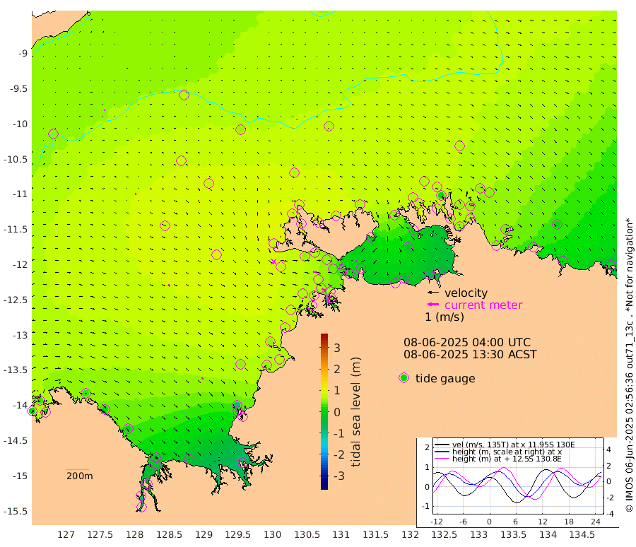 17cm/s 76T +4cm/s rms + 6cm/s 51T. Darwin_C1 52m 13cm/s -81T +4cm/s rms + 7cm/s -161T. Darwin_CW1 22m 18cm/s 74T +4cm/s rms + 8cm/s 61T. Darwin_CW2 34m 14cm/s -149T +3cm/s rms + 9cm/s 98T. Darwin_CW3 22m 6cm/s 81T +5cm/s rms + 7cm/s 88T. Darwin_C3 56m 30cm/s 62T +2cm/s rms + 9cm/s -126T. Darwin_CTbW 22m 5cm/s 130T +9cm/s rms + 2cm/s -110T. NWSLYN 196m 34cm/s 93T +1cm/s rms + 1cm/s -47T. DARBGF 30m 8cm/s 36T +7cm/s rms + 2cm/s -137T. ITFTIS 464m 7cm/s 86T +9cm/s rms + 1cm/s 74T. ITFMHB 146m 20cm/s 138T +4cm/s rms + 1cm/s -134T. ITFJBG 61m 21cm/s 116T +6cm/s rms + 4cm/s 121T. ITFFTB 108m 34cm/s 125T +4cm/s rms + 3cm/s 80T. NRSDAR 19m 26cm Carronade Island 20cm Guy Point 33cm Napier Broome Bay 32cm Lesueur Island 1cm Reveley Island 14cm Rocky Island -19cm Cape Domett -11cm Lacrosse Island -43cm Adolphus Island -80cm Pender Point -86cm Wyndham 71cm The Boxers 85cm Unnamed Shoal 61cm Loxton Shoal -23cm Pelican Island 73cm Calder Shoal 56cm Evans Shoal -79cm Quoin Island 23cm Port Keats 5cm Jones Point -81cm Catfish Island 48cm Cape Scott Offshore 48cm Cape Ford 57cm Anson Bay 66cm Goodrich Bank 56cm Peron Island North 65cm Point Jenny 68cm Native Point 60cm Fish Reef 60cm Tapa Bay 74cm Point Fawcett (Offshore) 59cm Burge Point 56cm Munkunuwa 75cm Beagle A 53cm Parsons Bank 62cm Fenton Patches 61cm Lynedoch Bank 44cm Hancox Shoal Area 60cm Nightcliff 50cm Darwin 58cm Charles Point Patches 18cm Glyde Point -20cm Chambers Bay -35cm Point Stuart 4cm Cape Hotham -12cm Christine Reef -47cm West Alligator Head -63cm East Field Island -5cm Two Hills Bay 93cm Newby Shoal 0cm Camp Point 62cm Medina Inlet South 80cm South Barlow Point 74cm St. Asaph Bay 69cm Cape Van Dieman 75cm Snake Bay 66cm Cache Point 51cm Echo Shoal 58cm Point Jahleel (Off) 45cm Cape Don 57cm Port Essington 60cm Smith Point - West 59cm NW Peacock Island 62cm North Of Jones Shoal 22cm Peacock Island 49cm Point David 61cm D'urville Point 57cm Money Shoal 45cm Copeland Island 63cm Cape Cockburn 52cm One Tree Point 46cm Hogmany Shoal 55cm New Year Island - West 52cm Grant Island 41cm Aurari Bay 30cm Cuthbert Point 44cm North Goulburn Island 20cm Paxie Shoal 15cm Entrance Island -7cm Yabooma Island