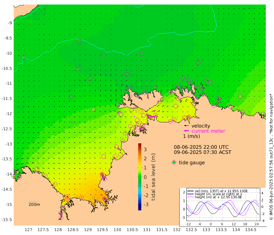 66cm/s 80T +4cm/s rms + 6cm/s 51T. Darwin_C1 52m 89cm/s 90T +4cm/s rms + 7cm/s -161T. Darwin_CW1 22m 34cm/s 72T +4cm/s rms + 8cm/s 61T. Darwin_CW2 34m 47cm/s 43T +3cm/s rms + 9cm/s 98T. Darwin_CW3 22m 75cm/s 91T +5cm/s rms + 7cm/s 88T. Darwin_C3 56m 25cm/s 67T +2cm/s rms + 9cm/s -126T. Darwin_CTbW 22m 6cm/s -4T +9cm/s rms + 2cm/s -110T. NWSLYN 196m 18cm/s -69T +1cm/s rms + 1cm/s -47T. DARBGF 30m 4cm/s -90T +7cm/s rms + 2cm/s -137T. ITFTIS 464m 6cm/s -65T +9cm/s rms + 1cm/s 74T. ITFMHB 146m 18cm/s -46T +4cm/s rms + 1cm/s -134T. ITFJBG 61m 21cm/s -56T +6cm/s rms + 4cm/s 121T. ITFFTB 108m 30cm/s -51T +4cm/s rms + 3cm/s 80T. NRSDAR 19m 51cm Carronade Island 55cm Guy Point 48cm Napier Broome Bay 95cm Lesueur Island 134cm Reveley Island 61cm Rocky Island 187cm Cape Domett 179cm Lacrosse Island 210cm Adolphus Island 219cm Pender Point 230cm Wyndham 18cm The Boxers 6cm Unnamed Shoal -3cm Loxton Shoal 182cm Pelican Island 10cm Calder Shoal -4cm Evans Shoal 268cm Quoin Island 144cm Port Keats 144cm Jones Point 269cm Catfish Island 92cm Cape Scott Offshore 91cm Cape Ford 89cm Anson Bay -10cm Goodrich Bank 84cm Peron Island North 66cm Point Jenny 63cm Native Point 81cm Fish Reef 81cm Tapa Bay 30cm Point Fawcett (Offshore) 93cm Burge Point 67cm Munkunuwa 57cm Beagle A 83cm Parsons Bank 88cm Fenton Patches -10cm Lynedoch Bank 93cm Hancox Shoal Area 94cm Nightcliff 108cm Darwin 94cm Charles Point Patches 106cm Glyde Point 124cm Chambers Bay 136cm Point Stuart 109cm Cape Hotham 111cm Christine Reef 153cm West Alligator Head 166cm East Field Island 105cm Two Hills Bay 41cm Newby Shoal 99cm Camp Point 81cm Medina Inlet South 9cm South Barlow Point 6cm St. Asaph Bay -13cm Cape Van Dieman -12cm Snake Bay -3cm Cache Point 3cm Echo Shoal 8cm Point Jahleel (Off) 34cm Cape Don 3cm Port Essington 0cm Smith Point - West -2cm NW Peacock Island -2cm North Of Jones Shoal -1cm Peacock Island 3cm Point David -3cm D'urville Point -4cm Money Shoal 5cm Copeland Island 13cm Cape Cockburn 7cm One Tree Point 19cm Hogmany Shoal 8cm New Year Island - West 8cm Grant Island 17cm Aurari Bay 26cm Cuthbert Point 16cm North Goulburn Island 39cm Paxie Shoal 41cm Entrance Island 58cm Yabooma Island