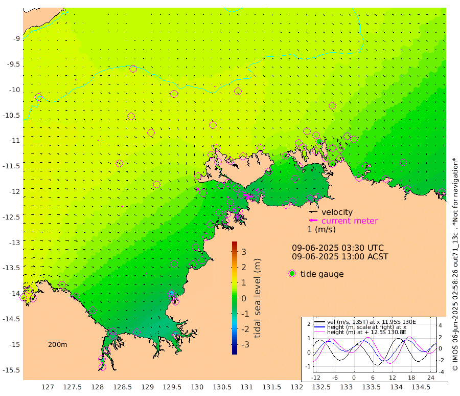47cm/s -100T +4cm/s rms + 6cm/s 51T. Darwin_C1 52m 69cm/s -92T +4cm/s rms + 7cm/s -161T. Darwin_CW1 22m 16cm/s -105T +4cm/s rms + 8cm/s 61T. Darwin_CW2 34m 39cm/s -136T +3cm/s rms + 9cm/s 98T. Darwin_CW3 22m 46cm/s -91T +5cm/s rms + 7cm/s 88T. Darwin_C3 56m 11cm/s -114T +2cm/s rms + 9cm/s -126T. Darwin_CTbW 22m 7cm/s 137T +9cm/s rms + 2cm/s -110T. NWSLYN 196m 21cm/s 100T +1cm/s rms + 1cm/s -47T. DARBGF 30m 9cm/s 43T +7cm/s rms + 2cm/s -137T. ITFTIS 464m 9cm/s 78T +9cm/s rms + 1cm/s 74T. ITFMHB 146m 13cm/s 111T +4cm/s rms + 1cm/s -134T. ITFJBG 61m 20cm/s 105T +6cm/s rms + 4cm/s 121T. ITFFTB 108m 24cm/s 133T +4cm/s rms + 3cm/s 80T. NRSDAR 19m 72cm Carronade Island 69cm Guy Point 77cm Napier Broome Bay 41cm Lesueur Island -26cm Reveley Island -7cm Rocky Island -70cm Cape Domett -55cm Lacrosse Island -94cm Adolphus Island -96cm Pender Point -94cm Wyndham 74cm The Boxers 80cm Unnamed Shoal 87cm Loxton Shoal -88cm Pelican Island 82cm Calder Shoal 73cm Evans Shoal -146cm Quoin Island -45cm Port Keats -60cm Jones Point -152cm Catfish Island -7cm Cape Scott Offshore 20cm Cape Ford -10cm Anson Bay 75cm Goodrich Bank 2cm Peron Island North 12cm Point Jenny 15cm Native Point 0cm Fish Reef -1cm Tapa Bay 50cm Point Fawcett (Offshore) -4cm Burge Point -3cm Munkunuwa 31cm Beagle A -13cm Parsons Bank -1cm Fenton Patches 72cm Lynedoch Bank -20cm Hancox Shoal Area -11cm Nightcliff -23cm Darwin -7cm Charles Point Patches -30cm Glyde Point -53cm Chambers Bay -63cm Point Stuart -33cm Cape Hotham -40cm Christine Reef -76cm West Alligator Head -85cm East Field Island -33cm Two Hills Bay 72cm Newby Shoal -27cm Camp Point -1cm Medina Inlet South 60cm South Barlow Point 65cm St. Asaph Bay 76cm Cape Van Dieman 79cm Snake Bay 72cm Cache Point 84cm Echo Shoal 57cm Point Jahleel (Off) 27cm Cape Don 51cm Port Essington 53cm Smith Point - West 55cm NW Peacock Island 62cm North Of Jones Shoal 21cm Peacock Island 39cm Point David 53cm D'urville Point 54cm Money Shoal 34cm Copeland Island 47cm Cape Cockburn 41cm One Tree Point 39cm Hogmany Shoal 45cm New Year Island - West 41cm Grant Island 19cm Aurari Bay 6cm Cuthbert Point 27cm North Goulburn Island -4cm Paxie Shoal -13cm Entrance Island -41cm Yabooma Island