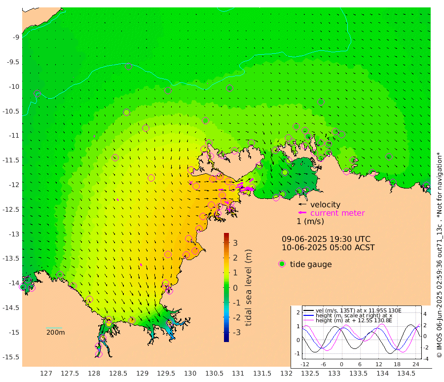 155cm/s 77T +4cm/s rms + 6cm/s 51T. Darwin_C1 52m 122cm/s 90T +4cm/s rms + 7cm/s -161T. Darwin_CW1 22m 95cm/s 74T +4cm/s rms + 8cm/s 61T. Darwin_CW2 34m 68cm/s 48T +3cm/s rms + 9cm/s 98T. Darwin_CW3 22m 135cm/s 89T +5cm/s rms + 7cm/s 88T. Darwin_C3 56m 88cm/s 65T +2cm/s rms + 9cm/s -126T. Darwin_CTbW 22m 1cm/s 73T +9cm/s rms + 2cm/s -110T. NWSLYN 196m 59cm/s 87T +1cm/s rms + 1cm/s -47T. DARBGF 30m 2cm/s 163T +7cm/s rms + 2cm/s -137T. ITFTIS 464m 19cm/s 179T +9cm/s rms + 1cm/s 74T. ITFMHB 146m 30cm/s 167T +4cm/s rms + 1cm/s -134T. ITFJBG 61m 26cm/s 147T +6cm/s rms + 4cm/s 121T. ITFFTB 108m 58cm/s 115T +4cm/s rms + 3cm/s 80T. NRSDAR 19m -49cm Carronade Island -46cm Guy Point -55cm Napier Broome Bay 32cm Lesueur Island 101cm Reveley Island 44cm Rocky Island 125cm Cape Domett 125cm Lacrosse Island 101cm Adolphus Island 13cm Pender Point -16cm Wyndham 48cm The Boxers 52cm Unnamed Shoal 1cm Loxton Shoal 159cm Pelican Island 48cm Calder Shoal 17cm Evans Shoal 110cm Quoin Island 174cm Port Keats 167cm Jones Point 82cm Catfish Island 171cm Cape Scott Offshore 183cm Cape Ford 193cm Anson Bay 31cm Goodrich Bank 167cm Peron Island North 177cm Point Jenny 176cm Native Point 179cm Fish Reef 193cm Tapa Bay 119cm Point Fawcett (Offshore) 185cm Burge Point 184cm Munkunuwa 159cm Beagle A 178cm Parsons Bank 187cm Fenton Patches 13cm Lynedoch Bank 178cm Hancox Shoal Area 200cm Nightcliff 192cm Darwin 188cm Charles Point Patches 115cm Glyde Point 59cm Chambers Bay 34cm Point Stuart 83cm Cape Hotham 55cm Christine Reef 33cm West Alligator Head 5cm East Field Island 51cm Two Hills Bay 101cm Newby Shoal 53cm Camp Point 183cm Medina Inlet South 98cm South Barlow Point 82cm St. Asaph Bay 36cm Cape Van Dieman 37cm Snake Bay 36cm Cache Point -11cm Echo Shoal 42cm Point Jahleel (Off) 55cm Cape Don 36cm Port Essington 43cm Smith Point - West 32cm NW Peacock Island 30cm North Of Jones Shoal 10cm Peacock Island 25cm Point David 38cm D'urville Point 18cm Money Shoal 25cm Copeland Island 31cm Cape Cockburn 26cm One Tree Point 26cm Hogmany Shoal 24cm New Year Island - West 24cm Grant Island 29cm Aurari Bay 22cm Cuthbert Point 24cm North Goulburn Island 20cm Paxie Shoal 19cm Entrance Island 11cm Yabooma Island