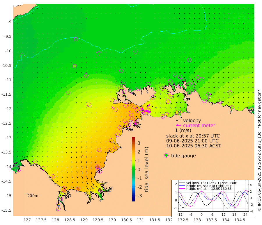 161cm/s 79T +4cm/s rms + 6cm/s 51T. Darwin_C1 52m 147cm/s 92T +4cm/s rms + 7cm/s -161T. Darwin_CW1 22m 95cm/s 72T +4cm/s rms + 8cm/s 61T. Darwin_CW2 34m 87cm/s 45T +3cm/s rms + 9cm/s 98T. Darwin_CW3 22m 155cm/s 89T +5cm/s rms + 7cm/s 88T. Darwin_C3 56m 82cm/s 66T +2cm/s rms + 9cm/s -126T. Darwin_CTbW 22m 5cm/s 3T +9cm/s rms + 2cm/s -110T. NWSLYN 196m 24cm/s 73T +1cm/s rms + 1cm/s -47T. DARBGF 30m 4cm/s -107T +7cm/s rms + 2cm/s -137T. ITFTIS 464m 9cm/s -148T +9cm/s rms + 1cm/s 74T. ITFMHB 146m 12cm/s -146T +4cm/s rms + 1cm/s -134T. ITFJBG 61m 7cm/s -115T +6cm/s rms + 4cm/s 121T. ITFFTB 108m 13cm/s 94T +4cm/s rms + 3cm/s 80T. NRSDAR 19m -8cm Carronade Island -3cm Guy Point -11cm Napier Broome Bay 82cm Lesueur Island 162cm Reveley Island 77cm Rocky Island 224cm Cape Domett 214cm Lacrosse Island 229cm Adolphus Island 178cm Pender Point 167cm Wyndham 38cm The Boxers 35cm Unnamed Shoal -12cm Loxton Shoal 245cm Pelican Island 28cm Calder Shoal -1cm Evans Shoal 284cm Quoin Island 225cm Port Keats 220cm Jones Point 268cm Catfish Island 179cm Cape Scott Offshore 170cm Cape Ford 193cm Anson Bay 5cm Goodrich Bank 169cm Peron Island North 162cm Point Jenny 159cm Native Point 175cm Fish Reef 185cm Tapa Bay 93cm Point Fawcett (Offshore) 189cm Burge Point 168cm Munkunuwa 141cm Beagle A 180cm Parsons Bank 186cm Fenton Patches -4cm Lynedoch Bank 188cm Hancox Shoal Area 202cm Nightcliff 210cm Darwin 194cm Charles Point Patches 158cm Glyde Point 135cm Chambers Bay 129cm Point Stuart 137cm Cape Hotham 121cm Christine Reef 140cm West Alligator Head 132cm East Field Island 114cm Two Hills Bay 90cm Newby Shoal 112cm Camp Point 179cm Medina Inlet South 66cm South Barlow Point 49cm St. Asaph Bay 7cm Cape Van Dieman 10cm Snake Bay 14cm Cache Point -18cm Echo Shoal 28cm Point Jahleel (Off) 61cm Cape Don 24cm Port Essington 26cm Smith Point - West 18cm NW Peacock Island 15cm North Of Jones Shoal 5cm Peacock Island 22cm Point David 21cm D'urville Point 9cm Money Shoal 23cm Copeland Island 33cm Cape Cockburn 25cm One Tree Point 33cm Hogmany Shoal 24cm New Year Island - West 25cm Grant Island 38cm Aurari Bay 43cm Cuthbert Point 33cm North Goulburn Island 52cm Paxie Shoal 54cm Entrance Island 63cm Yabooma Island