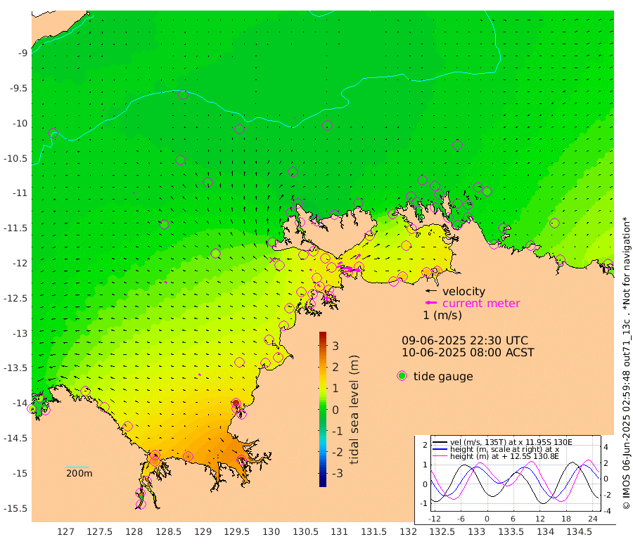89cm/s 80T +4cm/s rms + 6cm/s 51T. Darwin_C1 52m 108cm/s 90T +4cm/s rms + 7cm/s -161T. Darwin_CW1 22m 47cm/s 71T +4cm/s rms + 8cm/s 61T. Darwin_CW2 34m 61cm/s 45T +3cm/s rms + 9cm/s 98T. Darwin_CW3 22m 95cm/s 91T +5cm/s rms + 7cm/s 88T. Darwin_C3 56m 39cm/s 67T +2cm/s rms + 9cm/s -126T. Darwin_CTbW 22m 6cm/s -2T +9cm/s rms + 2cm/s -110T. NWSLYN 196m 18cm/s -66T +1cm/s rms + 1cm/s -47T. DARBGF 30m 5cm/s -86T +7cm/s rms + 2cm/s -137T. ITFTIS 464m 7cm/s -64T +9cm/s rms + 1cm/s 74T. ITFMHB 146m 20cm/s -48T +4cm/s rms + 1cm/s -134T. ITFJBG 61m 24cm/s -56T +6cm/s rms + 4cm/s 121T. ITFFTB 108m 33cm/s -50T +4cm/s rms + 3cm/s 80T. NRSDAR 19m 55cm Carronade Island 61cm Guy Point 54cm Napier Broome Bay 109cm Lesueur Island 155cm Reveley Island 80cm Rocky Island 219cm Cape Domett 207cm Lacrosse Island 248cm Adolphus Island 254cm Pender Point 265cm Wyndham 26cm The Boxers 11cm Unnamed Shoal -1cm Loxton Shoal 216cm Pelican Island 13cm Calder Shoal -3cm Evans Shoal 314cm Quoin Island 173cm Port Keats 170cm Jones Point 319cm Catfish Island 112cm Cape Scott Offshore 96cm Cape Ford 110cm Anson Bay -9cm Goodrich Bank 101cm Peron Island North 82cm Point Jenny 79cm Native Point 97cm Fish Reef 100cm Tapa Bay 38cm Point Fawcett (Offshore) 110cm Burge Point 82cm Munkunuwa 69cm Beagle A 101cm Parsons Bank 106cm Fenton Patches -8cm Lynedoch Bank 113cm Hancox Shoal Area 115cm Nightcliff 132cm Darwin 116cm Charles Point Patches 126cm Glyde Point 145cm Chambers Bay 155cm Point Stuart 125cm Cape Hotham 129cm Christine Reef 173cm West Alligator Head 187cm East Field Island 121cm Two Hills Bay 52cm Newby Shoal 116cm Camp Point 99cm Medina Inlet South 16cm South Barlow Point 10cm St. Asaph Bay -12cm Cape Van Dieman -9cm Snake Bay -2cm Cache Point 3cm Echo Shoal 12cm Point Jahleel (Off) 43cm Cape Don 7cm Port Essington 5cm Smith Point - West 2cm NW Peacock Island 1cm North Of Jones Shoal 0cm Peacock Island 8cm Point David 1cm D'urville Point 0cm Money Shoal 9cm Copeland Island 17cm Cape Cockburn 12cm One Tree Point 25cm Hogmany Shoal 13cm New Year Island - West 13cm Grant Island 24cm Aurari Bay 35cm Cuthbert Point 23cm North Goulburn Island 48cm Paxie Shoal 51cm Entrance Island 67cm Yabooma Island