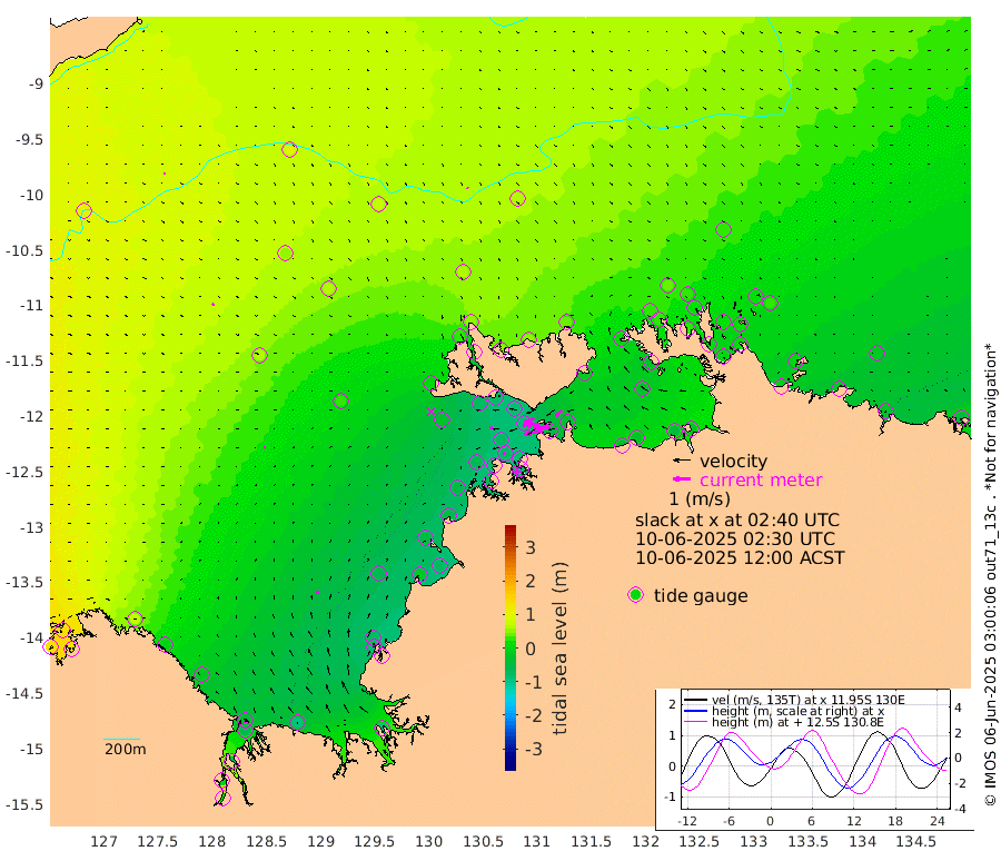 107cm/s -102T +4cm/s rms + 6cm/s 51T. Darwin_C1 52m 96cm/s -90T +4cm/s rms + 7cm/s -161T. Darwin_CW1 22m 57cm/s -107T +4cm/s rms + 8cm/s 61T. Darwin_CW2 34m 45cm/s -133T +3cm/s rms + 9cm/s 98T. Darwin_CW3 22m 82cm/s -91T +5cm/s rms + 7cm/s 88T. Darwin_C3 56m 62cm/s -115T +2cm/s rms + 9cm/s -126T. Darwin_CTbW 22m 6cm/s 135T +9cm/s rms + 2cm/s -110T. NWSLYN 196m 19cm/s -95T +1cm/s rms + 1cm/s -47T. DARBGF 30m 7cm/s 38T +7cm/s rms + 2cm/s -137T. ITFTIS 464m 10cm/s 45T +9cm/s rms + 1cm/s 74T. ITFMHB 146m 15cm/s 0T +4cm/s rms + 1cm/s -134T. ITFJBG 61m 10cm/s 36T +6cm/s rms + 4cm/s 121T. ITFFTB 108m 18cm/s -77T +4cm/s rms + 3cm/s 80T. NRSDAR 19m 130cm Carronade Island 131cm Guy Point 135cm Napier Broome Bay 70cm Lesueur Island -18cm Reveley Island -1cm Rocky Island -59cm Cape Domett -45cm Lacrosse Island -62cm Adolphus Island -9cm Pender Point 12cm Wyndham 59cm The Boxers 49cm Unnamed Shoal 92cm Loxton Shoal -93cm Pelican Island 66cm Calder Shoal 69cm Evans Shoal -98cm Quoin Island -84cm Port Keats -90cm Jones Point -78cm Catfish Island -59cm Cape Scott Offshore -22cm Cape Ford -78cm Anson Bay 57cm Goodrich Bank -53cm Peron Island North -54cm Point Jenny -51cm Native Point -63cm Fish Reef -69cm Tapa Bay 3cm Point Fawcett (Offshore) -71cm Burge Point -73cm Munkunuwa -31cm Beagle A -81cm Parsons Bank -68cm Fenton Patches 61cm Lynedoch Bank -81cm Hancox Shoal Area -86cm Nightcliff -89cm Darwin -72cm Charles Point Patches -54cm Glyde Point -36cm Chambers Bay -31cm Point Stuart -39cm Cape Hotham -27cm Christine Reef -35cm West Alligator Head -23cm East Field Island -23cm Two Hills Bay 29cm Newby Shoal -21cm Camp Point -68cm Medina Inlet South 10cm South Barlow Point 28cm St. Asaph Bay 53cm Cape Van Dieman 52cm Snake Bay 54cm Cache Point 102cm Echo Shoal 39cm Point Jahleel (Off) 6cm Cape Don 28cm Port Essington 27cm Smith Point - West 31cm NW Peacock Island 41cm North Of Jones Shoal 12cm Peacock Island 15cm Point David 25cm D'urville Point 33cm Money Shoal 9cm Copeland Island 16cm Cape Cockburn 17cm One Tree Point 23cm Hogmany Shoal 22cm New Year Island - West 18cm Grant Island -7cm Aurari Bay -14cm Cuthbert Point 3cm North Goulburn Island -19cm Paxie Shoal -27cm Entrance Island -49cm Yabooma Island