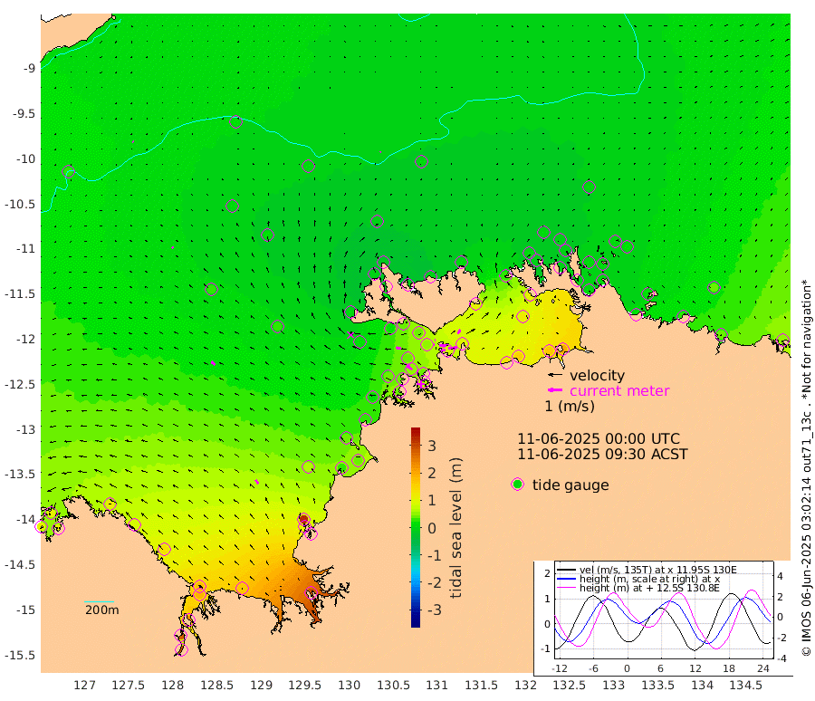 22cm/s 83T +4cm/s rms + 6cm/s 51T. Darwin_C1 52m 58cm/s 88T +4cm/s rms + 7cm/s -161T. Darwin_CW1 22m 7cm/s 86T +4cm/s rms + 8cm/s 61T. Darwin_CW2 34m 35cm/s 35T +3cm/s rms + 9cm/s 98T. Darwin_CW3 22m 45cm/s 94T +5cm/s rms + 7cm/s 88T. Darwin_C3 56m 3cm/s 98T +2cm/s rms + 9cm/s -126T. Darwin_CTbW 22m 5cm/s 5T +9cm/s rms + 2cm/s -110T. NWSLYN 196m 36cm/s -81T +1cm/s rms + 1cm/s -47T. DARBGF 30m 5cm/s -64T +7cm/s rms + 2cm/s -137T. ITFTIS 464m 10cm/s -29T +9cm/s rms + 1cm/s 74T. ITFMHB 146m 32cm/s -33T +4cm/s rms + 1cm/s -134T. ITFJBG 61m 32cm/s -48T +6cm/s rms + 4cm/s 121T. ITFFTB 108m 45cm/s -53T +4cm/s rms + 3cm/s 80T. NRSDAR 19m 105cm Carronade Island 110cm Guy Point 107cm Napier Broome Bay 122cm Lesueur Island 131cm Reveley Island 81cm Rocky Island 185cm Cape Domett 174cm Lacrosse Island 226cm Adolphus Island 271cm Pender Point 296cm Wyndham 28cm The Boxers 4cm Unnamed Shoal 21cm Loxton Shoal 166cm Pelican Island 14cm Calder Shoal 8cm Evans Shoal 286cm Quoin Island 115cm Port Keats 111cm Jones Point 317cm Catfish Island 57cm Cape Scott Offshore 31cm Cape Ford 45cm Anson Bay -6cm Goodrich Bank 44cm Peron Island North 23cm Point Jenny 21cm Native Point 35cm Fish Reef 34cm Tapa Bay 6cm Point Fawcett (Offshore) 43cm Burge Point 14cm Munkunuwa 19cm Beagle A 34cm Parsons Bank 41cm Fenton Patches 2cm Lynedoch Bank 49cm Hancox Shoal Area 44cm Nightcliff 62cm Darwin 51cm Charles Point Patches 87cm Glyde Point 132cm Chambers Bay 147cm Point Stuart 97cm Cape Hotham 117cm Christine Reef 166cm West Alligator Head 193cm East Field Island 107cm Two Hills Bay 31cm Newby Shoal 102cm Camp Point 35cm Medina Inlet South -11cm South Barlow Point -8cm St. Asaph Bay -12cm Cape Van Dieman -11cm Snake Bay -1cm Cache Point 32cm Echo Shoal 8cm Point Jahleel (Off) 31cm Cape Don 2cm Port Essington -2cm Smith Point - West -2cm NW Peacock Island 0cm North Of Jones Shoal -1cm Peacock Island 0cm Point David -6cm D'urville Point 0cm Money Shoal 1cm Copeland Island 7cm Cape Cockburn 6cm One Tree Point 20cm Hogmany Shoal 9cm New Year Island - West 8cm Grant Island 13cm Aurari Bay 26cm Cuthbert Point 15cm North Goulburn Island 38cm Paxie Shoal 40cm Entrance Island 54cm Yabooma Island