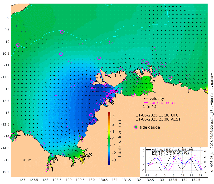 184cm/s -103T +4cm/s rms + 6cm/s 51T. Darwin_C1 52m 120cm/s -89T +4cm/s rms + 7cm/s -161T. Darwin_CW1 22m 111cm/s -108T +4cm/s rms + 8cm/s 61T. Darwin_CW2 34m 70cm/s -126T +3cm/s rms + 9cm/s 98T. Darwin_CW3 22m 137cm/s -91T +5cm/s rms + 7cm/s 88T. Darwin_C3 56m 114cm/s -116T +2cm/s rms + 9cm/s -126T. Darwin_CTbW 22m 8cm/s -68T +9cm/s rms + 2cm/s -110T. NWSLYN 196m 70cm/s -93T +1cm/s rms + 1cm/s -47T. DARBGF 30m 10cm/s -155T +7cm/s rms + 2cm/s -137T. ITFTIS 464m 9cm/s -40T +9cm/s rms + 1cm/s 74T. ITFMHB 146m 33cm/s -23T +4cm/s rms + 1cm/s -134T. ITFJBG 61m 30cm/s -54T +6cm/s rms + 4cm/s 121T. ITFFTB 108m 56cm/s -62T +4cm/s rms + 3cm/s 80T. NRSDAR 19m -19cm Carronade Island -19cm Guy Point -22cm Napier Broome Bay -111cm Lesueur Island -149cm Reveley Island -74cm Rocky Island -164cm Cape Domett -166cm Lacrosse Island -121cm Adolphus Island -27cm Pender Point 5cm Wyndham -135cm The Boxers -155cm Unnamed Shoal -76cm Loxton Shoal -185cm Pelican Island -130cm Calder Shoal -81cm Evans Shoal -102cm Quoin Island -234cm Port Keats -213cm Jones Point -32cm Catfish Island -229cm Cape Scott Offshore -297cm Cape Ford -254cm Anson Bay -105cm Goodrich Bank -232cm Peron Island North -250cm Point Jenny -253cm Native Point -247cm Fish Reef -266cm Tapa Bay -194cm Point Fawcett (Offshore) -265cm Burge Point -246cm Munkunuwa -240cm Beagle A -246cm Parsons Bank -263cm Fenton Patches -82cm Lynedoch Bank -239cm Hancox Shoal Area -266cm Nightcliff -264cm Darwin -267cm Charles Point Patches -164cm Glyde Point -70cm Chambers Bay -44cm Point Stuart -118cm Cape Hotham -78cm Christine Reef -35cm West Alligator Head 0cm East Field Island -78cm Two Hills Bay -209cm Newby Shoal -91cm Camp Point -255cm Medina Inlet South -178cm South Barlow Point -156cm St. Asaph Bay -112cm Cape Van Dieman -118cm Snake Bay -110cm Cache Point -49cm Echo Shoal -108cm Point Jahleel (Off) -113cm Cape Don -102cm Port Essington -107cm Smith Point - West -99cm NW Peacock Island -94cm North Of Jones Shoal -33cm Peacock Island -89cm Point David -104cm D'urville Point -86cm Money Shoal -84cm Copeland Island -108cm Cape Cockburn -89cm One Tree Point -102cm Hogmany Shoal -94cm New Year Island - West -93cm Grant Island -80cm Aurari Bay -72cm Cuthbert Point -83cm North Goulburn Island -67cm Paxie Shoal -57cm Entrance Island -27cm Yabooma Island