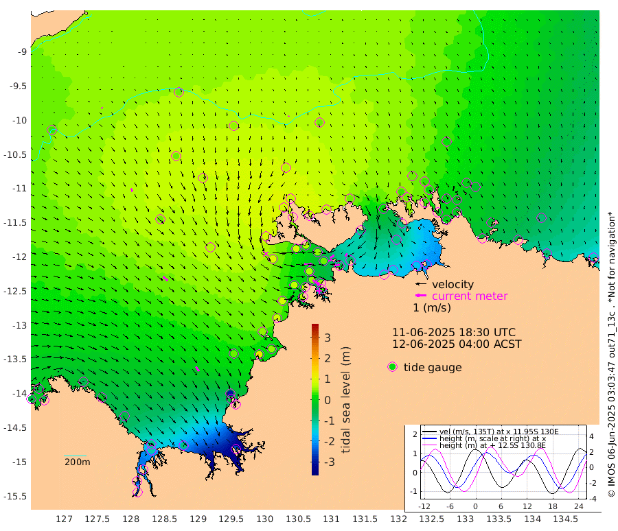 41cm/s 78T +4cm/s rms + 6cm/s 51T. Darwin_C1 52m 3cm/s 73T +4cm/s rms + 7cm/s -161T. Darwin_CW1 22m 33cm/s 73T +4cm/s rms + 8cm/s 61T. Darwin_CW2 34m 33cm/s -157T +3cm/s rms + 9cm/s 98T. Darwin_CW3 22m 7cm/s 66T +5cm/s rms + 7cm/s 88T. Darwin_C3 56m 46cm/s 62T +2cm/s rms + 9cm/s -126T. Darwin_CTbW 22m 6cm/s 174T +9cm/s rms + 2cm/s -110T. NWSLYN 196m 74cm/s 94T +1cm/s rms + 1cm/s -47T. DARBGF 30m 10cm/s 120T +7cm/s rms + 2cm/s -137T. ITFTIS 464m 30cm/s 163T +9cm/s rms + 1cm/s 74T. ITFMHB 146m 51cm/s 147T +4cm/s rms + 1cm/s -134T. ITFJBG 61m 56cm/s 133T +6cm/s rms + 4cm/s 121T. ITFFTB 108m 78cm/s 124T +4cm/s rms + 3cm/s 80T. NRSDAR 19m -53cm Carronade Island -52cm Guy Point -59cm Napier Broome Bay -59cm Lesueur Island -54cm Reveley Island -12cm Rocky Island -113cm Cape Domett -99cm Lacrosse Island -169cm Adolphus Island -249cm Pender Point -289cm Wyndham 44cm The Boxers 36cm Unnamed Shoal 43cm Loxton Shoal -92cm Pelican Island 66cm Calder Shoal 54cm Evans Shoal -250cm Quoin Island -27cm Port Keats -36cm Jones Point -302cm Catfish Island 38cm Cape Scott Offshore 126cm Cape Ford 49cm Anson Bay 62cm Goodrich Bank 51cm Peron Island North 85cm Point Jenny 86cm Native Point 68cm Fish Reef 72cm Tapa Bay 89cm Point Fawcett (Offshore) 59cm Burge Point 89cm Munkunuwa 90cm Beagle A 50cm Parsons Bank 65cm Fenton Patches 40cm Lynedoch Bank 34cm Hancox Shoal Area 54cm Nightcliff 26cm Darwin 46cm Charles Point Patches -38cm Glyde Point -115cm Chambers Bay -149cm Point Stuart -68cm Cape Hotham -93cm Christine Reef -169cm West Alligator Head -210cm East Field Island -93cm Two Hills Bay 67cm Newby Shoal -86cm Camp Point 65cm Medina Inlet South 91cm South Barlow Point 89cm St. Asaph Bay 68cm Cape Van Dieman 60cm Snake Bay 57cm Cache Point 31cm Echo Shoal 41cm Point Jahleel (Off) 3cm Cape Don 29cm Port Essington 41cm Smith Point - West 29cm NW Peacock Island 35cm North Of Jones Shoal 11cm Peacock Island -7cm Point David 33cm D'urville Point 12cm Money Shoal -10cm Copeland Island -14cm Cape Cockburn -5cm One Tree Point -25cm Hogmany Shoal -11cm New Year Island - West -11cm Grant Island -36cm Aurari Bay -56cm Cuthbert Point -33cm North Goulburn Island -82cm Paxie Shoal -89cm Entrance Island -131cm Yabooma Island