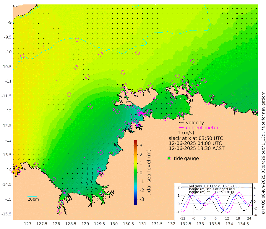 141cm/s -101T +4cm/s rms + 6cm/s 51T. Darwin_C1 52m 112cm/s -90T +4cm/s rms + 7cm/s -161T. Darwin_CW1 22m 61cm/s -107T +4cm/s rms + 8cm/s 61T. Darwin_CW2 34m 65cm/s -134T +3cm/s rms + 9cm/s 98T. Darwin_CW3 22m 88cm/s -91T +5cm/s rms + 7cm/s 88T. Darwin_C3 56m 80cm/s -115T +2cm/s rms + 9cm/s -126T. Darwin_CTbW 22m 9cm/s 139T +9cm/s rms + 2cm/s -110T. NWSLYN 196m 15cm/s -100T +1cm/s rms + 1cm/s -47T. DARBGF 30m 10cm/s 37T +7cm/s rms + 2cm/s -137T. ITFTIS 464m 13cm/s 46T +9cm/s rms + 1cm/s 74T. ITFMHB 146m 15cm/s 13T +4cm/s rms + 1cm/s -134T. ITFJBG 61m 14cm/s 57T +6cm/s rms + 4cm/s 121T. ITFFTB 108m 14cm/s -90T +4cm/s rms + 3cm/s 80T. NRSDAR 19m 133cm Carronade Island 131cm Guy Point 140cm Napier Broome Bay 66cm Lesueur Island -39cm Reveley Island -11cm Rocky Island -91cm Cape Domett -73cm Lacrosse Island -105cm Adolphus Island -46cm Pender Point -26cm Wyndham 71cm The Boxers 64cm Unnamed Shoal 103cm Loxton Shoal -122cm Pelican Island 76cm Calder Shoal 80cm Evans Shoal -148cm Quoin Island -111cm Port Keats -107cm Jones Point -102cm Catfish Island -68cm Cape Scott Offshore -11cm Cape Ford -87cm Anson Bay 70cm Goodrich Bank -61cm Peron Island North -58cm Point Jenny -55cm Native Point -67cm Fish Reef -77cm Tapa Bay 11cm Point Fawcett (Offshore) -84cm Burge Point -82cm Munkunuwa -34cm Beagle A -95cm Parsons Bank -80cm Fenton Patches 73cm Lynedoch Bank -96cm Hancox Shoal Area -105cm Nightcliff -103cm Darwin -78cm Charles Point Patches -67cm Glyde Point -55cm Chambers Bay -50cm Point Stuart -54cm Cape Hotham -48cm Christine Reef -58cm West Alligator Head -48cm East Field Island -37cm Two Hills Bay 30cm Newby Shoal -33cm Camp Point -76cm Medina Inlet South 16cm South Barlow Point 37cm St. Asaph Bay 67cm Cape Van Dieman 64cm Snake Bay 66cm Cache Point 113cm Echo Shoal 46cm Point Jahleel (Off) 7cm Cape Don 38cm Port Essington 35cm Smith Point - West 39cm NW Peacock Island 49cm North Of Jones Shoal 15cm Peacock Island 21cm Point David 33cm D'urville Point 43cm Money Shoal 15cm Copeland Island 21cm Cape Cockburn 23cm One Tree Point 31cm Hogmany Shoal 28cm New Year Island - West 23cm Grant Island -5cm Aurari Bay -13cm Cuthbert Point 4cm North Goulburn Island -20cm Paxie Shoal -31cm Entrance Island -58cm Yabooma Island