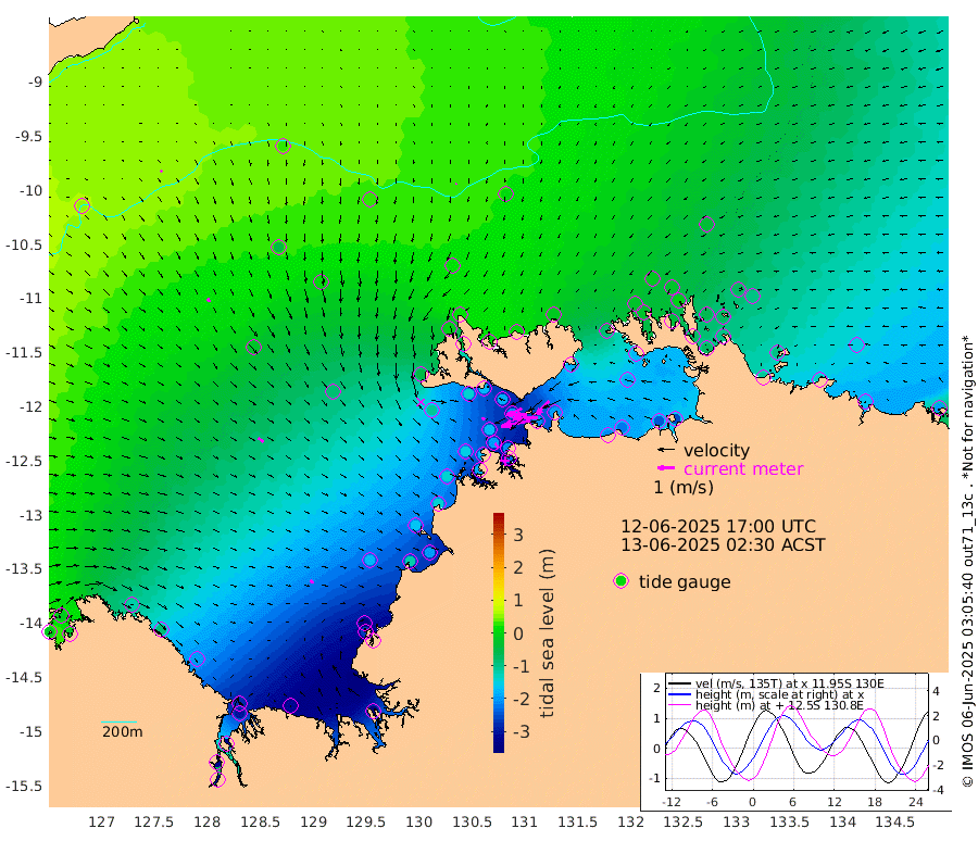 173cm/s -101T +4cm/s rms + 6cm/s 51T. Darwin_C1 52m 148cm/s -92T +4cm/s rms + 7cm/s -161T. Darwin_CW1 22m 64cm/s -105T +4cm/s rms + 8cm/s 61T. Darwin_CW2 34m 106cm/s -137T +3cm/s rms + 9cm/s 98T. Darwin_CW3 22m 125cm/s -90T +5cm/s rms + 7cm/s 88T. Darwin_C3 56m 95cm/s -116T +2cm/s rms + 9cm/s -126T. Darwin_CTbW 22m 6cm/s -153T +9cm/s rms + 2cm/s -110T. NWSLYN 196m 19cm/s 116T +1cm/s rms + 1cm/s -47T. DARBGF 30m 13cm/s 136T +7cm/s rms + 2cm/s -137T. ITFTIS 464m 23cm/s 158T +9cm/s rms + 1cm/s 74T. ITFMHB 146m 24cm/s 126T +4cm/s rms + 1cm/s -134T. ITFJBG 61m 37cm/s 129T +6cm/s rms + 4cm/s 121T. ITFFTB 108m 31cm/s 140T +4cm/s rms + 3cm/s 80T. NRSDAR 19m -13cm Carronade Island -15cm Guy Point -19cm Napier Broome Bay -121cm Lesueur Island -198cm Reveley Island -82cm Rocky Island -300cm Cape Domett -274cm Lacrosse Island -335cm Adolphus Island -319cm Pender Point -327cm Wyndham -29cm The Boxers -52cm Unnamed Shoal 32cm Loxton Shoal -310cm Pelican Island 2cm Calder Shoal 30cm Evans Shoal -423cm Quoin Island -273cm Port Keats -261cm Jones Point -397cm Catfish Island -174cm Cape Scott Offshore -113cm Cape Ford -191cm Anson Bay 13cm Goodrich Bank -158cm Peron Island North -139cm Point Jenny -139cm Native Point -155cm Fish Reef -174cm Tapa Bay -53cm Point Fawcett (Offshore) -188cm Burge Point -139cm Munkunuwa -111cm Beagle A -189cm Parsons Bank -179cm Fenton Patches 10cm Lynedoch Bank -203cm Hancox Shoal Area -205cm Nightcliff -232cm Darwin -202cm Charles Point Patches -204cm Glyde Point -210cm Chambers Bay -218cm Point Stuart -192cm Cape Hotham -189cm Christine Reef -237cm West Alligator Head -248cm East Field Island -179cm Two Hills Bay -82cm Newby Shoal -182cm Camp Point -170cm Medina Inlet South -37cm South Barlow Point -11cm St. Asaph Bay 14cm Cape Van Dieman 0cm Snake Bay 4cm Cache Point 47cm Echo Shoal -21cm Point Jahleel (Off) -84cm Cape Don -33cm Port Essington -27cm Smith Point - West -31cm NW Peacock Island -14cm North Of Jones Shoal -7cm Peacock Island -70cm Point David -34cm D'urville Point -37cm Money Shoal -72cm Copeland Island -91cm Cape Cockburn -66cm One Tree Point -98cm Hogmany Shoal -75cm New Year Island - West -78cm Grant Island -105cm Aurari Bay -128cm Cuthbert Point -101cm North Goulburn Island -154cm Paxie Shoal -160cm Entrance Island -192cm Yabooma Island