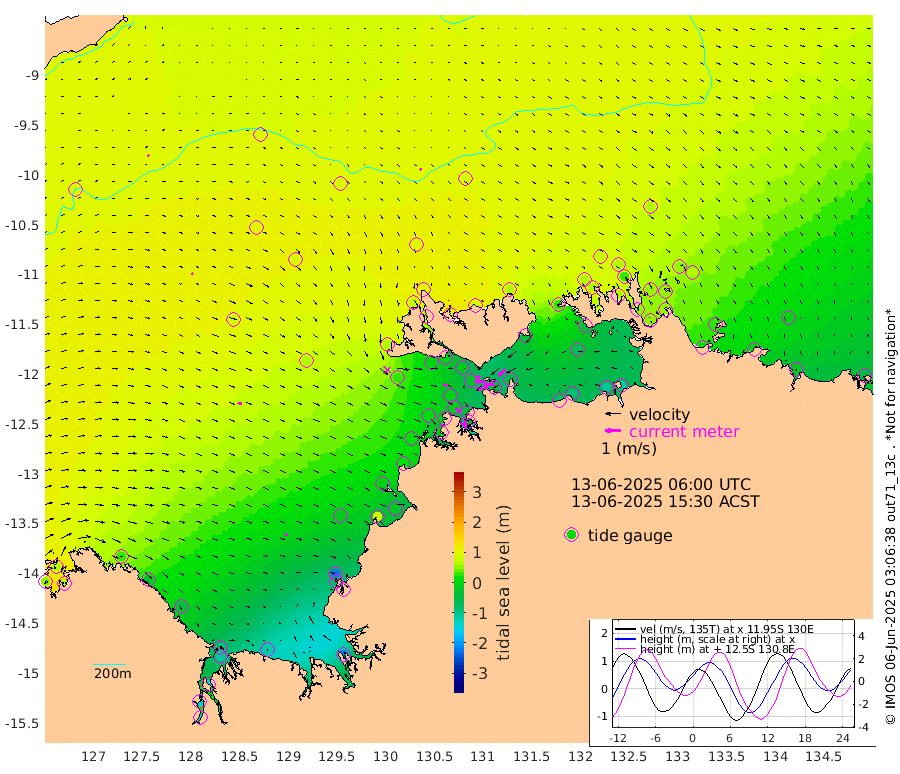 75cm/s -100T +4cm/s rms + 6cm/s 51T. Darwin_C1 52m 67cm/s -92T +4cm/s rms + 7cm/s -161T. Darwin_CW1 22m 23cm/s -107T +4cm/s rms + 8cm/s 61T. Darwin_CW2 34m 60cm/s -137T +3cm/s rms + 9cm/s 98T. Darwin_CW3 22m 51cm/s -91T +5cm/s rms + 7cm/s 88T. Darwin_C3 56m 33cm/s -115T +2cm/s rms + 9cm/s -126T. Darwin_CTbW 22m 11cm/s 140T +9cm/s rms + 2cm/s -110T. NWSLYN 196m 27cm/s 101T +1cm/s rms + 1cm/s -47T. DARBGF 30m 13cm/s 37T +7cm/s rms + 2cm/s -137T. ITFTIS 464m 13cm/s 62T +9cm/s rms + 1cm/s 74T. ITFMHB 146m 18cm/s 108T +4cm/s rms + 1cm/s -134T. ITFJBG 61m 26cm/s 101T +6cm/s rms + 4cm/s 121T. ITFFTB 108m 29cm/s 136T +4cm/s rms + 3cm/s 80T. NRSDAR 19m 60cm Carronade Island 56cm Guy Point 66cm Napier Broome Bay 30cm Lesueur Island -49cm Reveley Island -33cm Rocky Island -110cm Cape Domett -91cm Lacrosse Island -155cm Adolphus Island -150cm Pender Point -155cm Wyndham 83cm The Boxers 100cm Unnamed Shoal 95cm Loxton Shoal -119cm Pelican Island 89cm Calder Shoal 85cm Evans Shoal -218cm Quoin Island -75cm Port Keats -69cm Jones Point -217cm Catfish Island -17cm Cape Scott Offshore 82cm Cape Ford -19cm Anson Bay 91cm Goodrich Bank -1cm Peron Island North 12cm Point Jenny 17cm Native Point 2cm Fish Reef -1cm Tapa Bay 62cm Point Fawcett (Offshore) -11cm Burge Point -2cm Munkunuwa 30cm Beagle A -20cm Parsons Bank -10cm Fenton Patches 84cm Lynedoch Bank -31cm Hancox Shoal Area -34cm Nightcliff -31cm Darwin -4cm Charles Point Patches -42cm Glyde Point -86cm Chambers Bay -89cm Point Stuart -49cm Cape Hotham -72cm Christine Reef -107cm West Alligator Head -121cm East Field Island -52cm Two Hills Bay 67cm Newby Shoal -42cm Camp Point -3cm Medina Inlet South 70cm South Barlow Point 78cm St. Asaph Bay 94cm Cape Van Dieman 94cm Snake Bay 88cm Cache Point 88cm Echo Shoal 67cm Point Jahleel (Off) 28cm Cape Don 65cm Port Essington 63cm Smith Point - West 66cm NW Peacock Island 69cm North Of Jones Shoal 23cm Peacock Island 53cm Point David 64cm D'urville Point 67cm Money Shoal 45cm Copeland Island 56cm Cape Cockburn 50cm One Tree Point 61cm Hogmany Shoal 54cm New Year Island - West 51cm Grant Island 22cm Aurari Bay 10cm Cuthbert Point 30cm North Goulburn Island 0cm Paxie Shoal -17cm Entrance Island -52cm Yabooma Island