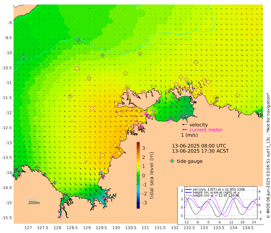 99cm/s 79T +4cm/s rms + 6cm/s 51T. Darwin_C1 52m 60cm/s 82T +4cm/s rms + 7cm/s -161T. Darwin_CW1 22m 35cm/s 76T +4cm/s rms + 8cm/s 61T. Darwin_CW2 34m 19cm/s 69T +3cm/s rms + 9cm/s 98T. Darwin_CW3 22m 32cm/s 87T +5cm/s rms + 7cm/s 88T. Darwin_C3 56m 70cm/s 62T +2cm/s rms + 9cm/s -126T. Darwin_CTbW 22m 7cm/s 126T +9cm/s rms + 2cm/s -110T. NWSLYN 196m 43cm/s 92T +1cm/s rms + 1cm/s -47T. DARBGF 30m 10cm/s 14T +7cm/s rms + 2cm/s -137T. ITFTIS 464m 8cm/s 39T +9cm/s rms + 1cm/s 74T. ITFMHB 146m 28cm/s 148T +4cm/s rms + 1cm/s -134T. ITFJBG 61m 21cm/s 118T +6cm/s rms + 4cm/s 121T. ITFFTB 108m 41cm/s 121T +4cm/s rms + 3cm/s 80T. NRSDAR 19m -59cm Carronade Island -64cm Guy Point -59cm Napier Broome Bay 1cm Lesueur Island 19cm Reveley Island -27cm Rocky Island 6cm Cape Domett 9cm Lacrosse Island -39cm Adolphus Island -105cm Pender Point -136cm Wyndham 53cm The Boxers 102cm Unnamed Shoal 18cm Loxton Shoal 30cm Pelican Island 50cm Calder Shoal 30cm Evans Shoal -72cm Quoin Island 80cm Port Keats 80cm Jones Point -144cm Catfish Island 93cm Cape Scott Offshore 166cm Cape Ford 117cm Anson Bay 59cm Goodrich Bank 108cm Peron Island North 120cm Point Jenny 124cm Native Point 116cm Fish Reef 130cm Tapa Bay 95cm Point Fawcett (Offshore) 128cm Burge Point 126cm Munkunuwa 112cm Beagle A 129cm Parsons Bank 122cm Fenton Patches 44cm Lynedoch Bank 116cm Hancox Shoal Area 121cm Nightcliff 129cm Darwin 131cm Charles Point Patches 64cm Glyde Point -17cm Chambers Bay -25cm Point Stuart 36cm Cape Hotham -8cm Christine Reef -40cm West Alligator Head -71cm East Field Island 8cm Two Hills Bay 90cm Newby Shoal 19cm Camp Point 124cm Medina Inlet South 99cm South Barlow Point 80cm St. Asaph Bay 67cm Cape Van Dieman 75cm Snake Bay 60cm Cache Point -10cm Echo Shoal 58cm Point Jahleel (Off) 58cm Cape Don 68cm Port Essington 68cm Smith Point - West 69cm NW Peacock Island 56cm North Of Jones Shoal 22cm Peacock Island 85cm Point David 75cm D'urville Point 67cm Money Shoal 81cm Copeland Island 97cm Cape Cockburn 75cm One Tree Point 95cm Hogmany Shoal 80cm New Year Island - West 82cm Grant Island 77cm Aurari Bay 73cm Cuthbert Point 78cm North Goulburn Island 71cm Paxie Shoal 63cm Entrance Island 48cm Yabooma Island