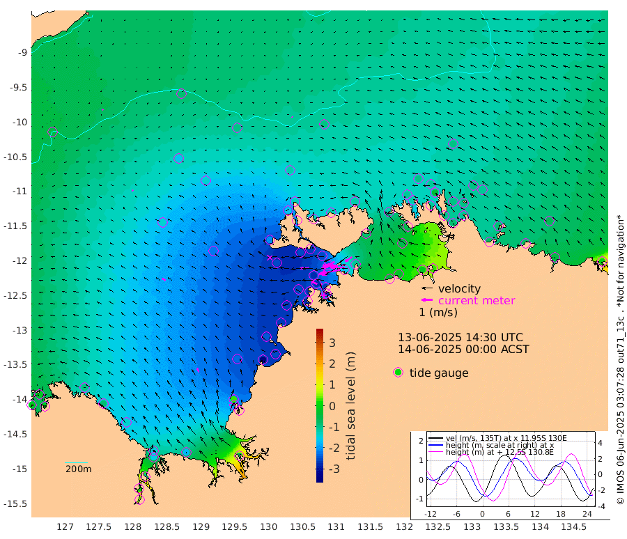 199cm/s -102T +4cm/s rms + 6cm/s 51T. Darwin_C1 52m 132cm/s -88T +4cm/s rms + 7cm/s -161T. Darwin_CW1 22m 112cm/s -108T +4cm/s rms + 8cm/s 61T. Darwin_CW2 34m 76cm/s -125T +3cm/s rms + 9cm/s 98T. Darwin_CW3 22m 140cm/s -91T +5cm/s rms + 7cm/s 88T. Darwin_C3 56m 116cm/s -116T +2cm/s rms + 9cm/s -126T. Darwin_CTbW 22m 9cm/s -57T +9cm/s rms + 2cm/s -110T. NWSLYN 196m 73cm/s -93T +1cm/s rms + 1cm/s -47T. DARBGF 30m 11cm/s -152T +7cm/s rms + 2cm/s -137T. ITFTIS 464m 10cm/s -42T +9cm/s rms + 1cm/s 74T. ITFMHB 146m 36cm/s -24T +4cm/s rms + 1cm/s -134T. ITFJBG 61m 33cm/s -55T +6cm/s rms + 4cm/s 121T. ITFFTB 108m 60cm/s -62T +4cm/s rms + 3cm/s 80T. NRSDAR 19m -14cm Carronade Island -15cm Guy Point -19cm Napier Broome Bay -98cm Lesueur Island -141cm Reveley Island -87cm Rocky Island -153cm Cape Domett -148cm Lacrosse Island -103cm Adolphus Island -6cm Pender Point 35cm Wyndham -144cm The Boxers -158cm Unnamed Shoal -87cm Loxton Shoal -171cm Pelican Island -139cm Calder Shoal -92cm Evans Shoal -67cm Quoin Island -235cm Port Keats -210cm Jones Point 30cm Catfish Island -226cm Cape Scott Offshore -342cm Cape Ford -252cm Anson Bay -118cm Goodrich Bank -237cm Peron Island North -261cm Point Jenny -264cm Native Point -255cm Fish Reef -273cm Tapa Bay -204cm Point Fawcett (Offshore) -277cm Burge Point -259cm Munkunuwa -251cm Beagle A -256cm Parsons Bank -271cm Fenton Patches -92cm Lynedoch Bank -242cm Hancox Shoal Area -265cm Nightcliff -270cm Darwin -276cm Charles Point Patches -160cm Glyde Point -50cm Chambers Bay -24cm Point Stuart -107cm Cape Hotham -66cm Christine Reef -11cm West Alligator Head 30cm East Field Island -65cm Two Hills Bay -224cm Newby Shoal -80cm Camp Point -264cm Medina Inlet South -193cm South Barlow Point -168cm St. Asaph Bay -125cm Cape Van Dieman -129cm Snake Bay -121cm Cache Point -52cm Echo Shoal -115cm Point Jahleel (Off) -117cm Cape Don -112cm Port Essington -116cm Smith Point - West -107cm NW Peacock Island -100cm North Of Jones Shoal -34cm Peacock Island -91cm Point David -112cm D'urville Point -93cm Money Shoal -85cm Copeland Island -111cm Cape Cockburn -92cm One Tree Point -106cm Hogmany Shoal -95cm New Year Island - West -96cm Grant Island -74cm Aurari Bay -72cm Cuthbert Point -82cm North Goulburn Island -60cm Paxie Shoal -47cm Entrance Island -7cm Yabooma Island