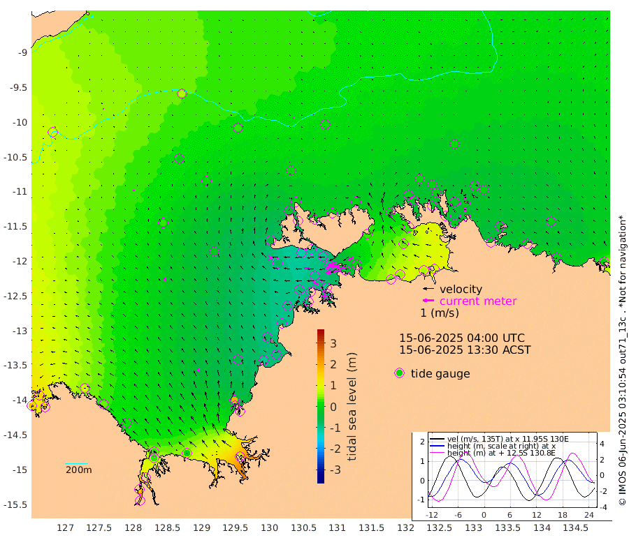 139cm/s -102T +4cm/s rms + 6cm/s 51T. Darwin_C1 52m 85cm/s -89T +4cm/s rms + 7cm/s -161T. Darwin_CW1 22m 67cm/s -110T +4cm/s rms + 8cm/s 61T. Darwin_CW2 34m 50cm/s -122T +3cm/s rms + 9cm/s 98T. Darwin_CW3 22m 66cm/s -92T +5cm/s rms + 7cm/s 88T. Darwin_C3 56m 75cm/s -116T +2cm/s rms + 9cm/s -126T. Darwin_CTbW 22m 3cm/s 128T +9cm/s rms + 2cm/s -110T. NWSLYN 196m 48cm/s -89T +1cm/s rms + 1cm/s -47T. DARBGF 30m 6cm/s 6T +7cm/s rms + 2cm/s -137T. ITFTIS 464m 15cm/s 10T +9cm/s rms + 1cm/s 74T. ITFMHB 146m 37cm/s -20T +4cm/s rms + 1cm/s -134T. ITFJBG 61m 27cm/s -29T +6cm/s rms + 4cm/s 121T. ITFFTB 108m 41cm/s -63T +4cm/s rms + 3cm/s 80T. NRSDAR 19m 155cm Carronade Island 158cm Guy Point 169cm Napier Broome Bay 92cm Lesueur Island 16cm Reveley Island 40cm Rocky Island 28cm Cape Domett 27cm Lacrosse Island 61cm Adolphus Island 159cm Pender Point 203cm Wyndham 32cm The Boxers -4cm Unnamed Shoal 58cm Loxton Shoal -11cm Pelican Island 20cm Calder Shoal 29cm Evans Shoal 89cm Quoin Island -53cm Port Keats -54cm Jones Point 184cm Catfish Island -61cm Cape Scott Offshore -103cm Cape Ford -84cm Anson Bay 7cm Goodrich Bank -78cm Peron Island North -84cm Point Jenny -85cm Native Point -86cm Fish Reef -96cm Tapa Bay -43cm Point Fawcett (Offshore) -95cm Burge Point -114cm Munkunuwa -72cm Beagle A -108cm Parsons Bank -92cm Fenton Patches 22cm Lynedoch Bank -92cm Hancox Shoal Area -102cm Nightcliff -94cm Darwin -83cm Charles Point Patches -27cm Glyde Point 43cm Chambers Bay 54cm Point Stuart -6cm Cape Hotham 35cm Christine Reef 64cm West Alligator Head 101cm East Field Island 25cm Two Hills Bay -13cm Newby Shoal 29cm Camp Point -92cm Medina Inlet South -48cm South Barlow Point -26cm St. Asaph Bay -1cm Cape Van Dieman -6cm Snake Bay 6cm Cache Point 80cm Echo Shoal -1cm Point Jahleel (Off) -5cm Cape Don -6cm Port Essington -13cm Smith Point - West -9cm NW Peacock Island 3cm North Of Jones Shoal -1cm Peacock Island -21cm Point David -18cm D'urville Point 3cm Money Shoal -22cm Copeland Island -23cm Cape Cockburn -12cm One Tree Point -11cm Hogmany Shoal -8cm New Year Island - West -15cm Grant Island -22cm Aurari Bay -13cm Cuthbert Point -18cm North Goulburn Island -4cm Paxie Shoal -10cm Entrance Island -6cm Yabooma Island
