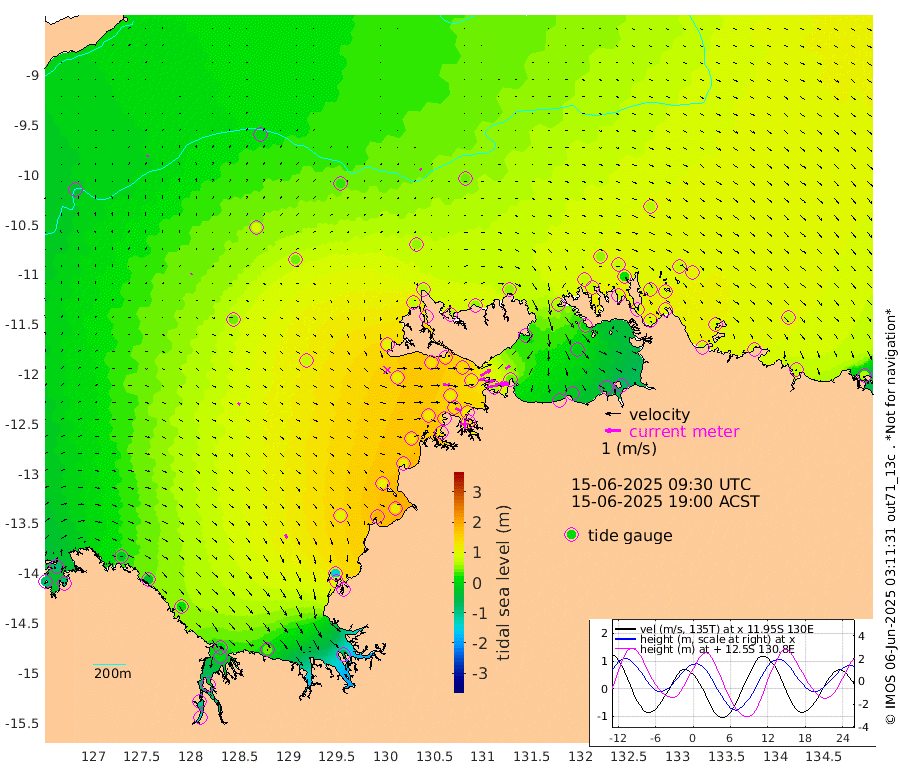 125cm/s 79T +4cm/s rms + 6cm/s 51T. Darwin_C1 52m 89cm/s 85T +4cm/s rms + 7cm/s -161T. Darwin_CW1 22m 42cm/s 76T +4cm/s rms + 8cm/s 61T. Darwin_CW2 34m 37cm/s 57T +3cm/s rms + 9cm/s 98T. Darwin_CW3 22m 50cm/s 88T +5cm/s rms + 7cm/s 88T. Darwin_C3 56m 76cm/s 62T +2cm/s rms + 9cm/s -126T. Darwin_CTbW 22m 8cm/s 132T +9cm/s rms + 2cm/s -110T. NWSLYN 196m 42cm/s 91T +1cm/s rms + 1cm/s -47T. DARBGF 30m 8cm/s 7T +7cm/s rms + 2cm/s -137T. ITFTIS 464m 5cm/s 36T +9cm/s rms + 1cm/s 74T. ITFMHB 146m 28cm/s 153T +4cm/s rms + 1cm/s -134T. ITFJBG 61m 18cm/s 125T +6cm/s rms + 4cm/s 121T. ITFFTB 108m 40cm/s 119T +4cm/s rms + 3cm/s 80T. NRSDAR 19m -81cm Carronade Island -83cm Guy Point -83cm Napier Broome Bay -16cm Lesueur Island 19cm Reveley Island -29cm Rocky Island 11cm Cape Domett 8cm Lacrosse Island -30cm Adolphus Island -102cm Pender Point -139cm Wyndham 41cm The Boxers 84cm Unnamed Shoal 6cm Loxton Shoal 43cm Pelican Island 37cm Calder Shoal 24cm Evans Shoal -62cm Quoin Island 89cm Port Keats 90cm Jones Point -139cm Catfish Island 94cm Cape Scott Offshore 186cm Cape Ford 119cm Anson Bay 53cm Goodrich Bank 112cm Peron Island North 121cm Point Jenny 124cm Native Point 119cm Fish Reef 134cm Tapa Bay 92cm Point Fawcett (Offshore) 130cm Burge Point 132cm Munkunuwa 108cm Beagle A 137cm Parsons Bank 122cm Fenton Patches 37cm Lynedoch Bank 123cm Hancox Shoal Area 121cm Nightcliff 136cm Darwin 139cm Charles Point Patches 67cm Glyde Point -15cm Chambers Bay -22cm Point Stuart 38cm Cape Hotham -6cm Christine Reef -37cm West Alligator Head -71cm East Field Island 10cm Two Hills Bay 77cm Newby Shoal 18cm Camp Point 128cm Medina Inlet South 96cm South Barlow Point 75cm St. Asaph Bay 61cm Cape Van Dieman 67cm Snake Bay 54cm Cache Point -25cm Echo Shoal 54cm Point Jahleel (Off) 58cm Cape Don 69cm Port Essington 68cm Smith Point - West 69cm NW Peacock Island 52cm North Of Jones Shoal 21cm Peacock Island 86cm Point David 76cm D'urville Point 66cm Money Shoal 84cm Copeland Island 99cm Cape Cockburn 76cm One Tree Point 102cm Hogmany Shoal 78cm New Year Island - West 84cm Grant Island 79cm Aurari Bay 81cm Cuthbert Point 82cm North Goulburn Island 76cm Paxie Shoal 69cm Entrance Island 57cm Yabooma Island