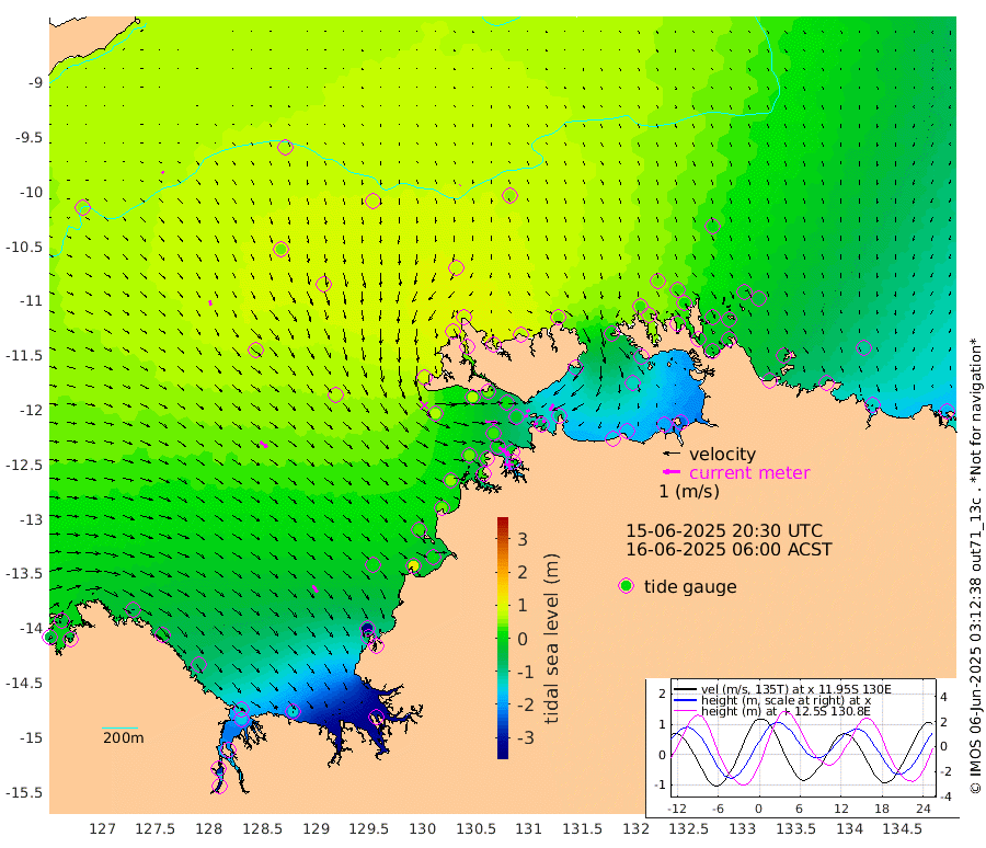 15cm/s 81T +4cm/s rms + 6cm/s 51T. Darwin_C1 52m 15cm/s 95T +4cm/s rms + 7cm/s -161T. Darwin_CW1 22m 19cm/s 72T +4cm/s rms + 8cm/s 61T. Darwin_CW2 34m 41cm/s -147T +3cm/s rms + 9cm/s 98T. Darwin_CW3 22m 3cm/s -48T +5cm/s rms + 7cm/s 88T. Darwin_C3 56m 19cm/s 63T +2cm/s rms + 9cm/s -126T. Darwin_CTbW 22m 3cm/s -163T +9cm/s rms + 2cm/s -110T. NWSLYN 196m 68cm/s 94T +1cm/s rms + 1cm/s -47T. DARBGF 30m 11cm/s 114T +7cm/s rms + 2cm/s -137T. ITFTIS 464m 27cm/s 158T +9cm/s rms + 1cm/s 74T. ITFMHB 146m 48cm/s 144T +4cm/s rms + 1cm/s -134T. ITFJBG 61m 52cm/s 131T +6cm/s rms + 4cm/s 121T. ITFFTB 108m 74cm/s 125T +4cm/s rms + 3cm/s 80T. NRSDAR 19m -43cm Carronade Island -48cm Guy Point -49cm Napier Broome Bay -60cm Lesueur Island -75cm Reveley Island -12cm Rocky Island -151cm Cape Domett -129cm Lacrosse Island -212cm Adolphus Island -277cm Pender Point -317cm Wyndham 46cm The Boxers 45cm Unnamed Shoal 62cm Loxton Shoal -146cm Pelican Island 76cm Calder Shoal 68cm Evans Shoal -293cm Quoin Island -70cm Port Keats -73cm Jones Point -349cm Catfish Island 3cm Cape Scott Offshore 115cm Cape Ford 7cm Anson Bay 69cm Goodrich Bank 29cm Peron Island North 45cm Point Jenny 47cm Native Point 42cm Fish Reef 28cm Tapa Bay 80cm Point Fawcett (Offshore) 26cm Burge Point 62cm Munkunuwa 65cm Beagle A 14cm Parsons Bank 28cm Fenton Patches 52cm Lynedoch Bank -12cm Hancox Shoal Area 6cm Nightcliff -11cm Darwin 9cm Charles Point Patches -68cm Glyde Point -154cm Chambers Bay -169cm Point Stuart -88cm Cape Hotham -129cm Christine Reef -190cm West Alligator Head -229cm East Field Island -109cm Two Hills Bay 60cm Newby Shoal -111cm Camp Point 36cm Medina Inlet South 88cm South Barlow Point 89cm St. Asaph Bay 75cm Cape Van Dieman 71cm Snake Bay 63cm Cache Point 53cm Echo Shoal 43cm Point Jahleel (Off) -7cm Cape Don 29cm Port Essington 36cm Smith Point - West 26cm NW Peacock Island 39cm North Of Jones Shoal 12cm Peacock Island -16cm Point David 27cm D'urville Point 9cm Money Shoal -21cm Copeland Island -20cm Cape Cockburn -10cm One Tree Point -41cm Hogmany Shoal -19cm New Year Island - West -21cm Grant Island -51cm Aurari Bay -82cm Cuthbert Point -48cm North Goulburn Island -111cm Paxie Shoal -128cm Entrance Island -179cm Yabooma Island