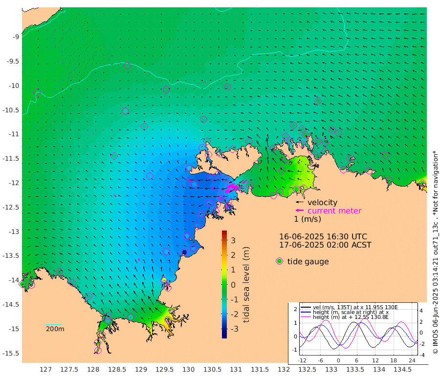 181cm/s -102T +4cm/s rms + 6cm/s 51T. Darwin_C1 52m 132cm/s -89T +4cm/s rms + 7cm/s -161T. Darwin_CW1 22m 98cm/s -108T +4cm/s rms + 8cm/s 61T. Darwin_CW2 34m 72cm/s -124T +3cm/s rms + 9cm/s 98T. Darwin_CW3 22m 128cm/s -91T +5cm/s rms + 7cm/s 88T. Darwin_C3 56m 100cm/s -116T +2cm/s rms + 9cm/s -126T. Darwin_CTbW 22m 9cm/s -47T +9cm/s rms + 2cm/s -110T. NWSLYN 196m 62cm/s -93T +1cm/s rms + 1cm/s -47T. DARBGF 30m 9cm/s -153T +7cm/s rms + 2cm/s -137T. ITFTIS 464m 8cm/s -38T +9cm/s rms + 1cm/s 74T. ITFMHB 146m 32cm/s -23T +4cm/s rms + 1cm/s -134T. ITFJBG 61m 27cm/s -52T +6cm/s rms + 4cm/s 121T. ITFFTB 108m 50cm/s -63T +4cm/s rms + 3cm/s 80T. NRSDAR 19m 14cm Carronade Island 15cm Guy Point 5cm Napier Broome Bay -47cm Lesueur Island -95cm Reveley Island -80cm Rocky Island -104cm Cape Domett -92cm Lacrosse Island -55cm Adolphus Island 21cm Pender Point 67cm Wyndham -111cm The Boxers -122cm Unnamed Shoal -70cm Loxton Shoal -115cm Pelican Island -108cm Calder Shoal -76cm Evans Shoal -22cm Quoin Island -183cm Port Keats -159cm Jones Point 73cm Catfish Island -172cm Cape Scott Offshore -285cm Cape Ford -195cm Anson Bay -96cm Goodrich Bank -189cm Peron Island North -205cm Point Jenny -208cm Native Point -205cm Fish Reef -213cm Tapa Bay -164cm Point Fawcett (Offshore) -223cm Burge Point -216cm Munkunuwa -194cm Beagle A -210cm Parsons Bank -209cm Fenton Patches -76cm Lynedoch Bank -187cm Hancox Shoal Area -202cm Nightcliff -216cm Darwin -220cm Charles Point Patches -117cm Glyde Point -15cm Chambers Bay 2cm Point Stuart -72cm Cape Hotham -31cm Christine Reef 15cm West Alligator Head 55cm East Field Island -38cm Two Hills Bay -175cm Newby Shoal -47cm Camp Point -215cm Medina Inlet South -161cm South Barlow Point -136cm St. Asaph Bay -103cm Cape Van Dieman -108cm Snake Bay -97cm Cache Point -31cm Echo Shoal -91cm Point Jahleel (Off) -94cm Cape Don -94cm Port Essington -94cm Smith Point - West -87cm NW Peacock Island -81cm North Of Jones Shoal -28cm Peacock Island -73cm Point David -92cm D'urville Point -76cm Money Shoal -67cm Copeland Island -92cm Cape Cockburn -77cm One Tree Point -82cm Hogmany Shoal -74cm New Year Island - West -78cm Grant Island -54cm Aurari Bay -55cm Cuthbert Point -67cm North Goulburn Island -44cm Paxie Shoal -27cm Entrance Island 11cm Yabooma Island