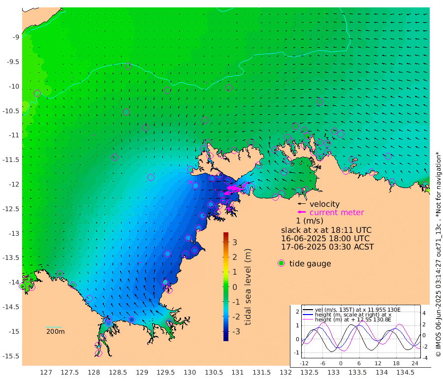 214cm/s -102T +4cm/s rms + 6cm/s 51T. Darwin_C1 52m 151cm/s -89T +4cm/s rms + 7cm/s -161T. Darwin_CW1 22m 106cm/s -107T +4cm/s rms + 8cm/s 61T. Darwin_CW2 34m 103cm/s -132T +3cm/s rms + 9cm/s 98T. Darwin_CW3 22m 155cm/s -90T +5cm/s rms + 7cm/s 88T. Darwin_C3 56m 118cm/s -115T +2cm/s rms + 9cm/s -126T. Darwin_CTbW 22m 6cm/s -66T +9cm/s rms + 2cm/s -110T. NWSLYN 196m 36cm/s -99T +1cm/s rms + 1cm/s -47T. DARBGF 30m 8cm/s 158T +7cm/s rms + 2cm/s -137T. ITFTIS 464m 5cm/s 139T +9cm/s rms + 1cm/s 74T. ITFMHB 146m 14cm/s 5T +4cm/s rms + 1cm/s -134T. ITFJBG 61m 4cm/s 63T +6cm/s rms + 4cm/s 121T. ITFFTB 108m 25cm/s -80T +4cm/s rms + 3cm/s 80T. NRSDAR 19m 26cm Carronade Island 24cm Guy Point 18cm Napier Broome Bay -67cm Lesueur Island -156cm Reveley Island -90cm Rocky Island -220cm Cape Domett -191cm Lacrosse Island -206cm Adolphus Island -143cm Pender Point -111cm Wyndham -69cm The Boxers -85cm Unnamed Shoal -6cm Loxton Shoal -238cm Pelican Island -49cm Calder Shoal -17cm Evans Shoal -222cm Quoin Island -262cm Port Keats -239cm Jones Point -137cm Catfish Island -199cm Cape Scott Offshore -241cm Cape Ford -225cm Anson Bay -41cm Goodrich Bank -200cm Peron Island North -210cm Point Jenny -211cm Native Point -211cm Fish Reef -232cm Tapa Bay -124cm Point Fawcett (Offshore) -246cm Burge Point -217cm Munkunuwa -180cm Beagle A -243cm Parsons Bank -230cm Fenton Patches -28cm Lynedoch Bank -235cm Hancox Shoal Area -242cm Nightcliff -262cm Darwin -246cm Charles Point Patches -181cm Glyde Point -123cm Chambers Bay -111cm Point Stuart -144cm Cape Hotham -124cm Christine Reef -112cm West Alligator Head -88cm East Field Island -115cm Two Hills Bay -143cm Newby Shoal -121cm Camp Point -227cm Medina Inlet South -115cm South Barlow Point -81cm St. Asaph Bay -46cm Cape Van Dieman -54cm Snake Bay -47cm Cache Point 32cm Echo Shoal -59cm Point Jahleel (Off) -101cm Cape Don -71cm Port Essington -70cm Smith Point - West -67cm NW Peacock Island -48cm North Of Jones Shoal -19cm Peacock Island -83cm Point David -74cm D'urville Point -62cm Money Shoal -82cm Copeland Island -106cm Cape Cockburn -81cm One Tree Point -105cm Hogmany Shoal -83cm New Year Island - West -90cm Grant Island -90cm Aurari Bay -112cm Cuthbert Point -101cm North Goulburn Island -117cm Paxie Shoal -118cm Entrance Island -115cm Yabooma Island