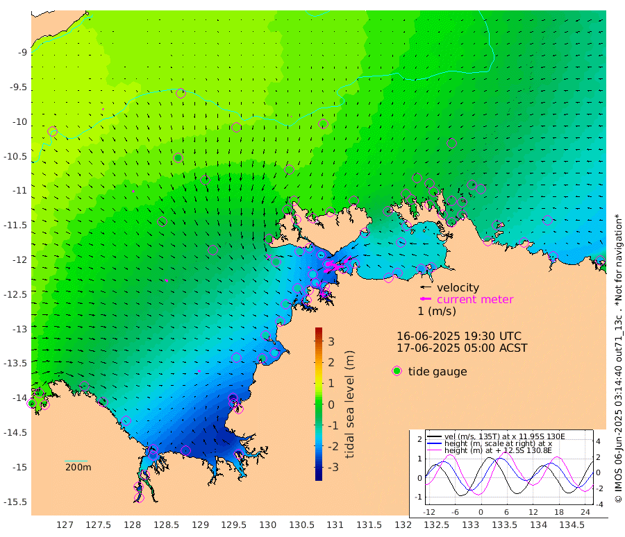 141cm/s -101T +4cm/s rms + 6cm/s 51T. Darwin_C1 52m 95cm/s -91T +4cm/s rms + 7cm/s -161T. Darwin_CW1 22m 58cm/s -106T +4cm/s rms + 8cm/s 61T. Darwin_CW2 34m 88cm/s -136T +3cm/s rms + 9cm/s 98T. Darwin_CW3 22m 106cm/s -90T +5cm/s rms + 7cm/s 88T. Darwin_C3 56m 78cm/s -116T +2cm/s rms + 9cm/s -126T. Darwin_CTbW 22m 3cm/s -109T +9cm/s rms + 2cm/s -110T. NWSLYN 196m 16cm/s 115T +1cm/s rms + 1cm/s -47T. DARBGF 30m 10cm/s 125T +7cm/s rms + 2cm/s -137T. ITFTIS 464m 17cm/s 149T +9cm/s rms + 1cm/s 74T. ITFMHB 146m 20cm/s 121T +4cm/s rms + 1cm/s -134T. ITFJBG 61m 31cm/s 124T +6cm/s rms + 4cm/s 121T. ITFFTB 108m 25cm/s 142T +4cm/s rms + 3cm/s 80T. NRSDAR 19m 5cm Carronade Island 0cm Guy Point -3cm Napier Broome Bay -71cm Lesueur Island -152cm Reveley Island -68cm Rocky Island -243cm Cape Domett -210cm Lacrosse Island -271cm Adolphus Island -261cm Pender Point -261cm Wyndham -9cm The Boxers -19cm Unnamed Shoal 47cm Loxton Shoal -255cm Pelican Island 21cm Calder Shoal 40cm Evans Shoal -330cm Quoin Island -225cm Port Keats -211cm Jones Point -300cm Catfish Island -136cm Cape Scott Offshore -92cm Cape Ford -154cm Anson Bay 24cm Goodrich Bank -121cm Peron Island North -121cm Point Jenny -120cm Native Point -122cm Fish Reef -146cm Tapa Bay -32cm Point Fawcett (Offshore) -158cm Burge Point -116cm Munkunuwa -86cm Beagle A -163cm Parsons Bank -146cm Fenton Patches 23cm Lynedoch Bank -173cm Hancox Shoal Area -170cm Nightcliff -189cm Darwin -163cm Charles Point Patches -166cm Glyde Point -180cm Chambers Bay -178cm Point Stuart -153cm Cape Hotham -166cm Christine Reef -193cm West Alligator Head -198cm East Field Island -144cm Two Hills Bay -56cm Newby Shoal -148cm Camp Point -136cm Medina Inlet South -21cm South Barlow Point 4cm St. Asaph Bay 24cm Cape Van Dieman 16cm Snake Bay 15cm Cache Point 67cm Echo Shoal -6cm Point Jahleel (Off) -69cm Cape Don -23cm Port Essington -20cm Smith Point - West -23cm NW Peacock Island -1cm North Of Jones Shoal -3cm Peacock Island -59cm Point David -27cm D'urville Point -28cm Money Shoal -62cm Copeland Island -77cm Cape Cockburn -54cm One Tree Point -86cm Hogmany Shoal -59cm New Year Island - West -67cm Grant Island -88cm Aurari Bay -122cm Cuthbert Point -92cm North Goulburn Island -141cm Paxie Shoal -157cm Entrance Island -188cm Yabooma Island