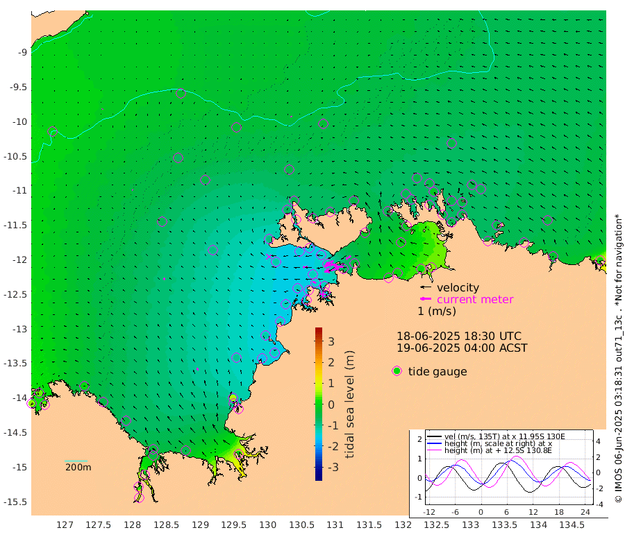 135cm/s -102T +4cm/s rms + 6cm/s 51T. Darwin_C1 52m 90cm/s -89T +4cm/s rms + 7cm/s -161T. Darwin_CW1 22m 74cm/s -108T +4cm/s rms + 8cm/s 61T. Darwin_CW2 34m 53cm/s -124T +3cm/s rms + 9cm/s 98T. Darwin_CW3 22m 97cm/s -91T +5cm/s rms + 7cm/s 88T. Darwin_C3 56m 75cm/s -115T +2cm/s rms + 9cm/s -126T. Darwin_CTbW 22m 7cm/s -38T +9cm/s rms + 2cm/s -110T. NWSLYN 196m 44cm/s -92T +1cm/s rms + 1cm/s -47T. DARBGF 30m 5cm/s -160T +7cm/s rms + 2cm/s -137T. ITFTIS 464m 4cm/s -16T +9cm/s rms + 1cm/s 74T. ITFMHB 146m 24cm/s -21T +4cm/s rms + 1cm/s -134T. ITFJBG 61m 17cm/s -43T +6cm/s rms + 4cm/s 121T. ITFFTB 108m 37cm/s -66T +4cm/s rms + 3cm/s 80T. NRSDAR 19m 45cm Carronade Island 48cm Guy Point 36cm Napier Broome Bay 2cm Lesueur Island -46cm Reveley Island -51cm Rocky Island -56cm Cape Domett -41cm Lacrosse Island -17cm Adolphus Island 33cm Pender Point 72cm Wyndham -56cm The Boxers -74cm Unnamed Shoal -27cm Loxton Shoal -65cm Pelican Island -53cm Calder Shoal -36cm Evans Shoal 3cm Quoin Island -115cm Port Keats -101cm Jones Point 66cm Catfish Island -106cm Cape Scott Offshore -169cm Cape Ford -125cm Anson Bay -51cm Goodrich Bank -121cm Peron Island North -128cm Point Jenny -130cm Native Point -130cm Fish Reef -135cm Tapa Bay -99cm Point Fawcett (Offshore) -143cm Burge Point -146cm Munkunuwa -114cm Beagle A -143cm Parsons Bank -127cm Fenton Patches -39cm Lynedoch Bank -121cm Hancox Shoal Area -127cm Nightcliff -142cm Darwin -139cm Charles Point Patches -71cm Glyde Point -2cm Chambers Bay 7cm Point Stuart -42cm Cape Hotham -10cm Christine Reef 16cm West Alligator Head 49cm East Field Island -22cm Two Hills Bay -97cm Newby Shoal -21cm Camp Point -141cm Medina Inlet South -100cm South Barlow Point -77cm St. Asaph Bay -57cm Cape Van Dieman -63cm Snake Bay -52cm Cache Point 7cm Echo Shoal -50cm Point Jahleel (Off) -59cm Cape Don -59cm Port Essington -58cm Smith Point - West -54cm NW Peacock Island -47cm North Of Jones Shoal -17cm Peacock Island -53cm Point David -59cm D'urville Point -47cm Money Shoal -49cm Copeland Island -67cm Cape Cockburn -54cm One Tree Point -58cm Hogmany Shoal -50cm New Year Island - West -55cm Grant Island -41cm Aurari Bay -46cm Cuthbert Point -54cm North Goulburn Island -40cm Paxie Shoal -31cm Entrance Island -7cm Yabooma Island