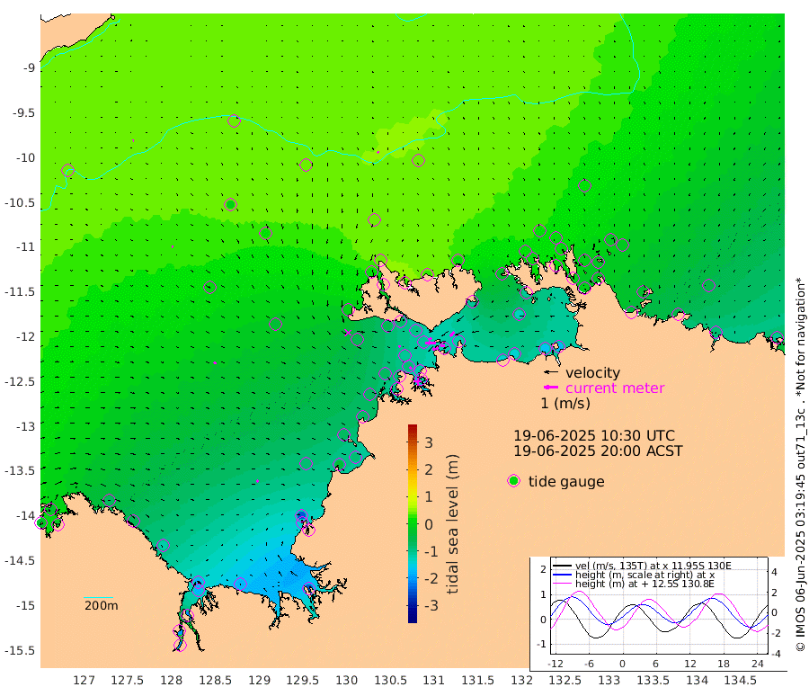 45cm/s -102T +4cm/s rms + 6cm/s 51T. Darwin_C1 52m 31cm/s -90T +4cm/s rms + 7cm/s -161T. Darwin_CW1 22m 33cm/s -107T +4cm/s rms + 8cm/s 61T. Darwin_CW2 34m 41cm/s -140T +3cm/s rms + 9cm/s 98T. Darwin_CW3 22m 63cm/s -90T +5cm/s rms + 7cm/s 88T. Darwin_C3 56m 25cm/s -115T +2cm/s rms + 9cm/s -126T. Darwin_CTbW 22m 11cm/s 157T +9cm/s rms + 2cm/s -110T. NWSLYN 196m 15cm/s 110T +1cm/s rms + 1cm/s -47T. DARBGF 30m 7cm/s 70T +7cm/s rms + 2cm/s -137T. ITFTIS 464m 7cm/s 111T +9cm/s rms + 1cm/s 74T. ITFMHB 146m 16cm/s 118T +4cm/s rms + 1cm/s -134T. ITFJBG 61m 20cm/s 115T +6cm/s rms + 4cm/s 121T. ITFFTB 108m 21cm/s 135T +4cm/s rms + 3cm/s 80T. NRSDAR 19m -24cm Carronade Island -23cm Guy Point -21cm Napier Broome Bay -75cm Lesueur Island -121cm Reveley Island -64cm Rocky Island -178cm Cape Domett -170cm Lacrosse Island -208cm Adolphus Island -193cm Pender Point -210cm Wyndham 5cm The Boxers 0cm Unnamed Shoal 45cm Loxton Shoal -178cm Pelican Island 17cm Calder Shoal 41cm Evans Shoal -244cm Quoin Island -143cm Port Keats -141cm Jones Point -243cm Catfish Island -85cm Cape Scott Offshore -37cm Cape Ford -89cm Anson Bay 35cm Goodrich Bank -73cm Peron Island North -73cm Point Jenny -71cm Native Point -78cm Fish Reef -86cm Tapa Bay -7cm Point Fawcett (Offshore) -100cm Burge Point -64cm Munkunuwa -65cm Beagle A -92cm Parsons Bank -107cm Fenton Patches 34cm Lynedoch Bank -106cm Hancox Shoal Area -117cm Nightcliff -109cm Darwin -84cm Charles Point Patches -113cm Glyde Point -142cm Chambers Bay -143cm Point Stuart -114cm Cape Hotham -131cm Christine Reef -161cm West Alligator Head -175cm East Field Island -109cm Two Hills Bay -41cm Newby Shoal -105cm Camp Point -75cm Medina Inlet South 6cm South Barlow Point 17cm St. Asaph Bay 36cm Cape Van Dieman 33cm Snake Bay 26cm Cache Point 38cm Echo Shoal 8cm Point Jahleel (Off) -29cm Cape Don 13cm Port Essington 8cm Smith Point - West 9cm NW Peacock Island 22cm North Of Jones Shoal 7cm Peacock Island -7cm Point David 7cm D'urville Point 13cm Money Shoal -11cm Copeland Island -17cm Cape Cockburn -4cm One Tree Point -16cm Hogmany Shoal -13cm New Year Island - West -13cm Grant Island -35cm Aurari Bay -48cm Cuthbert Point -28cm North Goulburn Island -53cm Paxie Shoal -83cm Entrance Island -107cm Yabooma Island