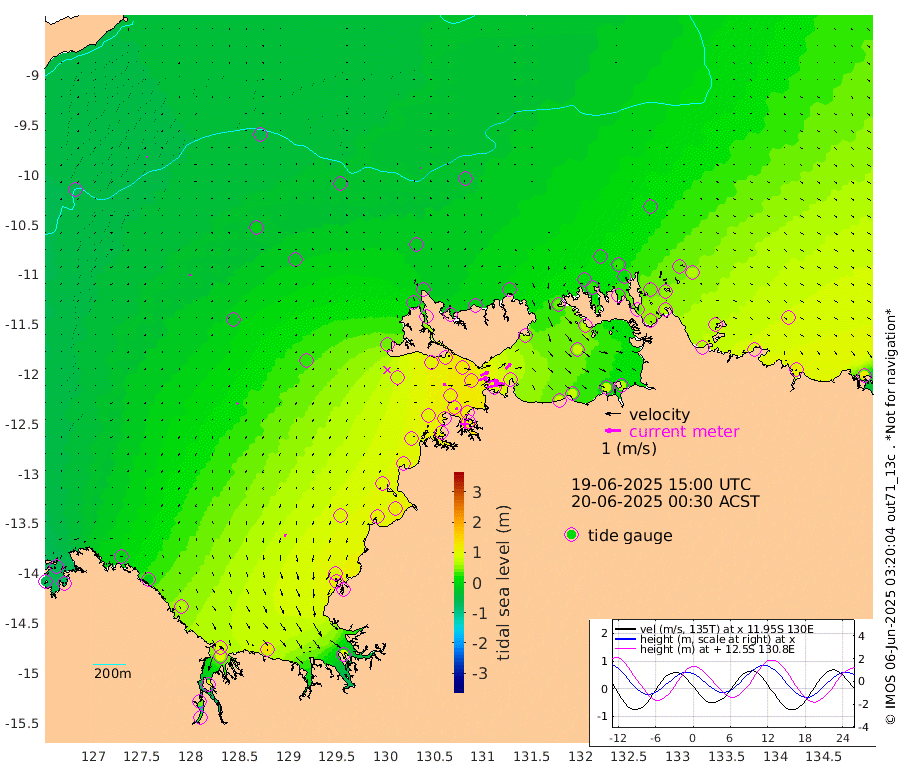 101cm/s 78T +4cm/s rms + 6cm/s 51T. Darwin_C1 52m 58cm/s 91T +4cm/s rms + 7cm/s -161T. Darwin_CW1 22m 58cm/s 73T +4cm/s rms + 8cm/s 61T. Darwin_CW2 34m 49cm/s 47T +3cm/s rms + 9cm/s 98T. Darwin_CW3 22m 83cm/s 88T +5cm/s rms + 7cm/s 88T. Darwin_C3 56m 57cm/s 65T +2cm/s rms + 9cm/s -126T. Darwin_CTbW 22m 1cm/s 109T +9cm/s rms + 2cm/s -110T. NWSLYN 196m 19cm/s 83T +1cm/s rms + 1cm/s -47T. DARBGF 30m 6cm/s -125T +7cm/s rms + 2cm/s -137T. ITFTIS 464m 10cm/s -144T +9cm/s rms + 1cm/s 74T. ITFMHB 146m 14cm/s -174T +4cm/s rms + 1cm/s -134T. ITFJBG 61m 9cm/s -158T +6cm/s rms + 4cm/s 121T. ITFFTB 108m 14cm/s 103T +4cm/s rms + 3cm/s 80T. NRSDAR 19m -61cm Carronade Island -57cm Guy Point -70cm Napier Broome Bay -9cm Lesueur Island 60cm Reveley Island -6cm Rocky Island 94cm Cape Domett 80cm Lacrosse Island 91cm Adolphus Island 38cm Pender Point 23cm Wyndham -13cm The Boxers -3cm Unnamed Shoal -53cm Loxton Shoal 126cm Pelican Island -20cm Calder Shoal -28cm Evans Shoal 98cm Quoin Island 117cm Port Keats 118cm Jones Point 87cm Catfish Island 92cm Cape Scott Offshore 102cm Cape Ford 109cm Anson Bay -14cm Goodrich Bank 94cm Peron Island North 101cm Point Jenny 97cm Native Point 98cm Fish Reef 113cm Tapa Bay 41cm Point Fawcett (Offshore) 111cm Burge Point 101cm Munkunuwa 74cm Beagle A 121cm Parsons Bank 106cm Fenton Patches -25cm Lynedoch Bank 124cm Hancox Shoal Area 122cm Nightcliff 121cm Darwin 109cm Charles Point Patches 89cm Glyde Point 81cm Chambers Bay 69cm Point Stuart 79cm Cape Hotham 73cm Christine Reef 72cm West Alligator Head 57cm East Field Island 65cm Two Hills Bay 24cm Newby Shoal 57cm Camp Point 99cm Medina Inlet South 28cm South Barlow Point 12cm St. Asaph Bay -10cm Cape Van Dieman -10cm Snake Bay -4cm Cache Point -66cm Echo Shoal 8cm Point Jahleel (Off) 41cm Cape Don 20cm Port Essington 25cm Smith Point - West 23cm NW Peacock Island 5cm North Of Jones Shoal 4cm Peacock Island 45cm Point David 30cm D'urville Point 18cm Money Shoal 49cm Copeland Island 59cm Cape Cockburn 38cm One Tree Point 64cm Hogmany Shoal 37cm New Year Island - West 46cm Grant Island 59cm Aurari Bay 80cm Cuthbert Point 64cm North Goulburn Island 80cm Paxie Shoal 102cm Entrance Island 123cm Yabooma Island