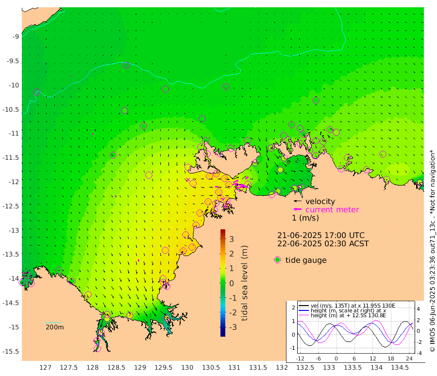 121cm/s 78T +4cm/s rms + 6cm/s 51T. Darwin_C1 52m 84cm/s 89T +4cm/s rms + 7cm/s -161T. Darwin_CW1 22m 75cm/s 74T +4cm/s rms + 8cm/s 61T. Darwin_CW2 34m 48cm/s 51T +3cm/s rms + 9cm/s 98T. Darwin_CW3 22m 104cm/s 88T +5cm/s rms + 7cm/s 88T. Darwin_C3 56m 73cm/s 65T +2cm/s rms + 9cm/s -126T. Darwin_CTbW 22m 2cm/s 117T +9cm/s rms + 2cm/s -110T. NWSLYN 196m 42cm/s 87T +1cm/s rms + 1cm/s -47T. DARBGF 30m 4cm/s -155T +7cm/s rms + 2cm/s -137T. ITFTIS 464m 18cm/s -173T +9cm/s rms + 1cm/s 74T. ITFMHB 146m 26cm/s 168T +4cm/s rms + 1cm/s -134T. ITFJBG 61m 21cm/s 154T +6cm/s rms + 4cm/s 121T. ITFFTB 108m 38cm/s 114T +4cm/s rms + 3cm/s 80T. NRSDAR 19m -39cm Carronade Island -35cm Guy Point -45cm Napier Broome Bay 13cm Lesueur Island 81cm Reveley Island 19cm Rocky Island 106cm Cape Domett 100cm Lacrosse Island 83cm Adolphus Island 17cm Pender Point -6cm Wyndham 22cm The Boxers 24cm Unnamed Shoal -23cm Loxton Shoal 134cm Pelican Island 22cm Calder Shoal 1cm Evans Shoal 81cm Quoin Island 142cm Port Keats 141cm Jones Point 71cm Catfish Island 134cm Cape Scott Offshore 171cm Cape Ford 151cm Anson Bay 12cm Goodrich Bank 137cm Peron Island North 151cm Point Jenny 147cm Native Point 148cm Fish Reef 158cm Tapa Bay 91cm Point Fawcett (Offshore) 159cm Burge Point 150cm Munkunuwa 127cm Beagle A 156cm Parsons Bank 154cm Fenton Patches -5cm Lynedoch Bank 154cm Hancox Shoal Area 164cm Nightcliff 156cm Darwin 149cm Charles Point Patches 104cm Glyde Point 73cm Chambers Bay 55cm Point Stuart 84cm Cape Hotham 70cm Christine Reef 57cm West Alligator Head 32cm East Field Island 62cm Two Hills Bay 75cm Newby Shoal 54cm Camp Point 146cm Medina Inlet South 69cm South Barlow Point 53cm St. Asaph Bay 18cm Cape Van Dieman 15cm Snake Bay 23cm Cache Point -35cm Echo Shoal 29cm Point Jahleel (Off) 54cm Cape Don 33cm Port Essington 39cm Smith Point - West 32cm NW Peacock Island 22cm North Of Jones Shoal 9cm Peacock Island 36cm Point David 38cm D'urville Point 21cm Money Shoal 39cm Copeland Island 52cm Cape Cockburn 35cm One Tree Point 49cm Hogmany Shoal 31cm New Year Island - West 37cm Grant Island 42cm Aurari Bay 54cm Cuthbert Point 47cm North Goulburn Island 51cm Paxie Shoal 65cm Entrance Island 72cm Yabooma Island