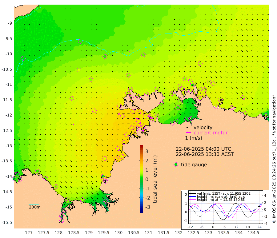 73cm/s 78T +4cm/s rms + 6cm/s 51T. Darwin_C1 52m 31cm/s 85T +4cm/s rms + 7cm/s -161T. Darwin_CW1 22m 48cm/s 74T +4cm/s rms + 8cm/s 61T. Darwin_CW2 34m 17cm/s 59T +3cm/s rms + 9cm/s 98T. Darwin_CW3 22m 57cm/s 88T +5cm/s rms + 7cm/s 88T. Darwin_C3 56m 56cm/s 63T +2cm/s rms + 9cm/s -126T. Darwin_CTbW 22m 2cm/s 98T +9cm/s rms + 2cm/s -110T. NWSLYN 196m 39cm/s 90T +1cm/s rms + 1cm/s -47T. DARBGF 30m 6cm/s 10T +7cm/s rms + 2cm/s -137T. ITFTIS 464m 3cm/s 74T +9cm/s rms + 1cm/s 74T. ITFMHB 146m 23cm/s 155T +4cm/s rms + 1cm/s -134T. ITFJBG 61m 17cm/s 129T +6cm/s rms + 4cm/s 121T. ITFFTB 108m 37cm/s 120T +4cm/s rms + 3cm/s 80T. NRSDAR 19m -21cm Carronade Island -33cm Guy Point -17cm Napier Broome Bay 30cm Lesueur Island 46cm Reveley Island 44cm Rocky Island 48cm Cape Domett 47cm Lacrosse Island 17cm Adolphus Island -40cm Pender Point -59cm Wyndham 63cm The Boxers 97cm Unnamed Shoal 23cm Loxton Shoal 59cm Pelican Island 56cm Calder Shoal 33cm Evans Shoal -8cm Quoin Island 94cm Port Keats 97cm Jones Point -9cm Catfish Island 97cm Cape Scott Offshore 145cm Cape Ford 112cm Anson Bay 53cm Goodrich Bank 116cm Peron Island North 117cm Point Jenny 120cm Native Point 126cm Fish Reef 123cm Tapa Bay 94cm Point Fawcett (Offshore) 129cm Burge Point 120cm Munkunuwa 118cm Beagle A 128cm Parsons Bank 128cm Fenton Patches 42cm Lynedoch Bank 111cm Hancox Shoal Area 118cm Nightcliff 129cm Darwin 125cm Charles Point Patches 81cm Glyde Point 26cm Chambers Bay 23cm Point Stuart 61cm Cape Hotham 26cm Christine Reef 16cm West Alligator Head -6cm East Field Island 45cm Two Hills Bay 104cm Newby Shoal 38cm Camp Point 124cm Medina Inlet South 93cm South Barlow Point 73cm St. Asaph Bay 59cm Cape Van Dieman 67cm Snake Bay 59cm Cache Point 3cm Echo Shoal 59cm Point Jahleel (Off) 67cm Cape Don 66cm Port Essington 68cm Smith Point - West 66cm NW Peacock Island 54cm North Of Jones Shoal 20cm Peacock Island 72cm Point David 72cm D'urville Point 58cm Money Shoal 69cm Copeland Island 92cm Cape Cockburn 69cm One Tree Point 82cm Hogmany Shoal 73cm New Year Island - West 75cm Grant Island 72cm Aurari Bay 73cm Cuthbert Point 75cm North Goulburn Island 58cm Paxie Shoal 67cm Entrance Island 50cm Yabooma Island