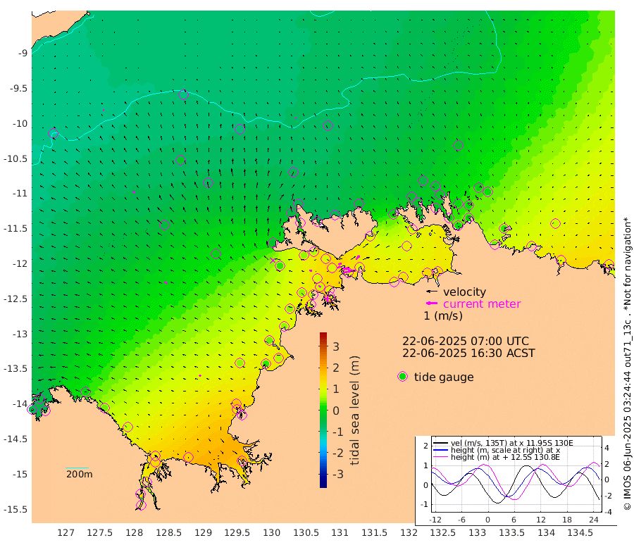 64cm/s 78T +4cm/s rms + 6cm/s 51T. Darwin_C1 52m 59cm/s 92T +4cm/s rms + 7cm/s -161T. Darwin_CW1 22m 33cm/s 71T +4cm/s rms + 8cm/s 61T. Darwin_CW2 34m 50cm/s 40T +3cm/s rms + 9cm/s 98T. Darwin_CW3 22m 63cm/s 90T +5cm/s rms + 7cm/s 88T. Darwin_C3 56m 29cm/s 65T +2cm/s rms + 9cm/s -126T. Darwin_CTbW 22m 9cm/s -26T +9cm/s rms + 2cm/s -110T. NWSLYN 196m 22cm/s -78T +1cm/s rms + 1cm/s -47T. DARBGF 30m 8cm/s -71T +7cm/s rms + 2cm/s -137T. ITFTIS 464m 19cm/s -28T +9cm/s rms + 1cm/s 74T. ITFMHB 146m 16cm/s -60T +4cm/s rms + 1cm/s -134T. ITFJBG 61m 29cm/s -57T +6cm/s rms + 4cm/s 121T. ITFFTB 108m 25cm/s -47T +4cm/s rms + 3cm/s 80T. NRSDAR 19m -53cm Carronade Island -60cm Guy Point -49cm Napier Broome Bay 8cm Lesueur Island 78cm Reveley Island 36cm Rocky Island 141cm Cape Domett 122cm Lacrosse Island 156cm Adolphus Island 155cm Pender Point 159cm Wyndham -46cm The Boxers -11cm Unnamed Shoal -95cm Loxton Shoal 147cm Pelican Island -69cm Calder Shoal -85cm Evans Shoal 203cm Quoin Island 123cm Port Keats 132cm Jones Point 173cm Catfish Island 53cm Cape Scott Offshore 23cm Cape Ford 67cm Anson Bay -66cm Goodrich Bank 45cm Peron Island North 46cm Point Jenny 47cm Native Point 55cm Fish Reef 65cm Tapa Bay -30cm Point Fawcett (Offshore) 86cm Burge Point 53cm Munkunuwa 29cm Beagle A 86cm Parsons Bank 81cm Fenton Patches -63cm Lynedoch Bank 90cm Hancox Shoal Area 90cm Nightcliff 102cm Darwin 70cm Charles Point Patches 101cm Glyde Point 110cm Chambers Bay 127cm Point Stuart 97cm Cape Hotham 101cm Christine Reef 140cm West Alligator Head 152cm East Field Island 89cm Two Hills Bay -5cm Newby Shoal 92cm Camp Point 60cm Medina Inlet South -33cm South Barlow Point -55cm St. Asaph Bay -65cm Cape Van Dieman -59cm Snake Bay -61cm Cache Point -105cm Echo Shoal -39cm Point Jahleel (Off) 11cm Cape Don -29cm Port Essington -32cm Smith Point - West -28cm NW Peacock Island -51cm North Of Jones Shoal -15cm Peacock Island 10cm Point David -24cm D'urville Point -23cm Money Shoal 15cm Copeland Island 14cm Cape Cockburn 1cm One Tree Point 17cm Hogmany Shoal 10cm New Year Island - West 13cm Grant Island 43cm Aurari Bay 62cm Cuthbert Point 33cm North Goulburn Island 79cm Paxie Shoal 99cm Entrance Island 131cm Yabooma Island