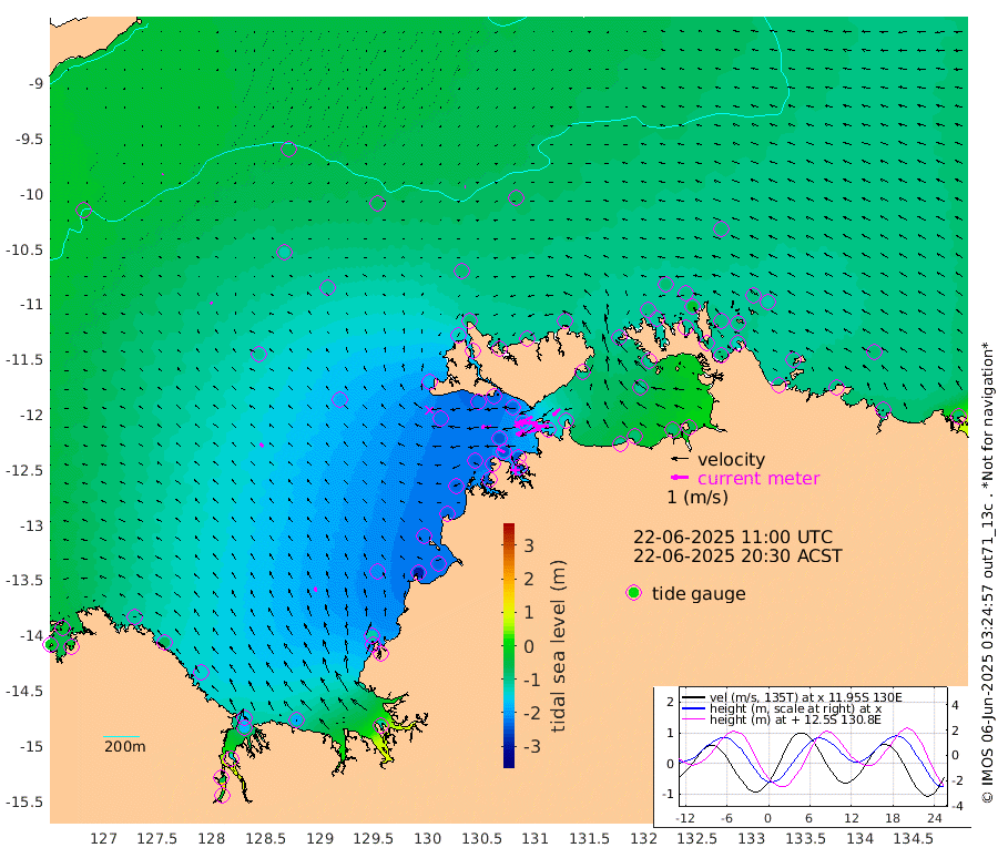 150cm/s -102T +4cm/s rms + 6cm/s 51T. Darwin_C1 52m 98cm/s -90T +4cm/s rms + 7cm/s -161T. Darwin_CW1 22m 96cm/s -107T +4cm/s rms + 8cm/s 61T. Darwin_CW2 34m 57cm/s -130T +3cm/s rms + 9cm/s 98T. Darwin_CW3 22m 130cm/s -91T +5cm/s rms + 7cm/s 88T. Darwin_C3 56m 97cm/s -116T +2cm/s rms + 9cm/s -126T. Darwin_CTbW 22m 5cm/s -90T +9cm/s rms + 2cm/s -110T. NWSLYN 196m 59cm/s -93T +1cm/s rms + 1cm/s -47T. DARBGF 30m 4cm/s -171T +7cm/s rms + 2cm/s -137T. ITFTIS 464m 11cm/s -15T +9cm/s rms + 1cm/s 74T. ITFMHB 146m 29cm/s -17T +4cm/s rms + 1cm/s -134T. ITFJBG 61m 24cm/s -45T +6cm/s rms + 4cm/s 121T. ITFFTB 108m 49cm/s -62T +4cm/s rms + 3cm/s 80T. NRSDAR 19m -24cm Carronade Island -21cm Guy Point -22cm Napier Broome Bay -102cm Lesueur Island -144cm Reveley Island -76cm Rocky Island -170cm Cape Domett -168cm Lacrosse Island -141cm Adolphus Island -51cm Pender Point -30cm Wyndham -109cm The Boxers -120cm Unnamed Shoal -47cm Loxton Shoal -189cm Pelican Island -103cm Calder Shoal -63cm Evans Shoal -124cm Quoin Island -219cm Port Keats -210cm Jones Point -115cm Catfish Island -206cm Cape Scott Offshore -284cm Cape Ford -226cm Anson Bay -81cm Goodrich Bank -221cm Peron Island North -230cm Point Jenny -228cm Native Point -236cm Fish Reef -239cm Tapa Bay -172cm Point Fawcett (Offshore) -247cm Burge Point -219cm Munkunuwa -221cm Beagle A -232cm Parsons Bank -245cm Fenton Patches -60cm Lynedoch Bank -223cm Hancox Shoal Area -241cm Nightcliff -244cm Darwin -241cm Charles Point Patches -169cm Glyde Point -106cm Chambers Bay -89cm Point Stuart -138cm Cape Hotham -105cm Christine Reef -86cm West Alligator Head -58cm East Field Island -108cm Two Hills Bay -187cm Newby Shoal -102cm Camp Point -230cm Medina Inlet South -150cm South Barlow Point -128cm St. Asaph Bay -88cm Cape Van Dieman -91cm Snake Bay -95cm Cache Point -29cm Echo Shoal -96cm Point Jahleel (Off) -115cm Cape Don -97cm Port Essington -104cm Smith Point - West -96cm NW Peacock Island -85cm North Of Jones Shoal -31cm Peacock Island -91cm Point David -103cm D'urville Point -82cm Money Shoal -90cm Copeland Island -125cm Cape Cockburn -93cm One Tree Point -114cm Hogmany Shoal -95cm New Year Island - West -98cm Grant Island -93cm Aurari Bay -100cm Cuthbert Point -100cm North Goulburn Island -86cm Paxie Shoal -97cm Entrance Island -84cm Yabooma Island