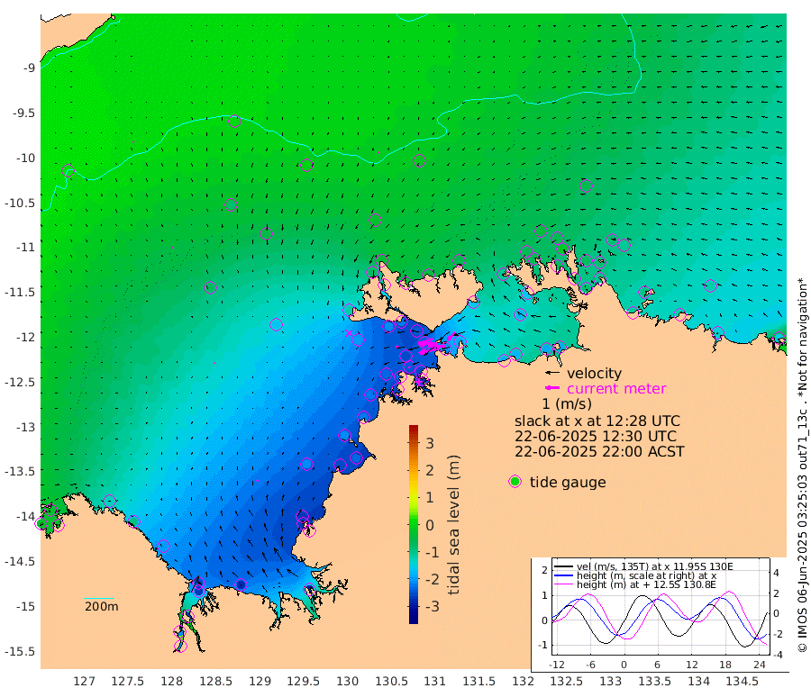 153cm/s -102T +4cm/s rms + 6cm/s 51T. Darwin_C1 52m 125cm/s -90T +4cm/s rms + 7cm/s -161T. Darwin_CW1 22m 87cm/s -106T +4cm/s rms + 8cm/s 61T. Darwin_CW2 34m 77cm/s -136T +3cm/s rms + 9cm/s 98T. Darwin_CW3 22m 137cm/s -90T +5cm/s rms + 7cm/s 88T. Darwin_C3 56m 91cm/s -115T +2cm/s rms + 9cm/s -126T. Darwin_CTbW 22m 7cm/s -166T +9cm/s rms + 2cm/s -110T. NWSLYN 196m 25cm/s -105T +1cm/s rms + 1cm/s -47T. DARBGF 30m 8cm/s 145T +7cm/s rms + 2cm/s -137T. ITFTIS 464m 5cm/s 149T +9cm/s rms + 1cm/s 74T. ITFMHB 146m 9cm/s 31T +4cm/s rms + 1cm/s -134T. ITFJBG 61m 6cm/s 113T +6cm/s rms + 4cm/s 121T. ITFFTB 108m 14cm/s -83T +4cm/s rms + 3cm/s 80T. NRSDAR 19m -30cm Carronade Island -27cm Guy Point -30cm Napier Broome Bay -129cm Lesueur Island -196cm Reveley Island -95cm Rocky Island -265cm Cape Domett -252cm Lacrosse Island -267cm Adolphus Island -204cm Pender Point -200cm Wyndham -74cm The Boxers -89cm Unnamed Shoal 2cm Loxton Shoal -277cm Pelican Island -53cm Calder Shoal -9cm Evans Shoal -292cm Quoin Island -275cm Port Keats -267cm Jones Point -264cm Catfish Island -208cm Cape Scott Offshore -251cm Cape Ford -228cm Anson Bay -31cm Goodrich Bank -210cm Peron Island North -217cm Point Jenny -214cm Native Point -226cm Fish Reef -235cm Tapa Bay -122cm Point Fawcett (Offshore) -257cm Burge Point -203cm Munkunuwa -201cm Beagle A -239cm Parsons Bank -255cm Fenton Patches -18cm Lynedoch Bank -242cm Hancox Shoal Area -257cm Nightcliff -266cm Darwin -246cm Charles Point Patches -214cm Glyde Point -183cm Chambers Bay -179cm Point Stuart -189cm Cape Hotham -177cm Christine Reef -189cm West Alligator Head -183cm East Field Island -163cm Two Hills Bay -162cm Newby Shoal -164cm Camp Point -224cm Medina Inlet South -100cm South Barlow Point -73cm St. Asaph Bay -35cm Cape Van Dieman -40cm Snake Bay -45cm Cache Point 17cm Echo Shoal -60cm Point Jahleel (Off) -107cm Cape Don -64cm Port Essington -67cm Smith Point - West -63cm NW Peacock Island -44cm North Of Jones Shoal -17cm Peacock Island -79cm Point David -69cm D'urville Point -57cm Money Shoal -80cm Copeland Island -110cm Cape Cockburn -77cm One Tree Point -106cm Hogmany Shoal -86cm New Year Island - West -88cm Grant Island -101cm Aurari Bay -121cm Cuthbert Point -101cm North Goulburn Island -122cm Paxie Shoal -143cm Entrance Island -155cm Yabooma Island