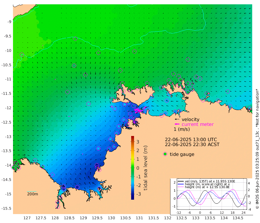 138cm/s -102T +4cm/s rms + 6cm/s 51T. Darwin_C1 52m 122cm/s -91T +4cm/s rms + 7cm/s -161T. Darwin_CW1 22m 73cm/s -106T +4cm/s rms + 8cm/s 61T. Darwin_CW2 34m 77cm/s -138T +3cm/s rms + 9cm/s 98T. Darwin_CW3 22m 125cm/s -90T +5cm/s rms + 7cm/s 88T. Darwin_C3 56m 79cm/s -115T +2cm/s rms + 9cm/s -126T. Darwin_CTbW 22m 8cm/s -175T +9cm/s rms + 2cm/s -110T. NWSLYN 196m 11cm/s -128T +1cm/s rms + 1cm/s -47T. DARBGF 30m 9cm/s 139T +7cm/s rms + 2cm/s -137T. ITFTIS 464m 11cm/s 157T +9cm/s rms + 1cm/s 74T. ITFMHB 146m 9cm/s 91T +4cm/s rms + 1cm/s -134T. ITFJBG 61m 16cm/s 127T +6cm/s rms + 4cm/s 121T. ITFFTB 108m 6cm/s -165T +4cm/s rms + 3cm/s 80T. NRSDAR 19m -35cm Carronade Island -32cm Guy Point -35cm Napier Broome Bay -131cm Lesueur Island -197cm Reveley Island -94cm Rocky Island -275cm Cape Domett -260cm Lacrosse Island -290cm Adolphus Island -242cm Pender Point -246cm Wyndham -58cm The Boxers -72cm Unnamed Shoal 15cm Loxton Shoal -283cm Pelican Island -34cm Calder Shoal 7cm Evans Shoal -326cm Quoin Island -270cm Port Keats -262cm Jones Point -295cm Catfish Island -190cm Cape Scott Offshore -217cm Cape Ford -207cm Anson Bay -13cm Goodrich Bank -187cm Peron Island North -192cm Point Jenny -190cm Native Point -201cm Fish Reef -212cm Tapa Bay -95cm Point Fawcett (Offshore) -236cm Burge Point -177cm Munkunuwa -176cm Beagle A -218cm Parsons Bank -235cm Fenton Patches -4cm Lynedoch Bank -225cm Hancox Shoal Area -238cm Nightcliff -249cm Darwin -225cm Charles Point Patches -210cm Glyde Point -194cm Chambers Bay -195cm Point Stuart -190cm Cape Hotham -186cm Christine Reef -209cm West Alligator Head -212cm East Field Island -168cm Two Hills Bay -141cm Newby Shoal -172cm Camp Point -201cm Medina Inlet South -75cm South Barlow Point -49cm St. Asaph Bay -15cm Cape Van Dieman -21cm Snake Bay -26cm Cache Point 27cm Echo Shoal -44cm Point Jahleel (Off) -96cm Cape Don -48cm Port Essington -49cm Smith Point - West -48cm NW Peacock Island -27cm North Of Jones Shoal -11cm Peacock Island -68cm Point David -53cm D'urville Point -45cm Money Shoal -71cm Copeland Island -96cm Cape Cockburn -65cm One Tree Point -95cm Hogmany Shoal -76cm New Year Island - West -78cm Grant Island -96cm Aurari Bay -118cm Cuthbert Point -93cm North Goulburn Island -124cm Paxie Shoal -146cm Entrance Island -165cm Yabooma Island