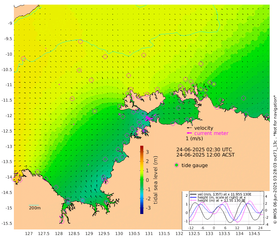 116cm/s -101T +4cm/s rms + 6cm/s 51T. Darwin_C1 52m 106cm/s -90T +4cm/s rms + 7cm/s -161T. Darwin_CW1 22m 51cm/s -108T +4cm/s rms + 8cm/s 61T. Darwin_CW2 34m 58cm/s -134T +3cm/s rms + 9cm/s 98T. Darwin_CW3 22m 80cm/s -91T +5cm/s rms + 7cm/s 88T. Darwin_C3 56m 62cm/s -115T +2cm/s rms + 9cm/s -126T. Darwin_CTbW 22m 9cm/s 140T +9cm/s rms + 2cm/s -110T. NWSLYN 196m 5cm/s -132T +1cm/s rms + 1cm/s -47T. DARBGF 30m 10cm/s 42T +7cm/s rms + 2cm/s -137T. ITFTIS 464m 12cm/s 54T +9cm/s rms + 1cm/s 74T. ITFMHB 146m 13cm/s 26T +4cm/s rms + 1cm/s -134T. ITFJBG 61m 15cm/s 72T +6cm/s rms + 4cm/s 121T. ITFFTB 108m 6cm/s -128T +4cm/s rms + 3cm/s 80T. NRSDAR 19m 119cm Carronade Island 118cm Guy Point 125cm Napier Broome Bay 59cm Lesueur Island -49cm Reveley Island -9cm Rocky Island -97cm Cape Domett -81cm Lacrosse Island -98cm Adolphus Island -67cm Pender Point -46cm Wyndham 80cm The Boxers 64cm Unnamed Shoal 119cm Loxton Shoal -123cm Pelican Island 87cm Calder Shoal 96cm Evans Shoal -136cm Quoin Island -105cm Port Keats -115cm Jones Point -82cm Catfish Island -56cm Cape Scott Offshore -47cm Cape Ford -71cm Anson Bay 84cm Goodrich Bank -49cm Peron Island North -54cm Point Jenny -52cm Native Point -60cm Fish Reef -72cm Tapa Bay 25cm Point Fawcett (Offshore) -83cm Burge Point -78cm Munkunuwa -27cm Beagle A -88cm Parsons Bank -76cm Fenton Patches 89cm Lynedoch Bank -88cm Hancox Shoal Area -92cm Nightcliff -92cm Darwin -63cm Charles Point Patches -68cm Glyde Point -62cm Chambers Bay -67cm Point Stuart -60cm Cape Hotham -56cm Christine Reef -79cm West Alligator Head -73cm East Field Island -43cm Two Hills Bay 41cm Newby Shoal -39cm Camp Point -65cm Medina Inlet South 35cm South Barlow Point 54cm St. Asaph Bay 80cm Cape Van Dieman 81cm Snake Bay 80cm Cache Point 129cm Echo Shoal 58cm Point Jahleel (Off) 18cm Cape Don 54cm Port Essington 53cm Smith Point - West 56cm NW Peacock Island 72cm North Of Jones Shoal 23cm Peacock Island 31cm Point David 51cm D'urville Point 61cm Money Shoal 25cm Copeland Island 38cm Cape Cockburn 39cm One Tree Point 36cm Hogmany Shoal 41cm New Year Island - West 34cm Grant Island 8cm Aurari Bay -4cm Cuthbert Point 16cm North Goulburn Island -17cm Paxie Shoal -33cm Entrance Island -61cm Yabooma Island
