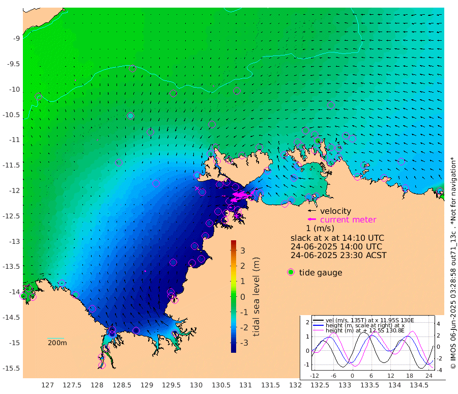 228cm/s -102T +4cm/s rms + 6cm/s 51T. Darwin_C1 52m 185cm/s -90T +4cm/s rms + 7cm/s -161T. Darwin_CW1 22m 117cm/s -106T +4cm/s rms + 8cm/s 61T. Darwin_CW2 34m 108cm/s -135T +3cm/s rms + 9cm/s 98T. Darwin_CW3 22m 179cm/s -90T +5cm/s rms + 7cm/s 88T. Darwin_C3 56m 133cm/s -115T +2cm/s rms + 9cm/s -126T. Darwin_CTbW 22m 6cm/s -123T +9cm/s rms + 2cm/s -110T. NWSLYN 196m 44cm/s -100T +1cm/s rms + 1cm/s -47T. DARBGF 30m 11cm/s 159T +7cm/s rms + 2cm/s -137T. ITFTIS 464m 6cm/s 162T +9cm/s rms + 1cm/s 74T. ITFMHB 146m 15cm/s 5T +4cm/s rms + 1cm/s -134T. ITFJBG 61m 2cm/s 84T +6cm/s rms + 4cm/s 121T. ITFFTB 108m 30cm/s -74T +4cm/s rms + 3cm/s 80T. NRSDAR 19m -20cm Carronade Island -17cm Guy Point -23cm Napier Broome Bay -144cm Lesueur Island -232cm Reveley Island -110cm Rocky Island -313cm Cape Domett -295cm Lacrosse Island -302cm Adolphus Island -220cm Pender Point -202cm Wyndham -104cm The Boxers -124cm Unnamed Shoal -14cm Loxton Shoal -331cm Pelican Island -80cm Calder Shoal -29cm Evans Shoal -333cm Quoin Island -346cm Port Keats -332cm Jones Point -286cm Catfish Island -271cm Cape Scott Offshore -341cm Cape Ford -299cm Anson Bay -56cm Goodrich Bank -277cm Peron Island North -281cm Point Jenny -279cm Native Point -295cm Fish Reef -306cm Tapa Bay -175cm Point Fawcett (Offshore) -332cm Burge Point -274cm Munkunuwa -257cm Beagle A -312cm Parsons Bank -320cm Fenton Patches -38cm Lynedoch Bank -307cm Hancox Shoal Area -324cm Nightcliff -346cm Darwin -325cm Charles Point Patches -261cm Glyde Point -200cm Chambers Bay -195cm Point Stuart -224cm Cape Hotham -194cm Christine Reef -202cm West Alligator Head -185cm East Field Island -187cm Two Hills Bay -210cm Newby Shoal -190cm Camp Point -299cm Medina Inlet South -147cm South Barlow Point -112cm St. Asaph Bay -61cm Cape Van Dieman -69cm Snake Bay -72cm Cache Point 14cm Echo Shoal -86cm Point Jahleel (Off) -141cm Cape Don -96cm Port Essington -95cm Smith Point - West -90cm NW Peacock Island -71cm North Of Jones Shoal -27cm Peacock Island -108cm Point David -98cm D'urville Point -84cm Money Shoal -108cm Copeland Island -148cm Cape Cockburn -108cm One Tree Point -140cm Hogmany Shoal -113cm New Year Island - West -118cm Grant Island -127cm Aurari Bay -149cm Cuthbert Point -132cm North Goulburn Island -154cm Paxie Shoal -163cm Entrance Island -171cm Yabooma Island