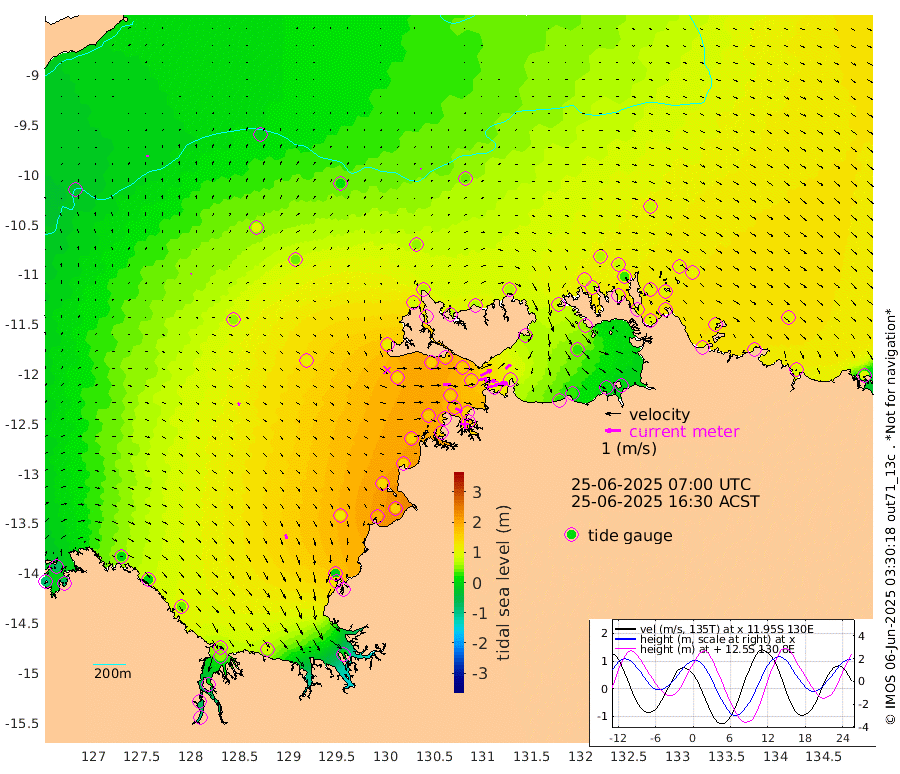 128cm/s 78T +4cm/s rms + 6cm/s 51T. Darwin_C1 52m 81cm/s 85T +4cm/s rms + 7cm/s -161T. Darwin_CW1 22m 54cm/s 76T +4cm/s rms + 8cm/s 61T. Darwin_CW2 34m 44cm/s 52T +3cm/s rms + 9cm/s 98T. Darwin_CW3 22m 64cm/s 88T +5cm/s rms + 7cm/s 88T. Darwin_C3 56m 82cm/s 63T +2cm/s rms + 9cm/s -126T. Darwin_CTbW 22m 5cm/s 120T +9cm/s rms + 2cm/s -110T. NWSLYN 196m 48cm/s 90T +1cm/s rms + 1cm/s -47T. DARBGF 30m 9cm/s 1T +7cm/s rms + 2cm/s -137T. ITFTIS 464m 6cm/s 27T +9cm/s rms + 1cm/s 74T. ITFMHB 146m 29cm/s 156T +4cm/s rms + 1cm/s -134T. ITFJBG 61m 19cm/s 126T +6cm/s rms + 4cm/s 121T. ITFFTB 108m 46cm/s 118T +4cm/s rms + 3cm/s 80T. NRSDAR 19m -71cm Carronade Island -83cm Guy Point -70cm Napier Broome Bay 6cm Lesueur Island 41cm Reveley Island 5cm Rocky Island 51cm Cape Domett 48cm Lacrosse Island 12cm Adolphus Island -70cm Pender Point -96cm Wyndham 53cm The Boxers 100cm Unnamed Shoal -2cm Loxton Shoal 80cm Pelican Island 41cm Calder Shoal 19cm Evans Shoal -1cm Quoin Island 123cm Port Keats 130cm Jones Point -5cm Catfish Island 124cm Cape Scott Offshore 187cm Cape Ford 151cm Anson Bay 50cm Goodrich Bank 146cm Peron Island North 147cm Point Jenny 148cm Native Point 160cm Fish Reef 158cm Tapa Bay 110cm Point Fawcett (Offshore) 165cm Burge Point 151cm Munkunuwa 139cm Beagle A 167cm Parsons Bank 159cm Fenton Patches 36cm Lynedoch Bank 149cm Hancox Shoal Area 153cm Nightcliff 173cm Darwin 170cm Charles Point Patches 106cm Glyde Point 30cm Chambers Bay 29cm Point Stuart 79cm Cape Hotham 29cm Christine Reef 18cm West Alligator Head -11cm East Field Island 53cm Two Hills Bay 105cm Newby Shoal 51cm Camp Point 159cm Medina Inlet South 106cm South Barlow Point 79cm St. Asaph Bay 59cm Cape Van Dieman 67cm Snake Bay 58cm Cache Point -29cm Echo Shoal 60cm Point Jahleel (Off) 80cm Cape Don 80cm Port Essington 78cm Smith Point - West 78cm NW Peacock Island 62cm North Of Jones Shoal 25cm Peacock Island 97cm Point David 87cm D'urville Point 75cm Money Shoal 96cm Copeland Island 124cm Cape Cockburn 92cm One Tree Point 112cm Hogmany Shoal 94cm New Year Island - West 97cm Grant Island 104cm Aurari Bay 109cm Cuthbert Point 103cm North Goulburn Island 100cm Paxie Shoal 101cm Entrance Island 97cm Yabooma Island