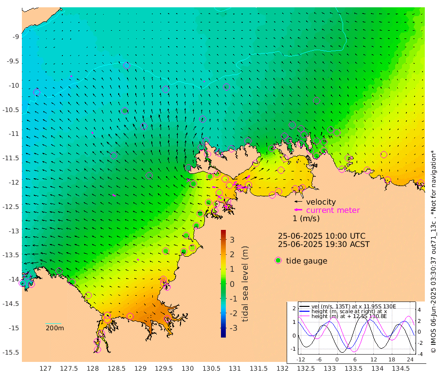 94cm/s 79T +4cm/s rms + 6cm/s 51T. Darwin_C1 52m 82cm/s 92T +4cm/s rms + 7cm/s -161T. Darwin_CW1 22m 35cm/s 65T +4cm/s rms + 8cm/s 61T. Darwin_CW2 34m 74cm/s 42T +3cm/s rms + 9cm/s 98T. Darwin_CW3 22m 59cm/s 90T +5cm/s rms + 7cm/s 88T. Darwin_C3 56m 40cm/s 64T +2cm/s rms + 9cm/s -126T. Darwin_CTbW 22m 12cm/s -28T +9cm/s rms + 2cm/s -110T. NWSLYN 196m 42cm/s -82T +1cm/s rms + 1cm/s -47T. DARBGF 30m 13cm/s -92T +7cm/s rms + 2cm/s -137T. ITFTIS 464m 25cm/s -37T +9cm/s rms + 1cm/s 74T. ITFMHB 146m 23cm/s -59T +4cm/s rms + 1cm/s -134T. ITFJBG 61m 44cm/s -60T +6cm/s rms + 4cm/s 121T. ITFFTB 108m 53cm/s -53T +4cm/s rms + 3cm/s 80T. NRSDAR 19m -108cm Carronade Island -113cm Guy Point -115cm Napier Broome Bay -31cm Lesueur Island 69cm Reveley Island 5cm Rocky Island 152cm Cape Domett 122cm Lacrosse Island 191cm Adolphus Island 182cm Pender Point 185cm Wyndham -99cm The Boxers -65cm Unnamed Shoal -147cm Loxton Shoal 172cm Pelican Island -126cm Calder Shoal -126cm Evans Shoal 254cm Quoin Island 130cm Port Keats 143cm Jones Point 208cm Catfish Island 31cm Cape Scott Offshore 4cm Cape Ford 47cm Anson Bay -105cm Goodrich Bank 26cm Peron Island North 16cm Point Jenny 15cm Native Point 32cm Fish Reef 43cm Tapa Bay -73cm Point Fawcett (Offshore) 66cm Burge Point 31cm Munkunuwa -9cm Beagle A 80cm Parsons Bank 60cm Fenton Patches -99cm Lynedoch Bank 87cm Hancox Shoal Area 73cm Nightcliff 97cm Darwin 58cm Charles Point Patches 104cm Glyde Point 130cm Chambers Bay 154cm Point Stuart 108cm Cape Hotham 115cm Christine Reef 171cm West Alligator Head 188cm East Field Island 102cm Two Hills Bay -60cm Newby Shoal 101cm Camp Point 38cm Medina Inlet South -72cm South Barlow Point -98cm St. Asaph Bay -105cm Cape Van Dieman -98cm Snake Bay -98cm Cache Point -158cm Echo Shoal -67cm Point Jahleel (Off) -1cm Cape Don -46cm Port Essington -51cm Smith Point - West -43cm NW Peacock Island -75cm North Of Jones Shoal -22cm Peacock Island 13cm Point David -37cm D'urville Point -35cm Money Shoal 21cm Copeland Island 19cm Cape Cockburn -1cm One Tree Point 28cm Hogmany Shoal 6cm New Year Island - West 15cm Grant Island 57cm Aurari Bay 88cm Cuthbert Point 47cm North Goulburn Island 106cm Paxie Shoal 137cm Entrance Island 190cm Yabooma Island