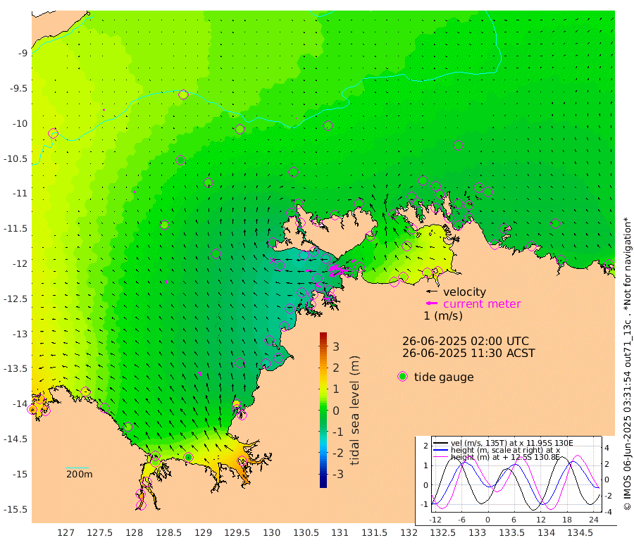 137cm/s -103T +4cm/s rms + 6cm/s 51T. Darwin_C1 52m 83cm/s -88T +4cm/s rms + 7cm/s -161T. Darwin_CW1 22m 72cm/s -109T +4cm/s rms + 8cm/s 61T. Darwin_CW2 34m 41cm/s -121T +3cm/s rms + 9cm/s 98T. Darwin_CW3 22m 67cm/s -92T +5cm/s rms + 7cm/s 88T. Darwin_C3 56m 82cm/s -116T +2cm/s rms + 9cm/s -126T. Darwin_CTbW 22m 4cm/s 104T +9cm/s rms + 2cm/s -110T. NWSLYN 196m 58cm/s -88T +1cm/s rms + 1cm/s -47T. DARBGF 30m 7cm/s 2T +7cm/s rms + 2cm/s -137T. ITFTIS 464m 17cm/s 8T +9cm/s rms + 1cm/s 74T. ITFMHB 146m 43cm/s -22T +4cm/s rms + 1cm/s -134T. ITFJBG 61m 33cm/s -31T +6cm/s rms + 4cm/s 121T. ITFFTB 108m 54cm/s -61T +4cm/s rms + 3cm/s 80T. NRSDAR 19m 178cm Carronade Island 188cm Guy Point 188cm Napier Broome Bay 112cm Lesueur Island 36cm Reveley Island 27cm Rocky Island 44cm Cape Domett 43cm Lacrosse Island 87cm Adolphus Island 185cm Pender Point 230cm Wyndham 37cm The Boxers -3cm Unnamed Shoal 74cm Loxton Shoal -2cm Pelican Island 33cm Calder Shoal 40cm Evans Shoal 107cm Quoin Island -40cm Port Keats -57cm Jones Point 135cm Catfish Island -58cm Cape Scott Offshore -103cm Cape Ford -84cm Anson Bay 16cm Goodrich Bank -78cm Peron Island North -83cm Point Jenny -82cm Native Point -94cm Fish Reef -92cm Tapa Bay -44cm Point Fawcett (Offshore) -90cm Burge Point -113cm Munkunuwa -70cm Beagle A -103cm Parsons Bank -89cm Fenton Patches 32cm Lynedoch Bank -83cm Hancox Shoal Area -89cm Nightcliff -91cm Darwin -82cm Charles Point Patches -26cm Glyde Point 48cm Chambers Bay 52cm Point Stuart -3cm Cape Hotham 47cm Christine Reef 62cm West Alligator Head 99cm East Field Island 25cm Two Hills Bay -1cm Newby Shoal 35cm Camp Point -93cm Medina Inlet South -43cm South Barlow Point -20cm St. Asaph Bay 6cm Cape Van Dieman 4cm Snake Bay 13cm Cache Point 96cm Echo Shoal 7cm Point Jahleel (Off) -2cm Cape Don -3cm Port Essington -8cm Smith Point - West -2cm NW Peacock Island 11cm North Of Jones Shoal 2cm Peacock Island -13cm Point David -12cm D'urville Point 11cm Money Shoal -15cm Copeland Island -15cm Cape Cockburn -6cm One Tree Point -2cm Hogmany Shoal -1cm New Year Island - West -6cm Grant Island -19cm Aurari Bay -12cm Cuthbert Point -10cm North Goulburn Island 2cm Paxie Shoal -4cm Entrance Island 0cm Yabooma Island