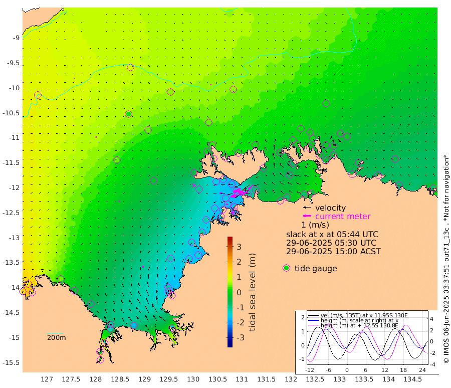 180cm/s -101T +4cm/s rms + 6cm/s 51T. Darwin_C1 52m 128cm/s -90T +4cm/s rms + 7cm/s -161T. Darwin_CW1 22m 82cm/s -106T +4cm/s rms + 8cm/s 61T. Darwin_CW2 34m 82cm/s -135T +3cm/s rms + 9cm/s 98T. Darwin_CW3 22m 117cm/s -91T +5cm/s rms + 7cm/s 88T. Darwin_C3 56m 98cm/s -115T +2cm/s rms + 9cm/s -126T. Darwin_CTbW 22m 9cm/s 145T +9cm/s rms + 2cm/s -110T. NWSLYN 196m 33cm/s -95T +1cm/s rms + 1cm/s -47T. DARBGF 30m 10cm/s 38T +7cm/s rms + 2cm/s -137T. ITFTIS 464m 15cm/s 35T +9cm/s rms + 1cm/s 74T. ITFMHB 146m 25cm/s 0T +4cm/s rms + 1cm/s -134T. ITFJBG 61m 15cm/s 26T +6cm/s rms + 4cm/s 121T. ITFFTB 108m 30cm/s -74T +4cm/s rms + 3cm/s 80T. NRSDAR 19m 134cm Carronade Island 139cm Guy Point 147cm Napier Broome Bay 37cm Lesueur Island -76cm Reveley Island -40cm Rocky Island -131cm Cape Domett -113cm Lacrosse Island -135cm Adolphus Island -40cm Pender Point -10cm Wyndham 34cm The Boxers 18cm Unnamed Shoal 86cm Loxton Shoal -170cm Pelican Island 40cm Calder Shoal 54cm Evans Shoal -160cm Quoin Island -171cm Port Keats -173cm Jones Point -123cm Catfish Island -122cm Cape Scott Offshore -131cm Cape Ford -144cm Anson Bay 36cm Goodrich Bank -133cm Peron Island North -123cm Point Jenny -120cm Native Point -144cm Fish Reef -144cm Tapa Bay -46cm Point Fawcett (Offshore) -157cm Burge Point -149cm Munkunuwa -103cm Beagle A -167cm Parsons Bank -153cm Fenton Patches 47cm Lynedoch Bank -158cm Hancox Shoal Area -165cm Nightcliff -175cm Darwin -150cm Charles Point Patches -117cm Glyde Point -82cm Chambers Bay -79cm Point Stuart -99cm Cape Hotham -70cm Christine Reef -85cm West Alligator Head -65cm East Field Island -74cm Two Hills Bay -28cm Newby Shoal -58cm Camp Point -146cm Medina Inlet South -36cm South Barlow Point -7cm St. Asaph Bay 31cm Cape Van Dieman 26cm Snake Bay 27cm Cache Point 103cm Echo Shoal 8cm Point Jahleel (Off) -33cm Cape Don -3cm Port Essington -8cm Smith Point - West -2cm NW Peacock Island 15cm North Of Jones Shoal 3cm Peacock Island -19cm Point David -11cm D'urville Point 10cm Money Shoal -25cm Copeland Island -35cm Cape Cockburn -17cm One Tree Point -21cm Hogmany Shoal -12cm New Year Island - West -20cm Grant Island -45cm Aurari Bay -55cm Cuthbert Point -40cm North Goulburn Island -45cm Paxie Shoal -69cm Entrance Island -85cm Yabooma Island