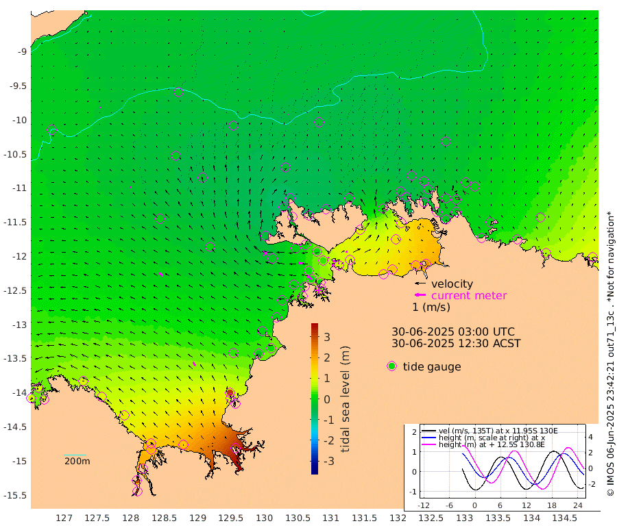 22cm/s -103T +4cm/s rms + 6cm/s 51T. Darwin_C1 52m 10cm/s -85T +4cm/s rms + 7cm/s -161T. Darwin_CW1 22m 5cm/s -132T +4cm/s rms + 8cm/s 61T. Darwin_CW2 34m 16cm/s 20T +3cm/s rms + 9cm/s 98T. Darwin_CW3 22m 21cm/s 98T +5cm/s rms + 7cm/s 88T. Darwin_C3 56m 13cm/s -121T +2cm/s rms + 9cm/s -126T. Darwin_CTbW 22m 6cm/s -18T +9cm/s rms + 2cm/s -110T. NWSLYN 196m 50cm/s -83T +1cm/s rms + 1cm/s -47T. DARBGF 30m 7cm/s -69T +7cm/s rms + 2cm/s -137T. ITFTIS 464m 15cm/s -28T +9cm/s rms + 1cm/s 74T. ITFMHB 146m 39cm/s -35T +4cm/s rms + 1cm/s -134T. ITFJBG 61m 40cm/s -51T +6cm/s rms + 4cm/s 121T. ITFFTB 108m 53cm/s -53T +4cm/s rms + 3cm/s 80T. NRSDAR 19m 94cm Carronade Island 97cm Guy Point 107cm Napier Broome Bay 98cm Lesueur Island 121cm Reveley Island 97cm Rocky Island 187cm Cape Domett 166cm Lacrosse Island 227cm Adolphus Island 303cm Pender Point 331cm Wyndham -4cm The Boxers -19cm Unnamed Shoal -20cm Loxton Shoal 158cm Pelican Island -25cm Calder Shoal -34cm Evans Shoal 286cm Quoin Island 98cm Port Keats 101cm Jones Point 305cm Catfish Island 24cm Cape Scott Offshore -12cm Cape Ford 12cm Anson Bay -44cm Goodrich Bank 6cm Peron Island North -1cm Point Jenny -2cm Native Point 3cm Fish Reef 7cm Tapa Bay -40cm Point Fawcett (Offshore) 25cm Burge Point -11cm Munkunuwa -12cm Beagle A 16cm Parsons Bank 20cm Fenton Patches -33cm Lynedoch Bank 29cm Hancox Shoal Area 21cm Nightcliff 37cm Darwin 15cm Charles Point Patches 79cm Glyde Point 145cm Chambers Bay 163cm Point Stuart 93cm Cape Hotham 131cm Christine Reef 187cm West Alligator Head 220cm East Field Island 109cm Two Hills Bay 1cm Newby Shoal 106cm Camp Point 4cm Medina Inlet South -52cm South Barlow Point -53cm St. Asaph Bay -50cm Cape Van Dieman -50cm Snake Bay -40cm Cache Point -12cm Echo Shoal -25cm Point Jahleel (Off) 12cm Cape Don -29cm Port Essington -34cm Smith Point - West -31cm NW Peacock Island -40cm North Of Jones Shoal -14cm Peacock Island -17cm Point David -35cm D'urville Point -27cm Money Shoal -16cm Copeland Island -17cm Cape Cockburn -17cm One Tree Point -1cm Hogmany Shoal -11cm New Year Island - West -9cm Grant Island 0cm Aurari Bay 26cm Cuthbert Point 4cm North Goulburn Island 43cm Paxie Shoal 62cm Entrance Island 83cm Yabooma Island