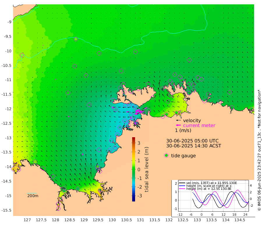 165cm/s -102T +4cm/s rms + 6cm/s 51T. Darwin_C1 52m 117cm/s -90T +4cm/s rms + 7cm/s -161T. Darwin_CW1 22m 85cm/s -108T +4cm/s rms + 8cm/s 61T. Darwin_CW2 34m 63cm/s -129T +3cm/s rms + 9cm/s 98T. Darwin_CW3 22m 104cm/s -91T +5cm/s rms + 7cm/s 88T. Darwin_C3 56m 91cm/s -115T +2cm/s rms + 9cm/s -126T. Darwin_CTbW 22m 2cm/s 144T +9cm/s rms + 2cm/s -110T. NWSLYN 196m 58cm/s -90T +1cm/s rms + 1cm/s -47T. DARBGF 30m 6cm/s 11T +7cm/s rms + 2cm/s -137T. ITFTIS 464m 16cm/s 9T +9cm/s rms + 1cm/s 74T. ITFMHB 146m 37cm/s -20T +4cm/s rms + 1cm/s -134T. ITFJBG 61m 26cm/s -28T +6cm/s rms + 4cm/s 121T. ITFFTB 108m 51cm/s -64T +4cm/s rms + 3cm/s 80T. NRSDAR 19m 134cm Carronade Island 139cm Guy Point 148cm Napier Broome Bay 54cm Lesueur Island -20cm Reveley Island 4cm Rocky Island -34cm Cape Domett -30cm Lacrosse Island -15cm Adolphus Island 101cm Pender Point 139cm Wyndham 0cm The Boxers -20cm Unnamed Shoal 36cm Loxton Shoal -77cm Pelican Island -5cm Calder Shoal 6cm Evans Shoal -8cm Quoin Island -112cm Port Keats -108cm Jones Point 28cm Catfish Island -112cm Cape Scott Offshore -131cm Cape Ford -136cm Anson Bay -13cm Goodrich Bank -129cm Peron Island North -123cm Point Jenny -121cm Native Point -138cm Fish Reef -137cm Tapa Bay -83cm Point Fawcett (Offshore) -137cm Burge Point -146cm Munkunuwa -111cm Beagle A -148cm Parsons Bank -135cm Fenton Patches 2cm Lynedoch Bank -133cm Hancox Shoal Area -145cm Nightcliff -148cm Darwin -140cm Charles Point Patches -72cm Glyde Point -5cm Chambers Bay 10cm Point Stuart -47cm Cape Hotham -1cm Christine Reef 17cm West Alligator Head 52cm East Field Island -18cm Two Hills Bay -51cm Newby Shoal -7cm Camp Point -140cm Medina Inlet South -79cm South Barlow Point -54cm St. Asaph Bay -20cm Cape Van Dieman -26cm Snake Bay -18cm Cache Point 55cm Echo Shoal -25cm Point Jahleel (Off) -39cm Cape Don -35cm Port Essington -42cm Smith Point - West -35cm NW Peacock Island -28cm North Of Jones Shoal -12cm Peacock Island -39cm Point David -44cm D'urville Point -23cm Money Shoal -41cm Copeland Island -56cm Cape Cockburn -39cm One Tree Point -35cm Hogmany Shoal -32cm New Year Island - West -36cm Grant Island -48cm Aurari Bay -42cm Cuthbert Point -45cm North Goulburn Island -27cm Paxie Shoal -33cm Entrance Island -31cm Yabooma Island