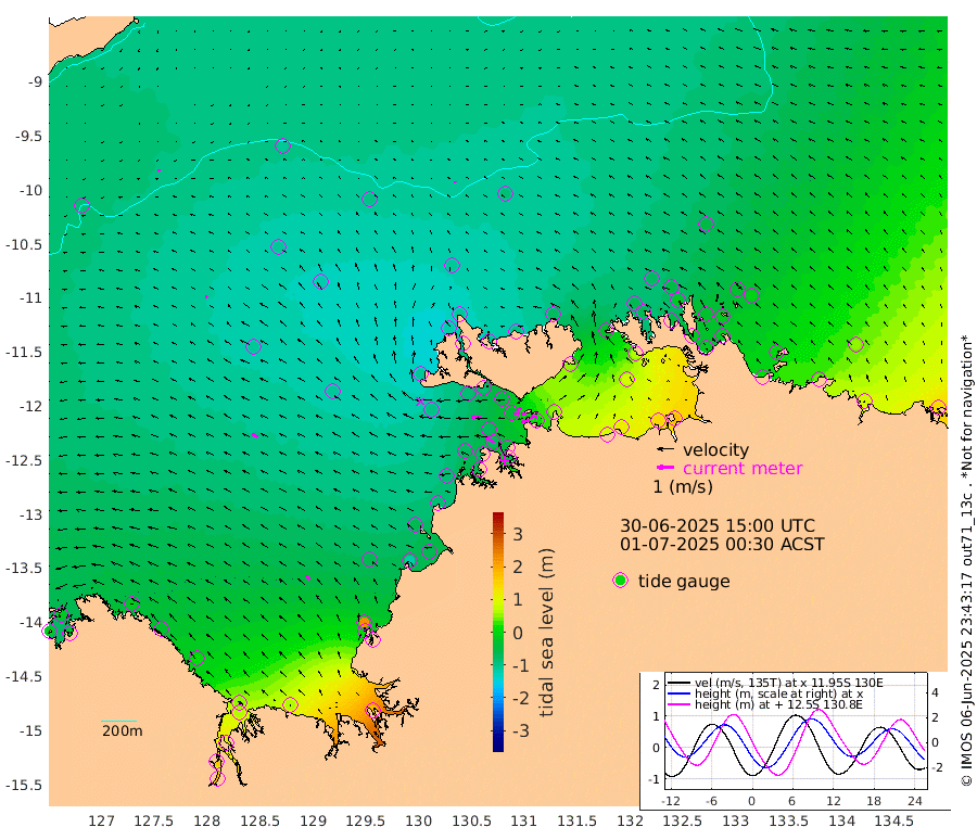 49cm/s -104T +4cm/s rms + 6cm/s 51T. Darwin_C1 52m 40cm/s -86T +4cm/s rms + 7cm/s -161T. Darwin_CW1 22m 32cm/s -109T +4cm/s rms + 8cm/s 61T. Darwin_CW2 34m 8cm/s -62T +3cm/s rms + 9cm/s 98T. Darwin_CW3 22m 30cm/s -94T +5cm/s rms + 7cm/s 88T. Darwin_C3 56m 31cm/s -117T +2cm/s rms + 9cm/s -126T. Darwin_CTbW 22m 9cm/s -34T +9cm/s rms + 2cm/s -110T. NWSLYN 196m 55cm/s -88T +1cm/s rms + 1cm/s -47T. DARBGF 30m 12cm/s -125T +7cm/s rms + 2cm/s -137T. ITFTIS 464m 14cm/s -57T +9cm/s rms + 1cm/s 74T. ITFMHB 146m 31cm/s -38T +4cm/s rms + 1cm/s -134T. ITFJBG 61m 38cm/s -60T +6cm/s rms + 4cm/s 121T. ITFFTB 108m 59cm/s -56T +4cm/s rms + 3cm/s 80T. NRSDAR 19m -15cm Carronade Island -12cm Guy Point -23cm Napier Broome Bay -19cm Lesueur Island 13cm Reveley Island -29cm Rocky Island 64cm Cape Domett 50cm Lacrosse Island 115cm Adolphus Island 158cm Pender Point 190cm Wyndham -103cm The Boxers -109cm Unnamed Shoal -105cm Loxton Shoal 63cm Pelican Island -113cm Calder Shoal -94cm Evans Shoal 171cm Quoin Island -6cm Port Keats 11cm Jones Point 222cm Catfish Island -58cm Cape Scott Offshore -120cm Cape Ford -66cm Anson Bay -102cm Goodrich Bank -65cm Peron Island North -83cm Point Jenny -89cm Native Point -74cm Fish Reef -78cm Tapa Bay -110cm Point Fawcett (Offshore) -65cm Burge Point -87cm Munkunuwa -96cm Beagle A -52cm Parsons Bank -68cm Fenton Patches -89cm Lynedoch Bank -36cm Hancox Shoal Area -55cm Nightcliff -49cm Darwin -72cm Charles Point Patches 14cm Glyde Point 100cm Chambers Bay 121cm Point Stuart 47cm Cape Hotham 80cm Christine Reef 142cm West Alligator Head 173cm East Field Island 67cm Two Hills Bay -111cm Newby Shoal 50cm Camp Point -81cm Medina Inlet South -118cm South Barlow Point -116cm St. Asaph Bay -106cm Cape Van Dieman -108cm Snake Bay -92cm Cache Point -89cm Echo Shoal -73cm Point Jahleel (Off) -30cm Cape Don -61cm Port Essington -63cm Smith Point - West -56cm NW Peacock Island -68cm North Of Jones Shoal -22cm Peacock Island -21cm Point David -55cm D'urville Point -47cm Money Shoal -12cm Copeland Island -15cm Cape Cockburn -26cm One Tree Point -7cm Hogmany Shoal -26cm New Year Island - West -19cm Grant Island 12cm Aurari Bay 40cm Cuthbert Point 10cm North Goulburn Island 54cm Paxie Shoal 88cm Entrance Island 145cm Yabooma Island