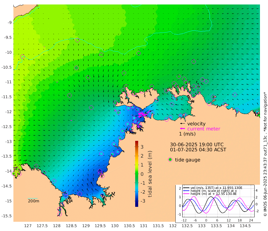 157cm/s -101T +4cm/s rms + 6cm/s 51T. Darwin_C1 52m 114cm/s -91T +4cm/s rms + 7cm/s -161T. Darwin_CW1 22m 77cm/s -106T +4cm/s rms + 8cm/s 61T. Darwin_CW2 34m 86cm/s -135T +3cm/s rms + 9cm/s 98T. Darwin_CW3 22m 135cm/s -91T +5cm/s rms + 7cm/s 88T. Darwin_C3 56m 83cm/s -115T +2cm/s rms + 9cm/s -126T. Darwin_CTbW 22m 3cm/s -89T +9cm/s rms + 2cm/s -110T. NWSLYN 196m 8cm/s -141T +1cm/s rms + 1cm/s -47T. DARBGF 30m 8cm/s 125T +7cm/s rms + 2cm/s -137T. ITFTIS 464m 12cm/s 139T +9cm/s rms + 1cm/s 74T. ITFMHB 146m 12cm/s 86T +4cm/s rms + 1cm/s -134T. ITFJBG 61m 21cm/s 115T +6cm/s rms + 4cm/s 121T. ITFFTB 108m 10cm/s -174T +4cm/s rms + 3cm/s 80T. NRSDAR 19m 43cm Carronade Island 43cm Guy Point 36cm Napier Broome Bay -51cm Lesueur Island -145cm Reveley Island -68cm Rocky Island -226cm Cape Domett -199cm Lacrosse Island -228cm Adolphus Island -207cm Pender Point -191cm Wyndham -14cm The Boxers -40cm Unnamed Shoal 43cm Loxton Shoal -244cm Pelican Island 10cm Calder Shoal 30cm Evans Shoal -297cm Quoin Island -223cm Port Keats -223cm Jones Point -288cm Catfish Island -156cm Cape Scott Offshore -126cm Cape Ford -176cm Anson Bay 15cm Goodrich Bank -151cm Peron Island North -134cm Point Jenny -133cm Native Point -151cm Fish Reef -163cm Tapa Bay -61cm Point Fawcett (Offshore) -173cm Burge Point -150cm Munkunuwa -98cm Beagle A -182cm Parsons Bank -155cm Fenton Patches 17cm Lynedoch Bank -180cm Hancox Shoal Area -178cm Nightcliff -209cm Darwin -182cm Charles Point Patches -164cm Glyde Point -153cm Chambers Bay -158cm Point Stuart -150cm Cape Hotham -129cm Christine Reef -170cm West Alligator Head -162cm East Field Island -136cm Two Hills Bay -55cm Newby Shoal -127cm Camp Point -164cm Medina Inlet South -43cm South Barlow Point -16cm St. Asaph Bay 11cm Cape Van Dieman 0cm Snake Bay 6cm Cache Point 67cm Echo Shoal -15cm Point Jahleel (Off) -71cm Cape Don -31cm Port Essington -25cm Smith Point - West -25cm NW Peacock Island -10cm North Of Jones Shoal -6cm Peacock Island -60cm Point David -31cm D'urville Point -26cm Money Shoal -61cm Copeland Island -78cm Cape Cockburn -57cm One Tree Point -82cm Hogmany Shoal -57cm New Year Island - West -64cm Grant Island -83cm Aurari Bay -105cm Cuthbert Point -87cm North Goulburn Island -125cm Paxie Shoal -132cm Entrance Island -154cm Yabooma Island