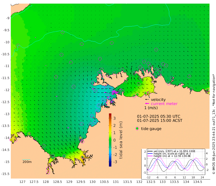 148cm/s -102T +4cm/s rms + 6cm/s 51T. Darwin_C1 52m 106cm/s -90T +4cm/s rms + 7cm/s -161T. Darwin_CW1 22m 80cm/s -108T +4cm/s rms + 8cm/s 61T. Darwin_CW2 34m 56cm/s -128T +3cm/s rms + 9cm/s 98T. Darwin_CW3 22m 99cm/s -92T +5cm/s rms + 7cm/s 88T. Darwin_C3 56m 82cm/s -115T +2cm/s rms + 9cm/s -126T. Darwin_CTbW 22m 1cm/s -165T +9cm/s rms + 2cm/s -110T. NWSLYN 196m 56cm/s -90T +1cm/s rms + 1cm/s -47T. DARBGF 30m 5cm/s 2T +7cm/s rms + 2cm/s -137T. ITFTIS 464m 16cm/s 4T +9cm/s rms + 1cm/s 74T. ITFMHB 146m 35cm/s -21T +4cm/s rms + 1cm/s -134T. ITFJBG 61m 26cm/s -32T +6cm/s rms + 4cm/s 121T. ITFFTB 108m 49cm/s -64T +4cm/s rms + 3cm/s 80T. NRSDAR 19m 108cm Carronade Island 110cm Guy Point 121cm Napier Broome Bay 38cm Lesueur Island -21cm Reveley Island 8cm Rocky Island -29cm Cape Domett -27cm Lacrosse Island -10cm Adolphus Island 99cm Pender Point 133cm Wyndham -13cm The Boxers -28cm Unnamed Shoal 14cm Loxton Shoal -66cm Pelican Island -22cm Calder Shoal -10cm Evans Shoal 0cm Quoin Island -102cm Port Keats -92cm Jones Point 36cm Catfish Island -109cm Cape Scott Offshore -118cm Cape Ford -131cm Anson Bay -25cm Goodrich Bank -124cm Peron Island North -118cm Point Jenny -116cm Native Point -128cm Fish Reef -129cm Tapa Bay -88cm Point Fawcett (Offshore) -126cm Burge Point -137cm Munkunuwa -108cm Beagle A -136cm Parsons Bank -125cm Fenton Patches -12cm Lynedoch Bank -124cm Hancox Shoal Area -138cm Nightcliff -136cm Darwin -132cm Charles Point Patches -63cm Glyde Point -1cm Chambers Bay 18cm Point Stuart -40cm Cape Hotham 2cm Christine Reef 26cm West Alligator Head 60cm East Field Island -13cm Two Hills Bay -58cm Newby Shoal -4cm Camp Point -133cm Medina Inlet South -84cm South Barlow Point -64cm St. Asaph Bay -32cm Cape Van Dieman -38cm Snake Bay -30cm Cache Point 32cm Echo Shoal -34cm Point Jahleel (Off) -42cm Cape Don -42cm Port Essington -48cm Smith Point - West -42cm NW Peacock Island -39cm North Of Jones Shoal -15cm Peacock Island -41cm Point David -49cm D'urville Point -31cm Money Shoal -43cm Copeland Island -59cm Cape Cockburn -43cm One Tree Point -37cm Hogmany Shoal -36cm New Year Island - West -39cm Grant Island -47cm Aurari Bay -38cm Cuthbert Point -45cm North Goulburn Island -25cm Paxie Shoal -26cm Entrance Island -22cm Yabooma Island