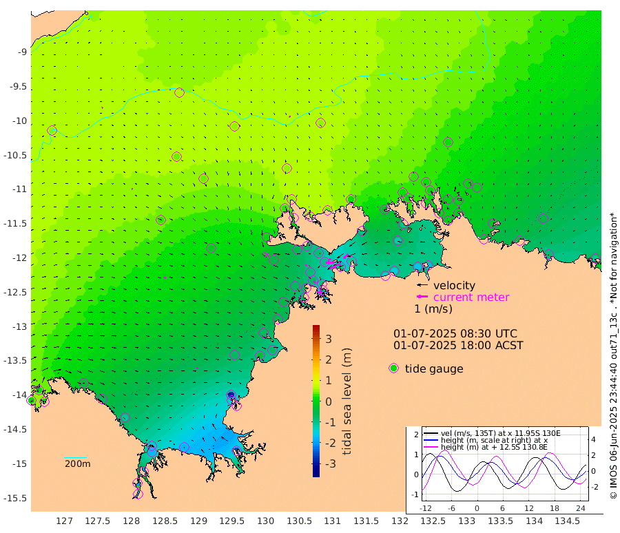66cm/s -101T +4cm/s rms + 6cm/s 51T. Darwin_C1 52m 42cm/s -91T +4cm/s rms + 7cm/s -161T. Darwin_CW1 22m 37cm/s -106T +4cm/s rms + 8cm/s 61T. Darwin_CW2 34m 55cm/s -138T +3cm/s rms + 9cm/s 98T. Darwin_CW3 22m 74cm/s -90T +5cm/s rms + 7cm/s 88T. Darwin_C3 56m 29cm/s -116T +2cm/s rms + 9cm/s -126T. Darwin_CTbW 22m 11cm/s 151T +9cm/s rms + 2cm/s -110T. NWSLYN 196m 17cm/s 110T +1cm/s rms + 1cm/s -47T. DARBGF 30m 10cm/s 51T +7cm/s rms + 2cm/s -137T. ITFTIS 464m 10cm/s 72T +9cm/s rms + 1cm/s 74T. ITFMHB 146m 17cm/s 106T +4cm/s rms + 1cm/s -134T. ITFJBG 61m 23cm/s 105T +6cm/s rms + 4cm/s 121T. ITFFTB 108m 23cm/s 139T +4cm/s rms + 3cm/s 80T. NRSDAR 19m 8cm Carronade Island 11cm Guy Point 13cm Napier Broome Bay -39cm Lesueur Island -104cm Reveley Island -75cm Rocky Island -174cm Cape Domett -156cm Lacrosse Island -211cm Adolphus Island -191cm Pender Point -202cm Wyndham 25cm The Boxers 35cm Unnamed Shoal 60cm Loxton Shoal -178cm Pelican Island 37cm Calder Shoal 47cm Evans Shoal -259cm Quoin Island -138cm Port Keats -140cm Jones Point -283cm Catfish Island -74cm Cape Scott Offshore -38cm Cape Ford -76cm Anson Bay 48cm Goodrich Bank -73cm Peron Island North -58cm Point Jenny -53cm Native Point -77cm Fish Reef -69cm Tapa Bay 0cm Point Fawcett (Offshore) -90cm Burge Point -60cm Munkunuwa -47cm Beagle A -90cm Parsons Bank -89cm Fenton Patches 46cm Lynedoch Bank -94cm Hancox Shoal Area -96cm Nightcliff -105cm Darwin -78cm Charles Point Patches -108cm Glyde Point -140cm Chambers Bay -148cm Point Stuart -112cm Cape Hotham -123cm Christine Reef -167cm West Alligator Head -179cm East Field Island -112cm Two Hills Bay -16cm Newby Shoal -93cm Camp Point -71cm Medina Inlet South 15cm South Barlow Point 29cm St. Asaph Bay 49cm Cape Van Dieman 47cm Snake Bay 37cm Cache Point 56cm Echo Shoal 17cm Point Jahleel (Off) -27cm Cape Don 13cm Port Essington 10cm Smith Point - West 13cm NW Peacock Island 25cm North Of Jones Shoal 7cm Peacock Island 0cm Point David 10cm D'urville Point 19cm Money Shoal -6cm Copeland Island -18cm Cape Cockburn -2cm One Tree Point -9cm Hogmany Shoal -3cm New Year Island - West -7cm Grant Island -30cm Aurari Bay -51cm Cuthbert Point -28cm North Goulburn Island -48cm Paxie Shoal -81cm Entrance Island -110cm Yabooma Island