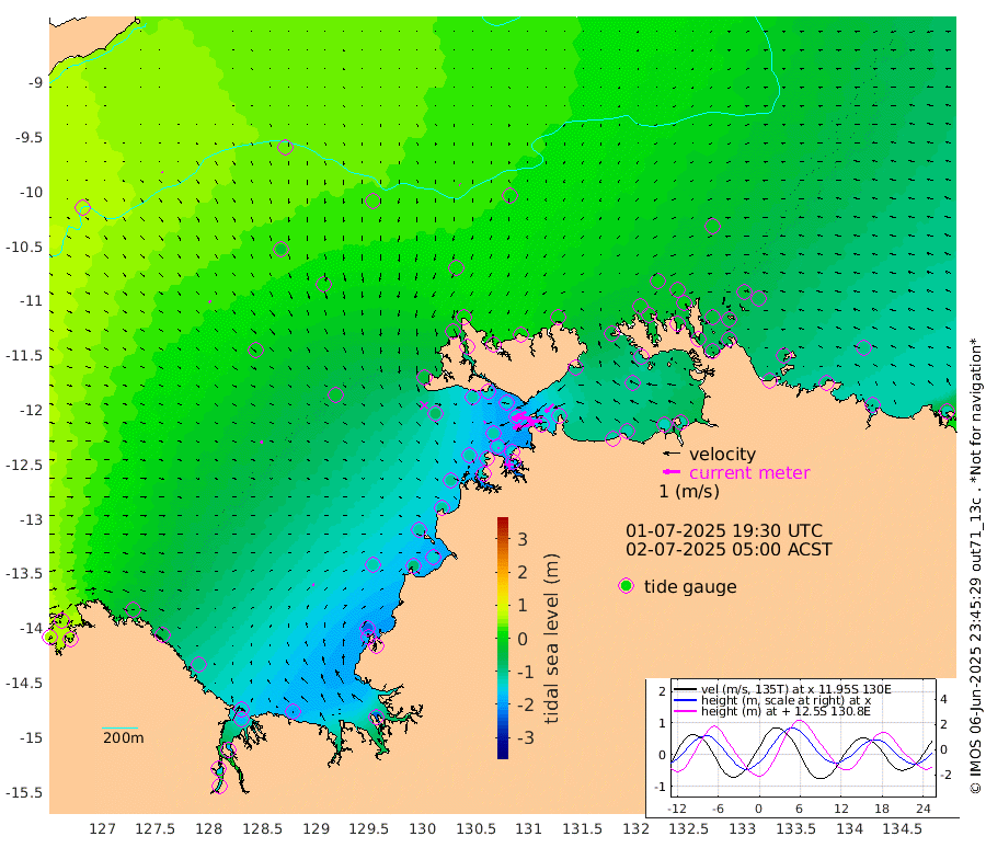 127cm/s -101T +4cm/s rms + 6cm/s 51T. Darwin_C1 52m 91cm/s -91T +4cm/s rms + 7cm/s -161T. Darwin_CW1 22m 68cm/s -106T +4cm/s rms + 8cm/s 61T. Darwin_CW2 34m 67cm/s -134T +3cm/s rms + 9cm/s 98T. Darwin_CW3 22m 118cm/s -91T +5cm/s rms + 7cm/s 88T. Darwin_C3 56m 69cm/s -115T +2cm/s rms + 9cm/s -126T. Darwin_CTbW 22m 2cm/s -71T +9cm/s rms + 2cm/s -110T. NWSLYN 196m 9cm/s -123T +1cm/s rms + 1cm/s -47T. DARBGF 30m 7cm/s 118T +7cm/s rms + 2cm/s -137T. ITFTIS 464m 10cm/s 134T +9cm/s rms + 1cm/s 74T. ITFMHB 146m 10cm/s 75T +4cm/s rms + 1cm/s -134T. ITFJBG 61m 16cm/s 109T +6cm/s rms + 4cm/s 121T. ITFFTB 108m 8cm/s -149T +4cm/s rms + 3cm/s 80T. NRSDAR 19m 56cm Carronade Island 57cm Guy Point 49cm Napier Broome Bay -24cm Lesueur Island -105cm Reveley Island -54cm Rocky Island -170cm Cape Domett -146cm Lacrosse Island -170cm Adolphus Island -149cm Pender Point -133cm Wyndham -4cm The Boxers -29cm Unnamed Shoal 43cm Loxton Shoal -190cm Pelican Island 17cm Calder Shoal 31cm Evans Shoal -228cm Quoin Island -172cm Port Keats -174cm Jones Point -229cm Catfish Island -122cm Cape Scott Offshore -81cm Cape Ford -140cm Anson Bay 17cm Goodrich Bank -117cm Peron Island North -102cm Point Jenny -102cm Native Point -116cm Fish Reef -128cm Tapa Bay -44cm Point Fawcett (Offshore) -131cm Burge Point -119cm Munkunuwa -71cm Beagle A -144cm Parsons Bank -117cm Fenton Patches 18cm Lynedoch Bank -142cm Hancox Shoal Area -138cm Nightcliff -164cm Darwin -143cm Charles Point Patches -126cm Glyde Point -115cm Chambers Bay -117cm Point Stuart -113cm Cape Hotham -94cm Christine Reef -126cm West Alligator Head -117cm East Field Island -102cm Two Hills Bay -32cm Newby Shoal -93cm Camp Point -129cm Medina Inlet South -32cm South Barlow Point -8cm St. Asaph Bay 14cm Cape Van Dieman 4cm Snake Bay 10cm Cache Point 64cm Echo Shoal -7cm Point Jahleel (Off) -53cm Cape Don -22cm Port Essington -18cm Smith Point - West -17cm NW Peacock Island -4cm North Of Jones Shoal -4cm Peacock Island -47cm Point David -23cm D'urville Point -17cm Money Shoal -49cm Copeland Island -59cm Cape Cockburn -44cm One Tree Point -63cm Hogmany Shoal -44cm New Year Island - West -50cm Grant Island -67cm Aurari Bay -84cm Cuthbert Point -70cm North Goulburn Island -100cm Paxie Shoal -106cm Entrance Island -123cm Yabooma Island